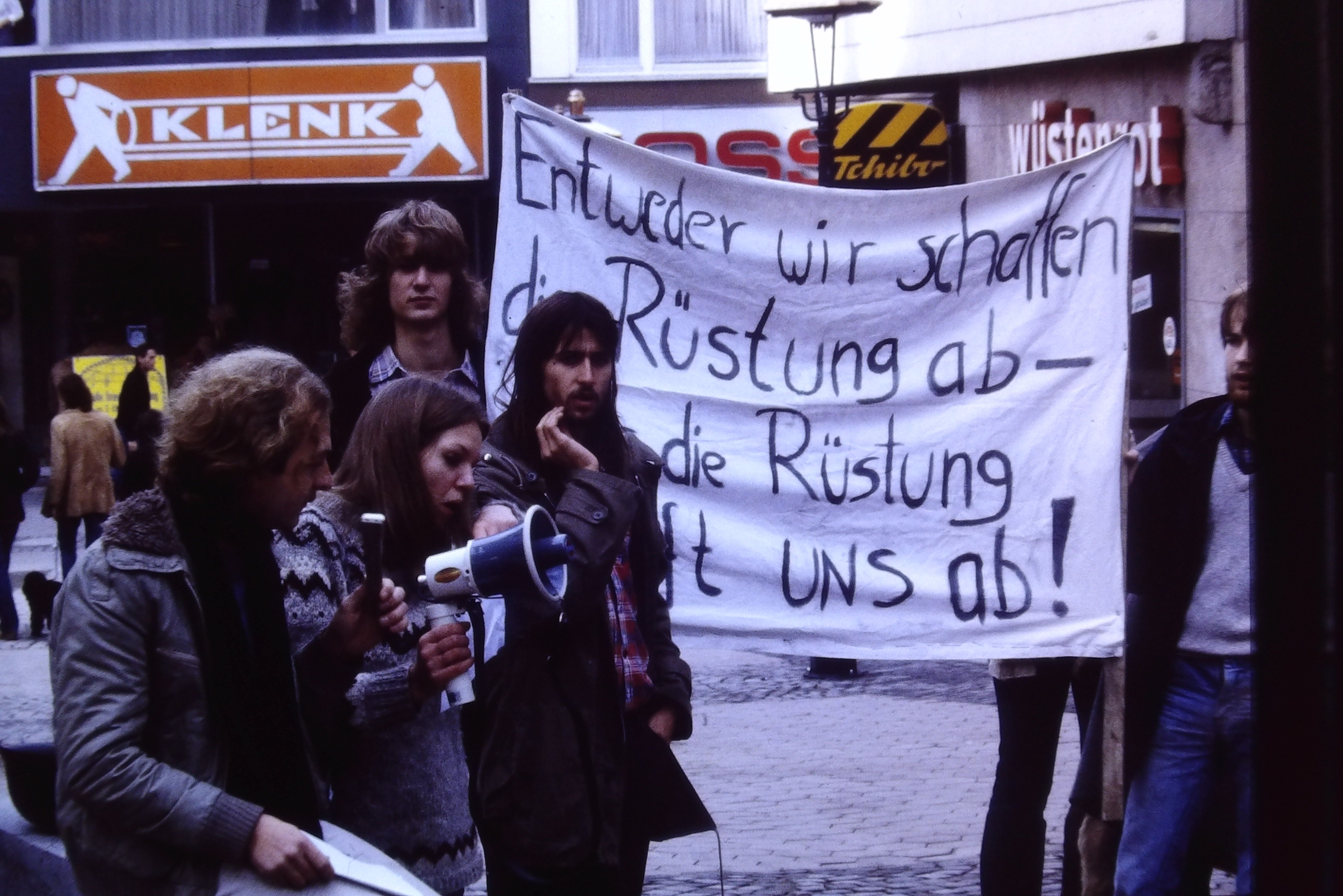 Inzwischen lebte ich in Köln, da hatte mich die ZVS zum Pädagogik-Studium hingeschickt. Auch hier kam es zu entsprechenden Aktionen, u. a. zu einer Blockade eines Marschflugkörper-Stützpunktes der Bundeswehr in Marienheide.