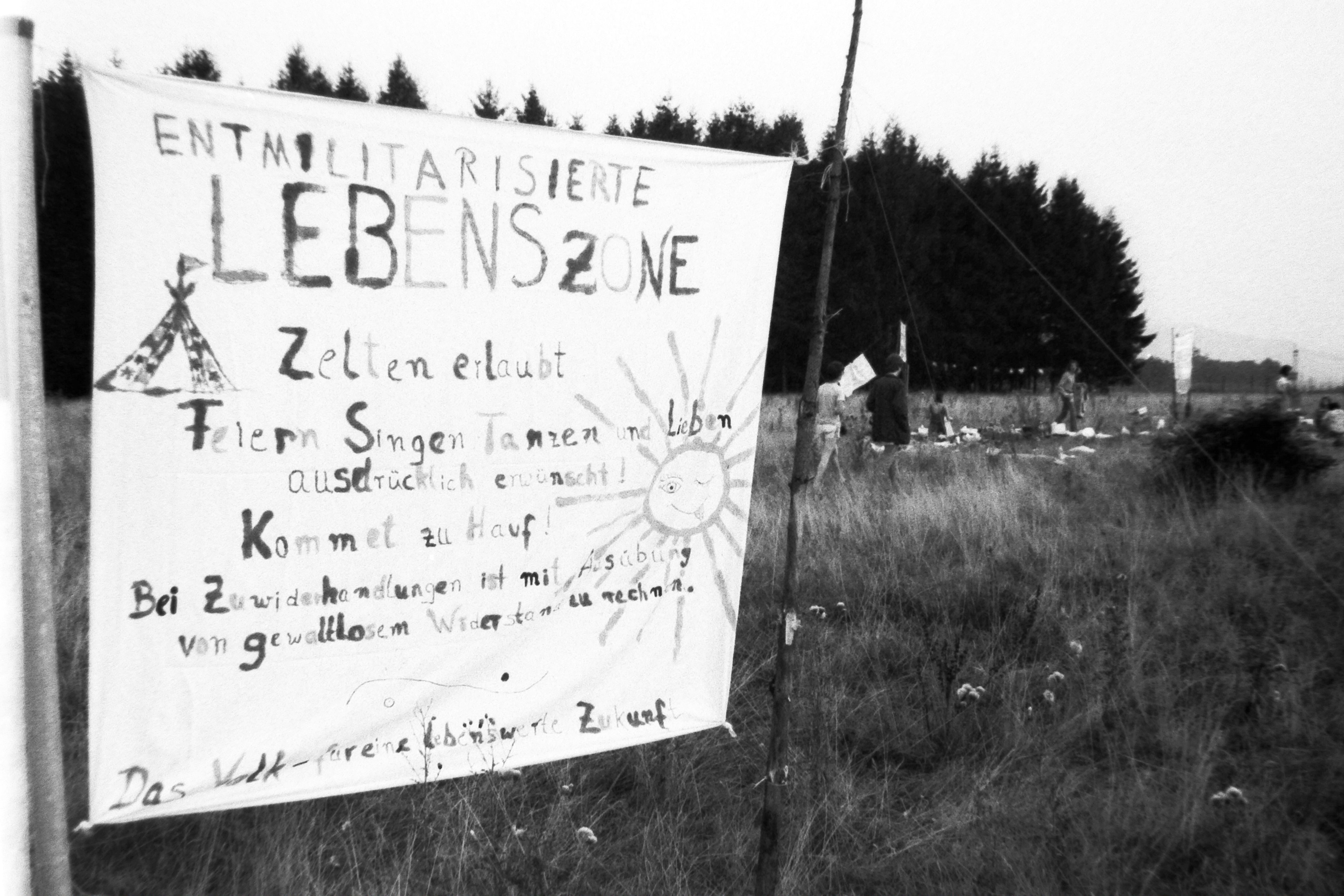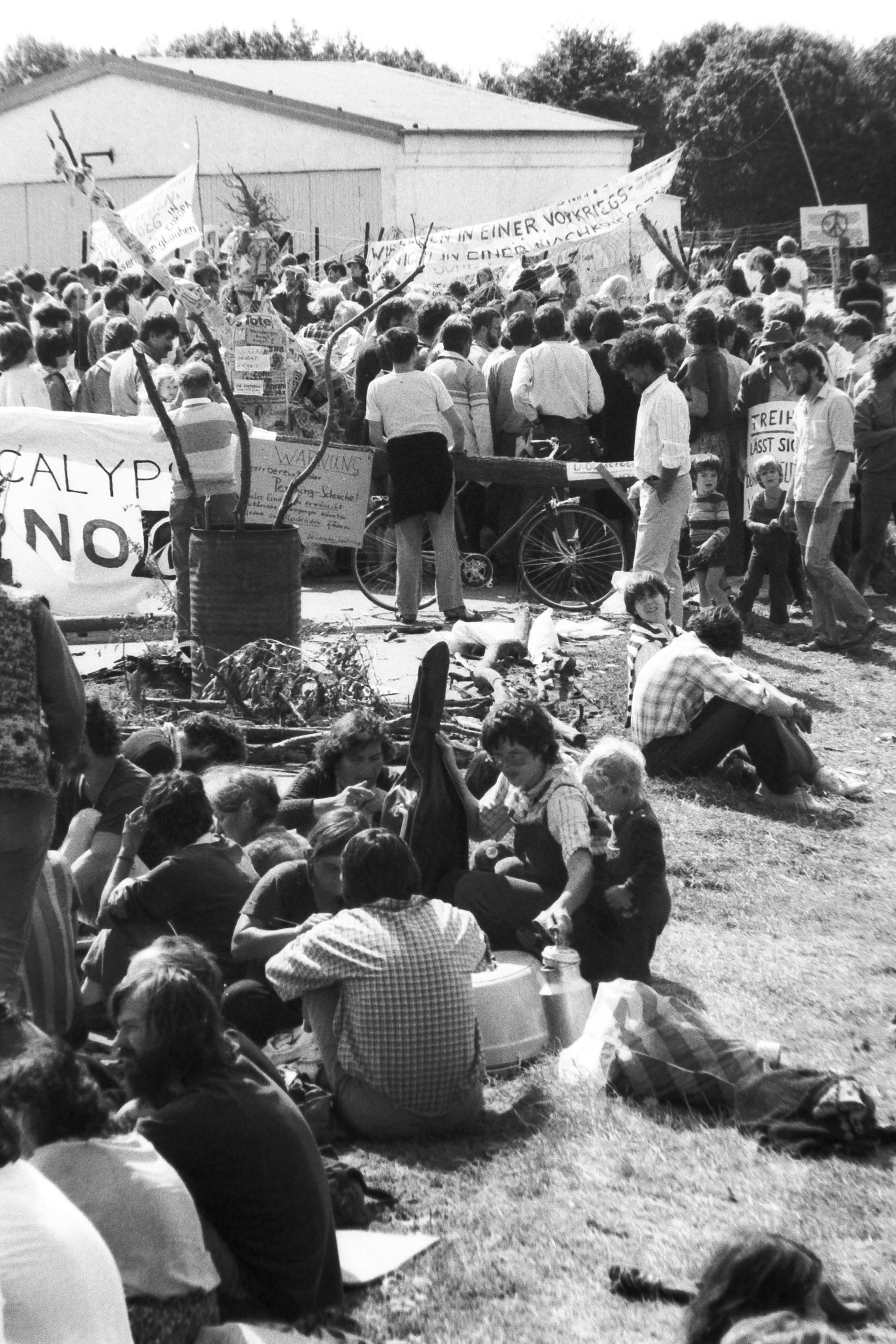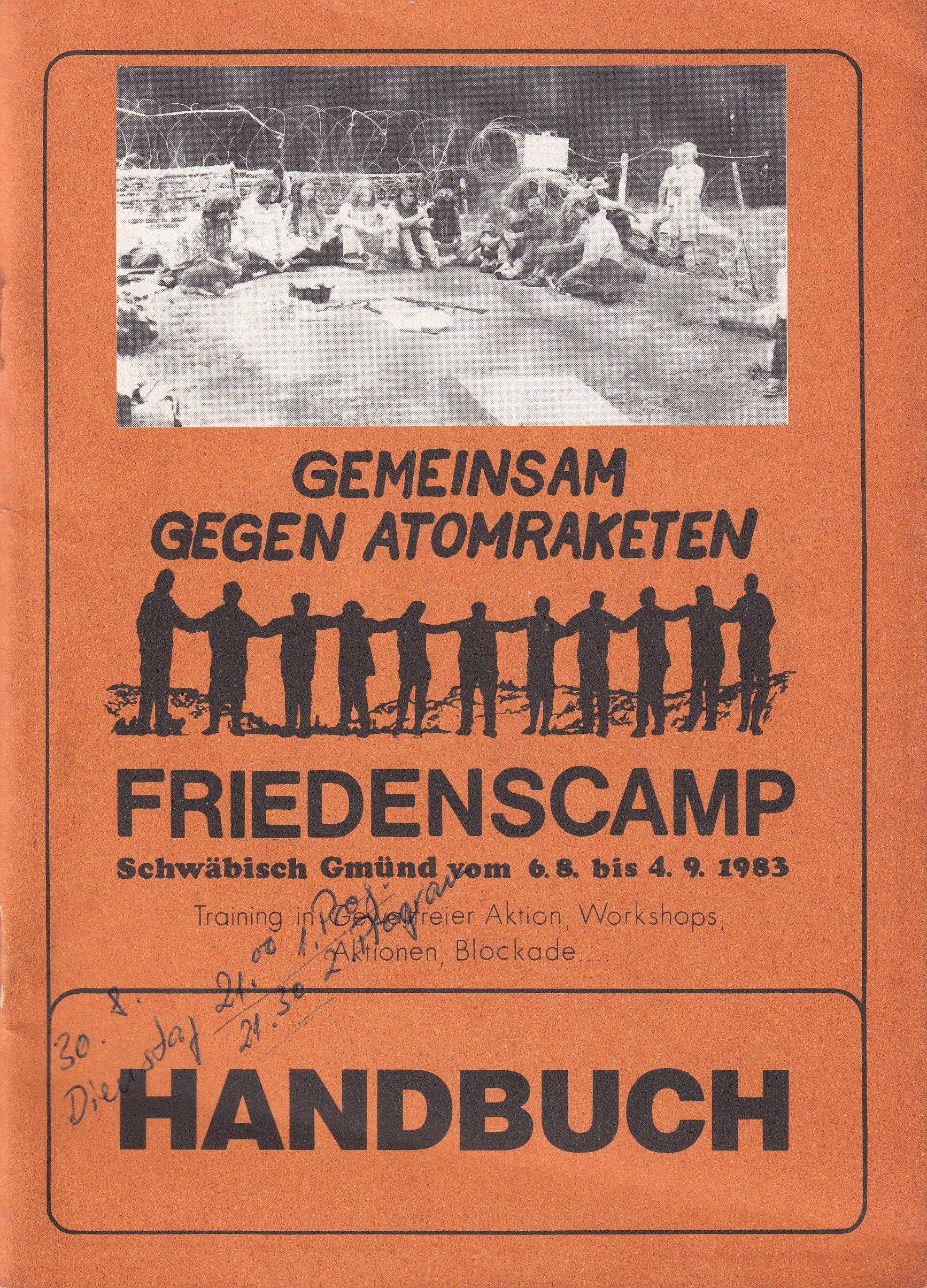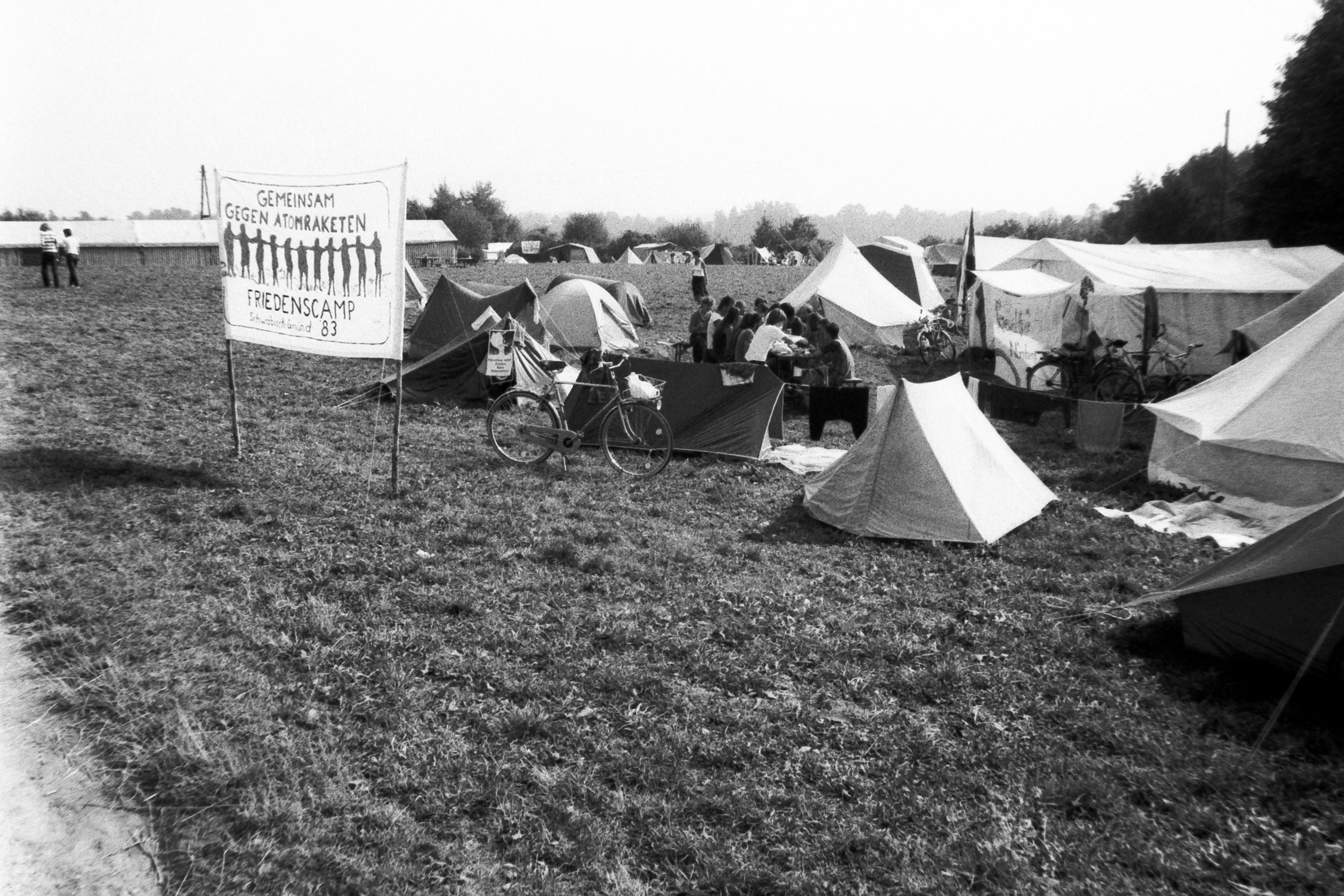 Rund tausend Aktivisten der Friedensbewegung fanden sich in Bezugsgruppen organisiert in einem vierwöchigen Zeltlager zusammen, um eine dreitägige Blockade des Pershing-Standorts Mutlangen nahe Schwäbisch Gmünd zu organisieren.
