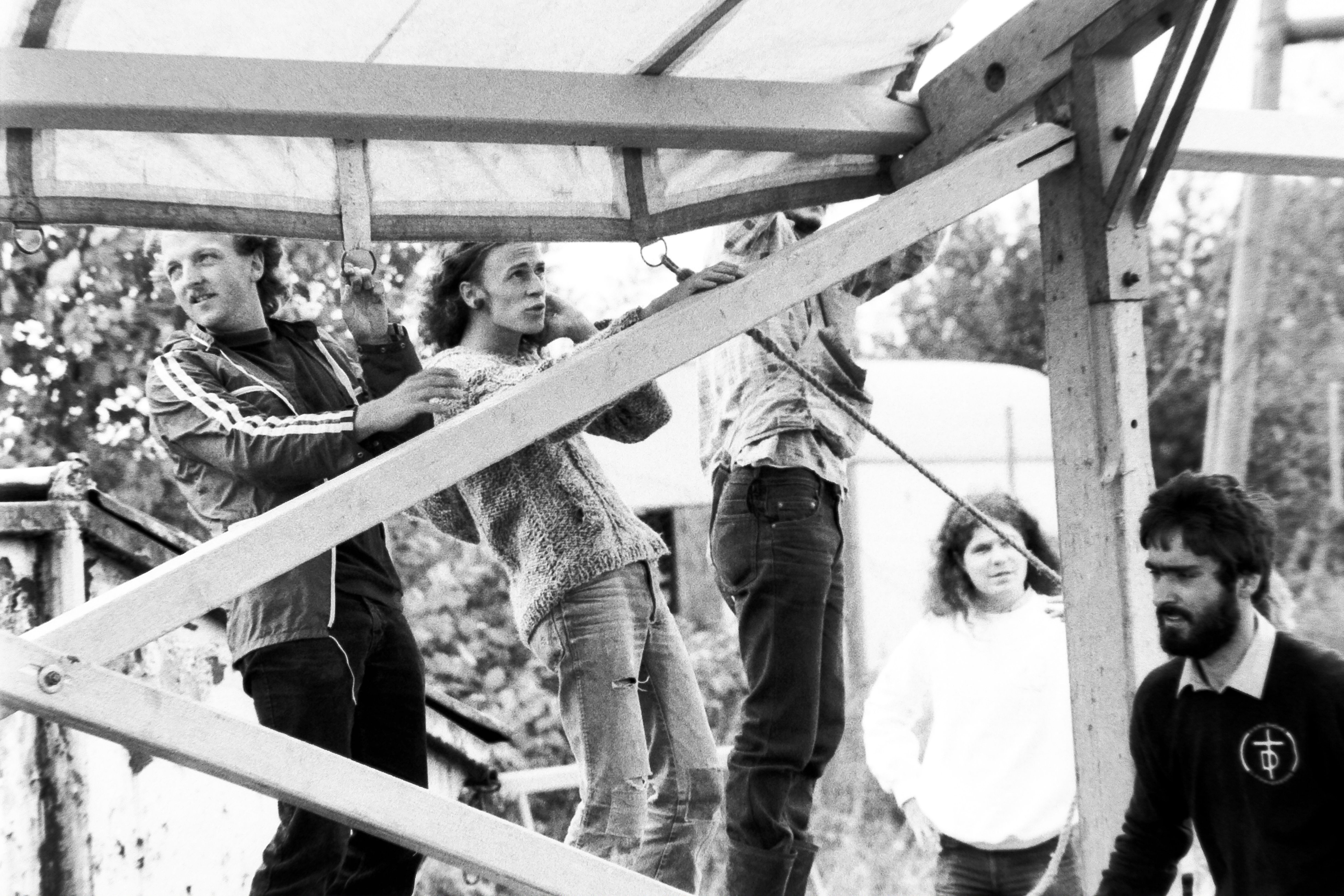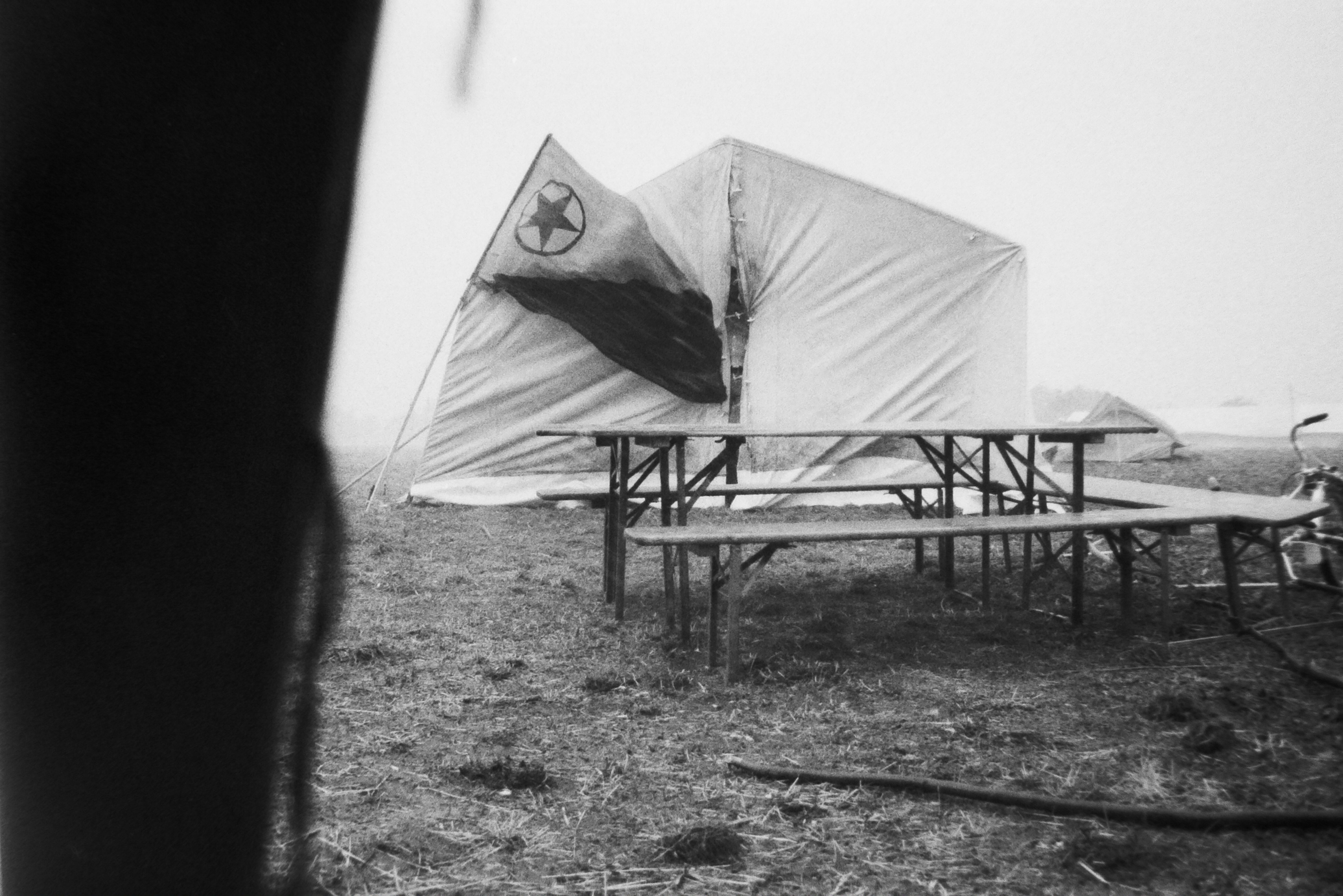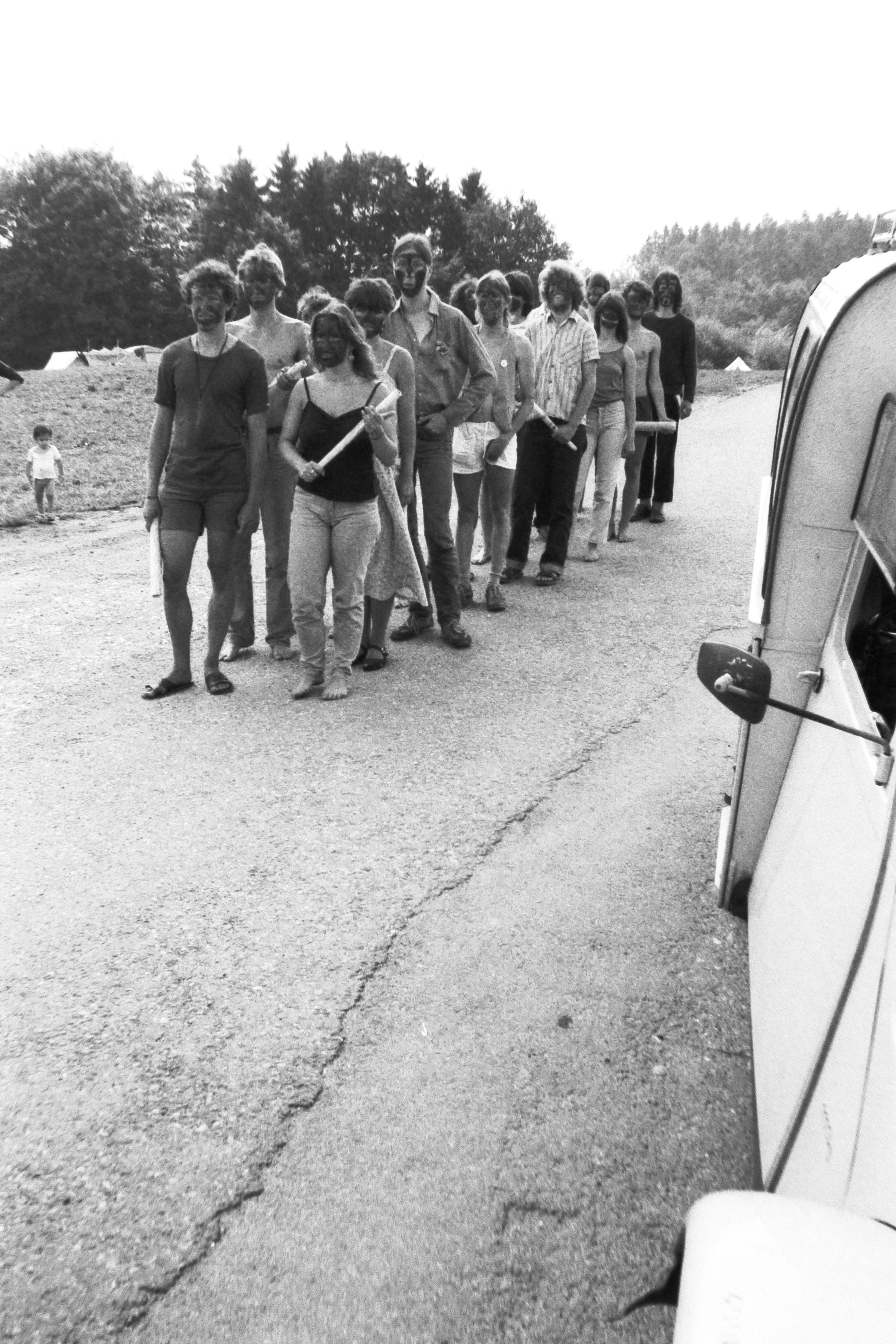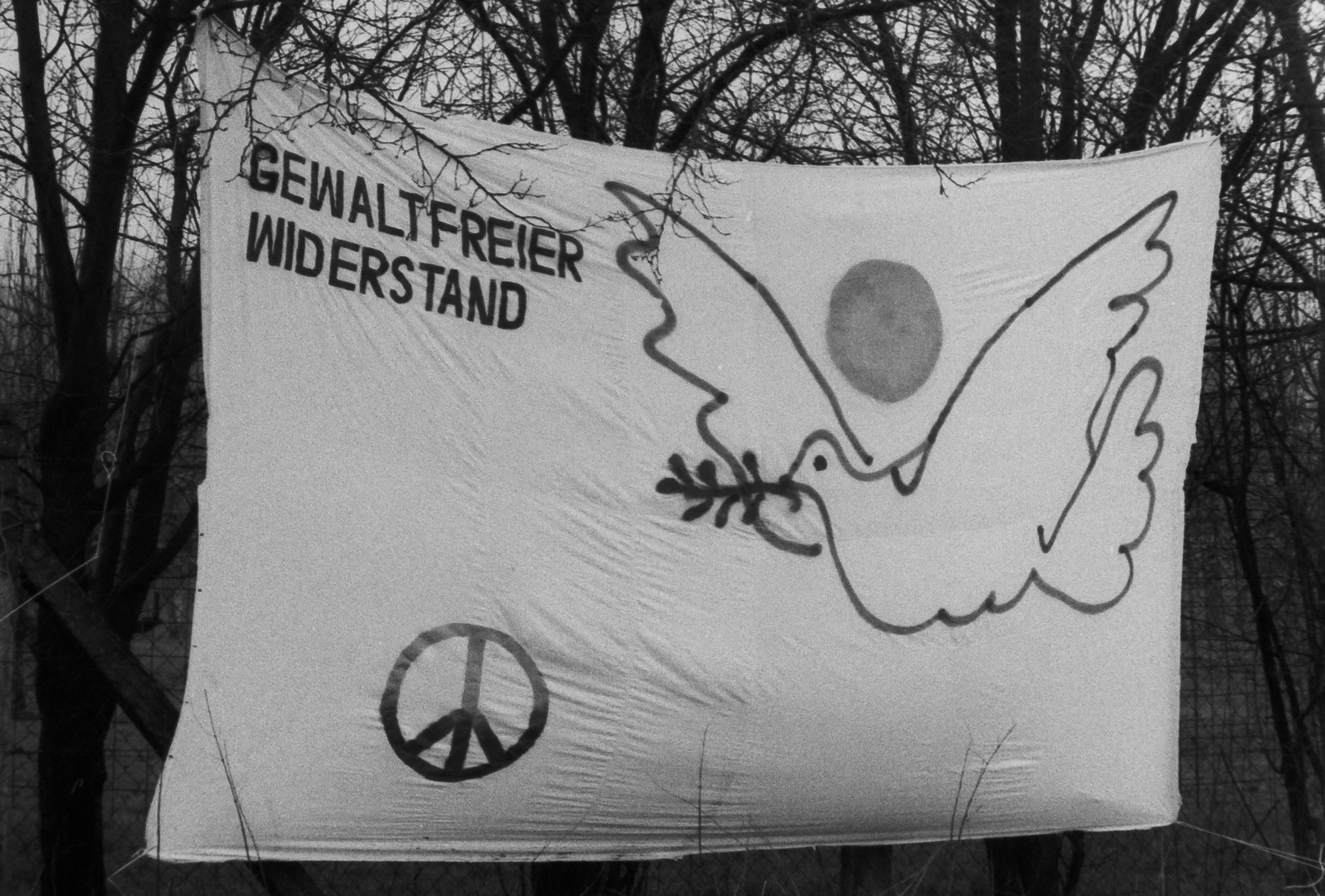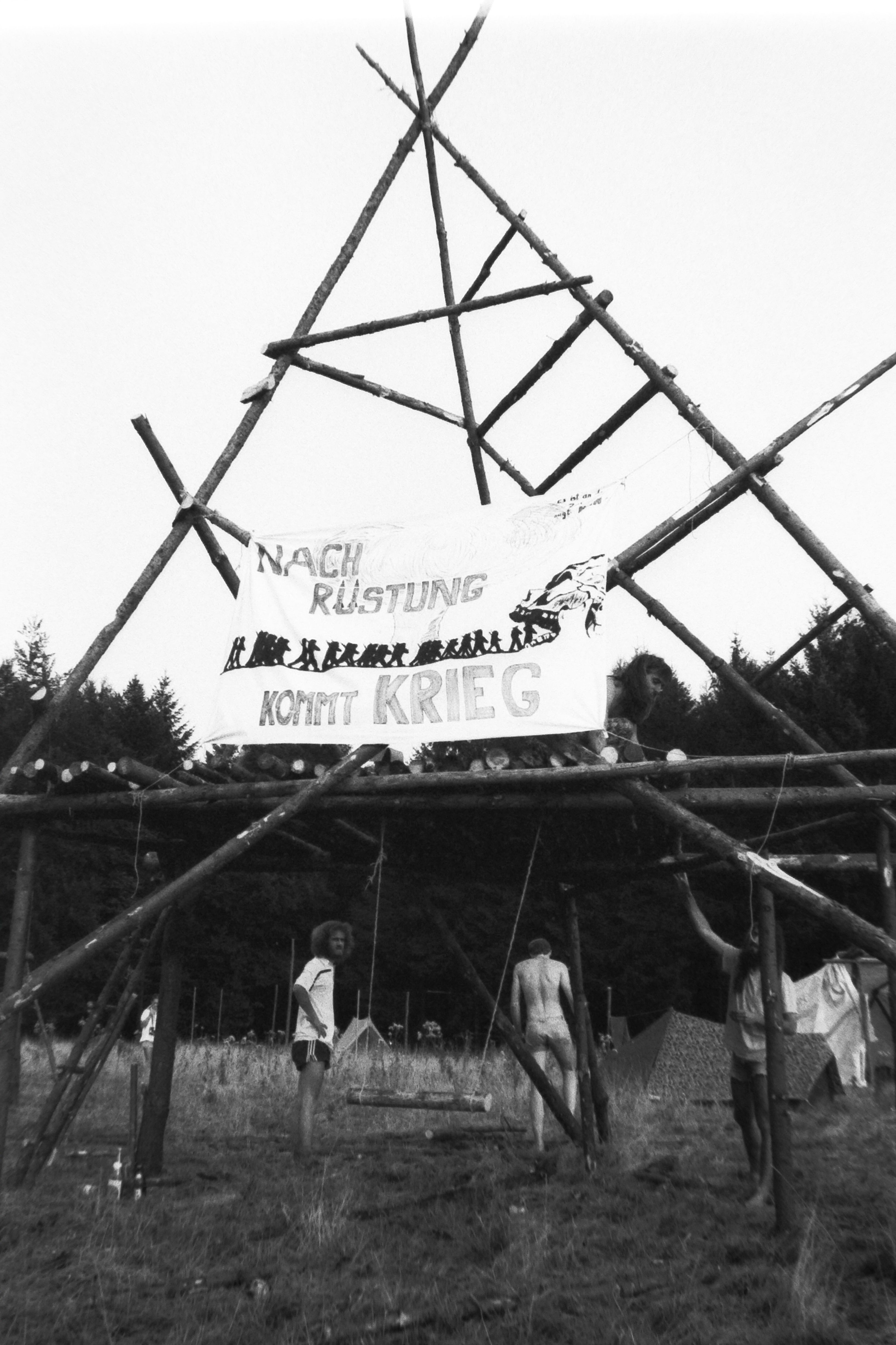 Rund tausend Aktivisten der Friedensbewegung fanden sich in Bezugsgruppen organisiert in einem vierwöchigen Zeltlager zusammen, um eine dreitägige Blockade des Pershing-Standorts Mutlangen nahe Schwäbisch Gmünd zu organisieren.
