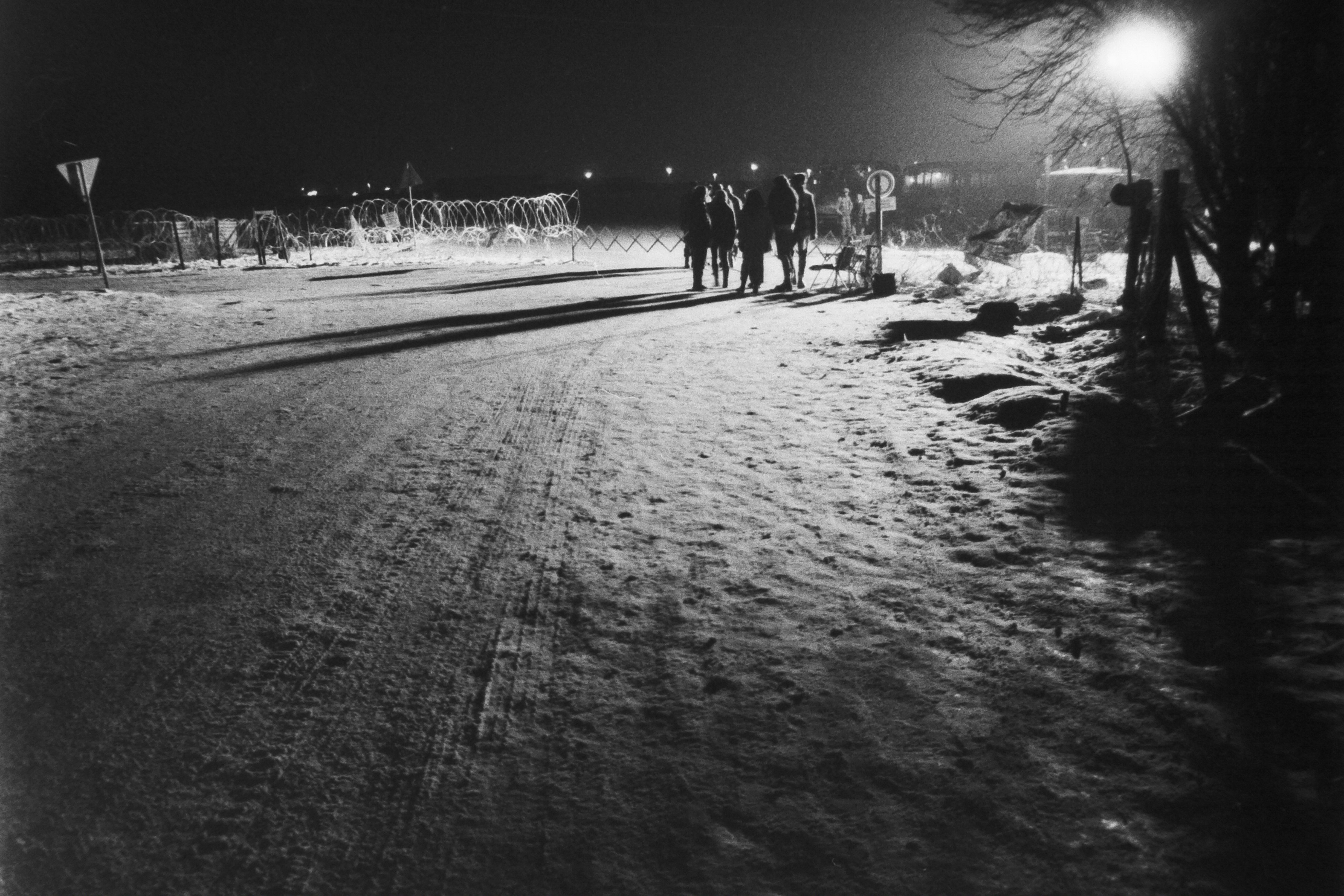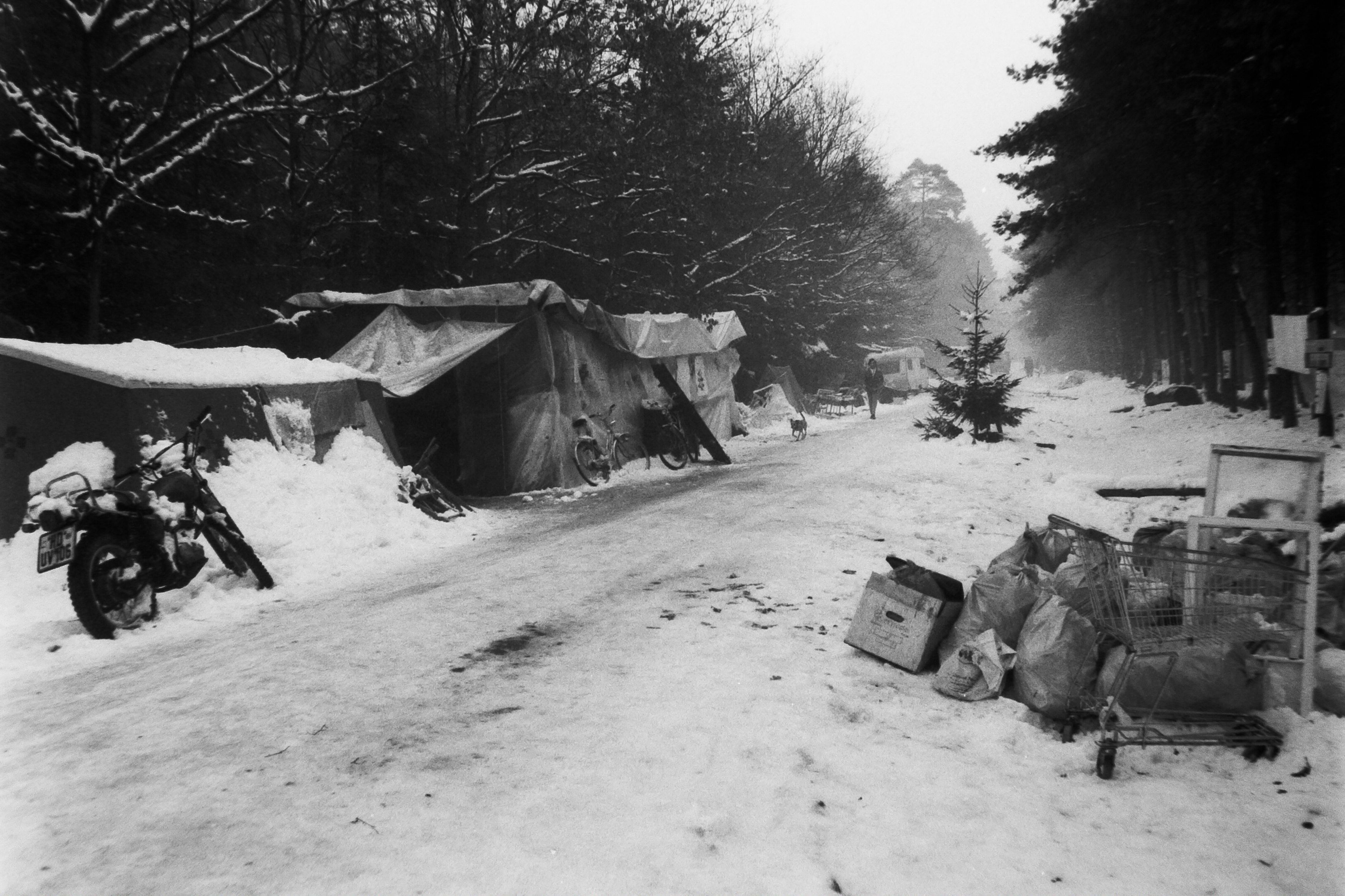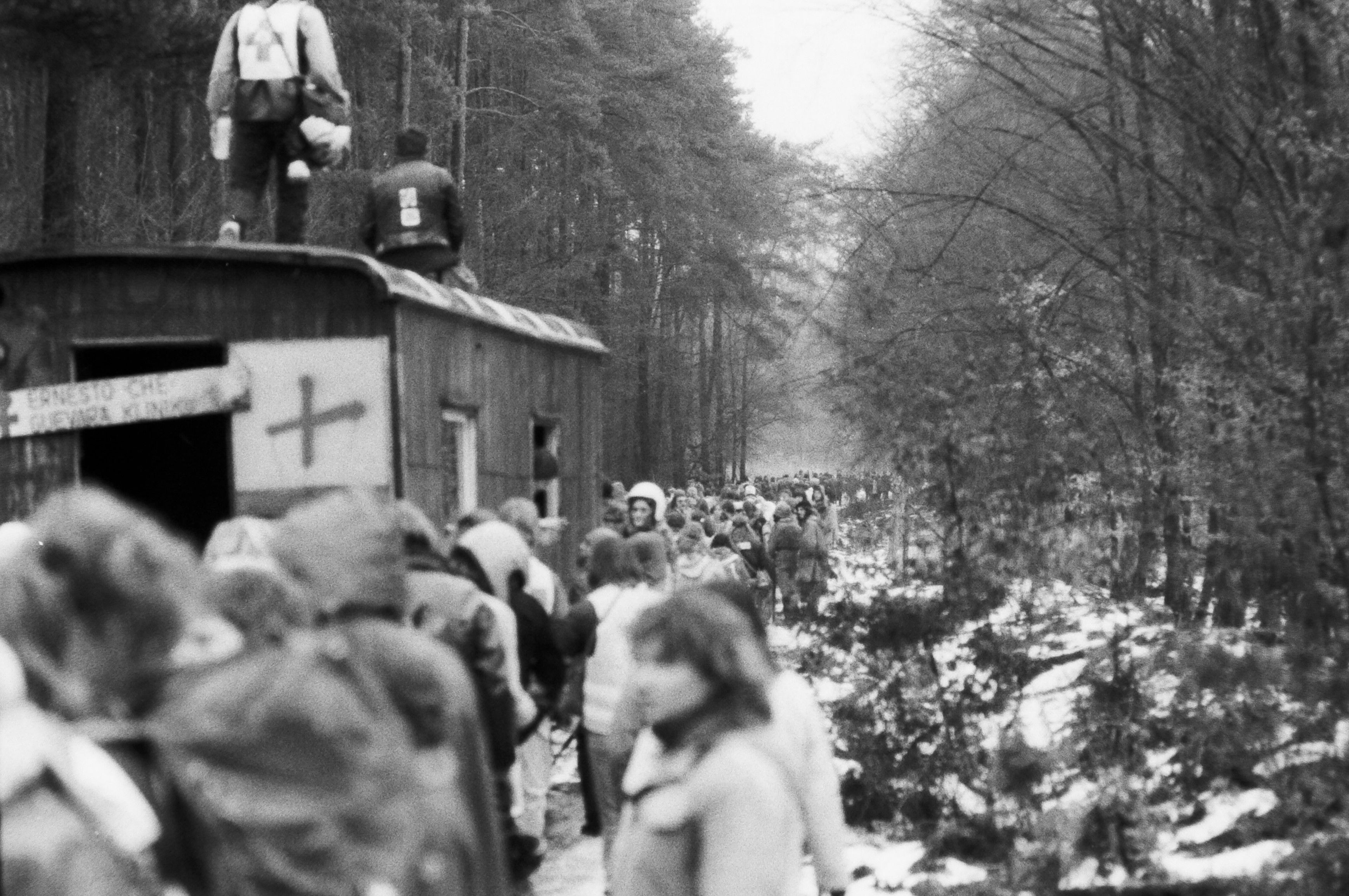 Zum Jahresende hin kam es in Mutlangen immer wieder zu spontanen Blockade-Aktion. Es war im Dezember, als ich bei Schnee, eisigem Wind und minus 18 Grad daran teilnahm. Alle 45 Minuten gingen wir in eine alte Scheune, die man uns zur Verfügung gestellt hatte, und wo wir schon im Sommer ein kleines Pressezentrum mit Telefonanschlüssen unf Ofen eingerichtet hatten.