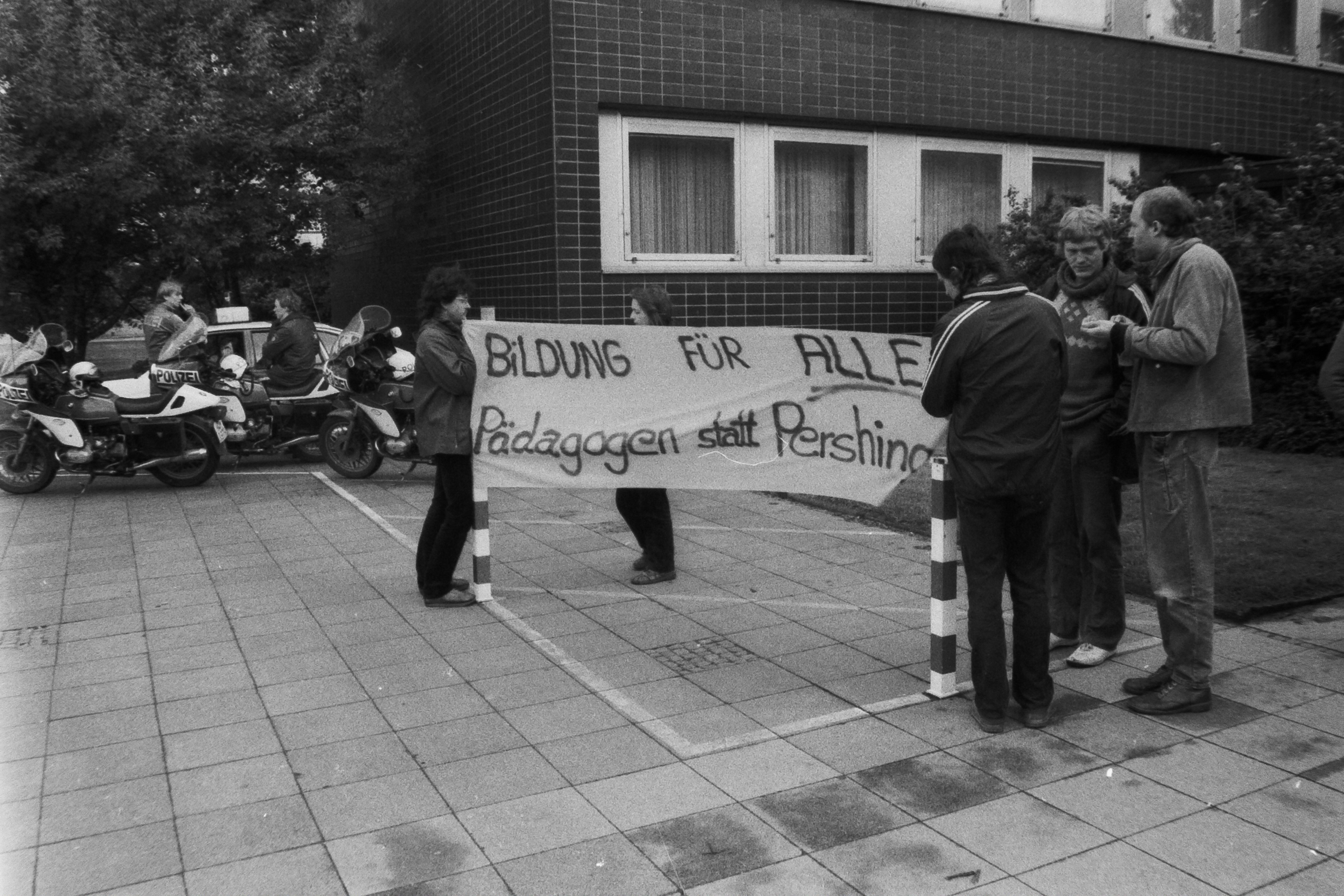 Und natürlich rückten im Studenten-Milieu zwangsläufig auch andere Themen in meinen Fokus. Nicht nur, dass immense Summen in die Rüstung flossen, während zahlreiche Kommilitonen nach dem Lehramtsstudium keinen Job bekamen, es wurde auch an der Uni gespart. Natürlich löste das Protest aus.