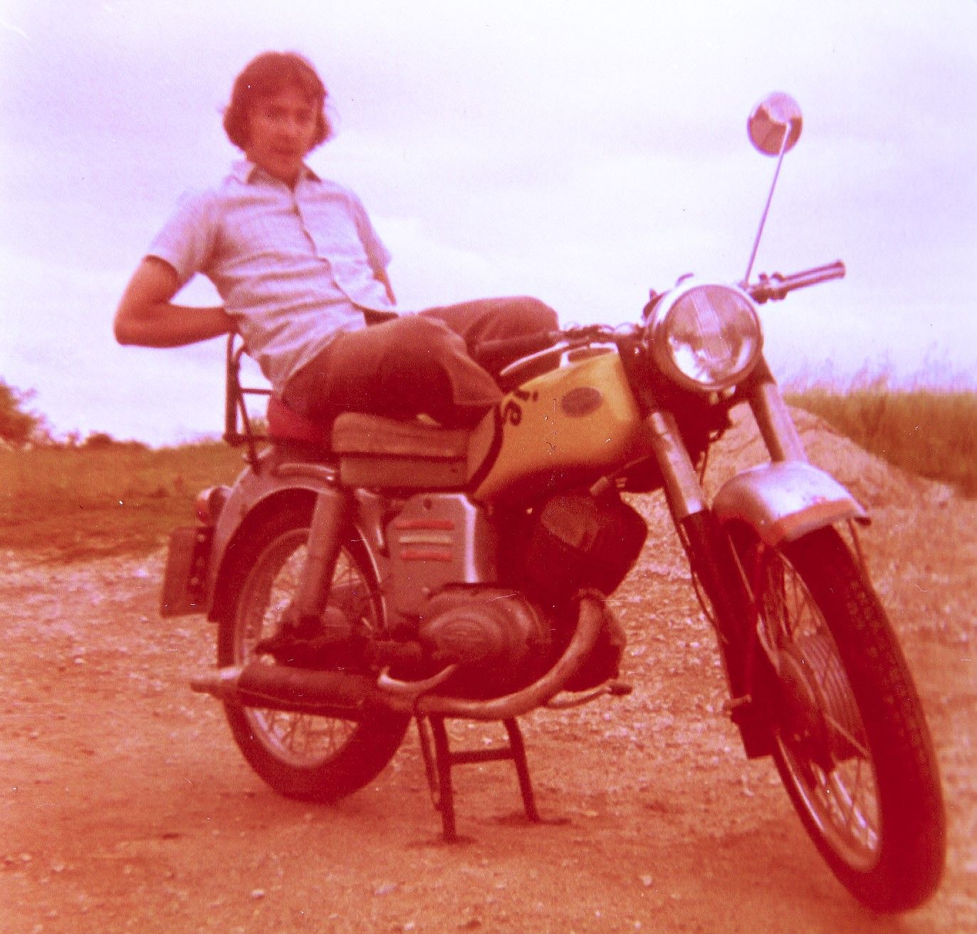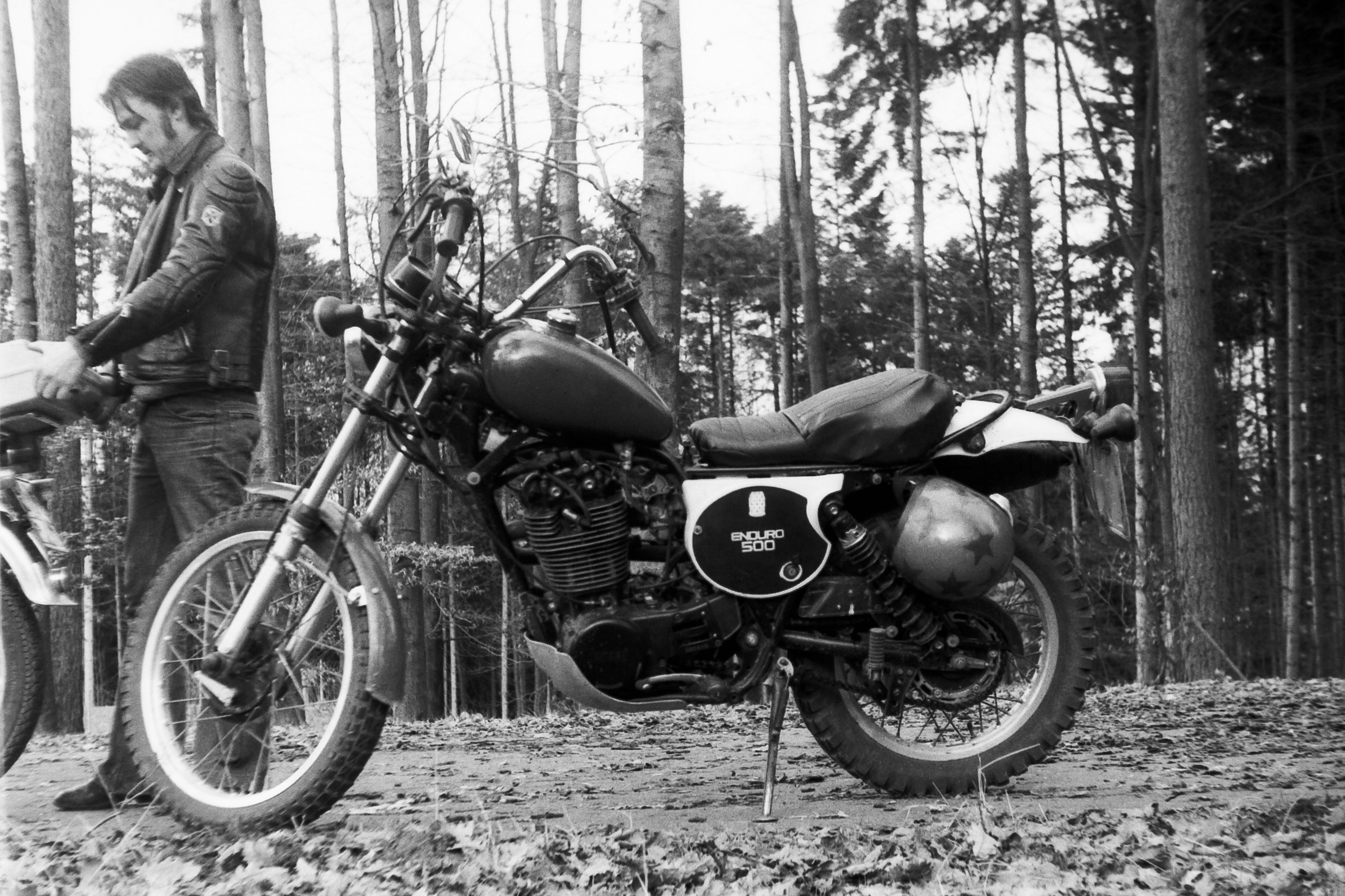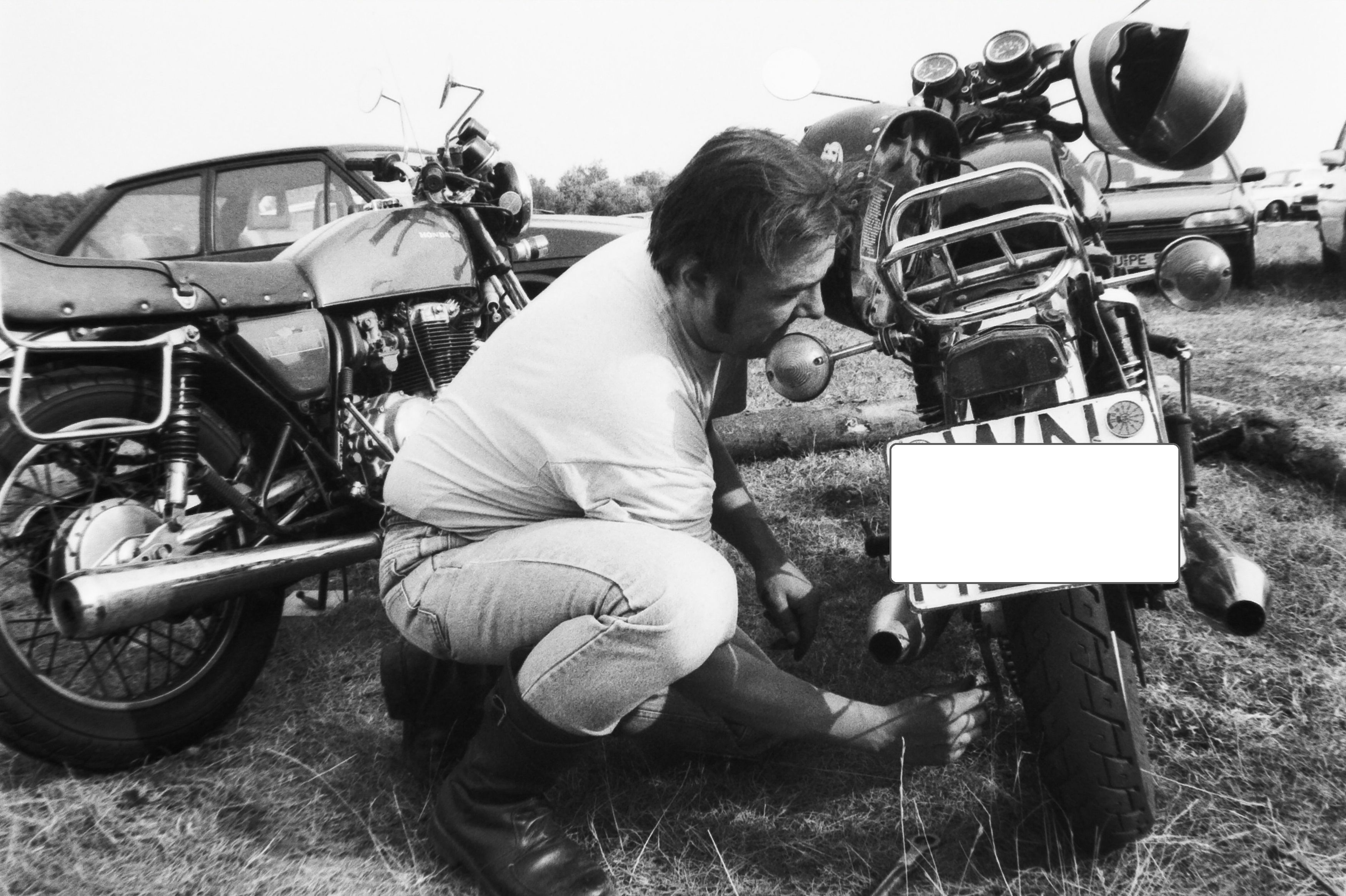 Allerdings hatte er mir eines absolut voraus: einiges an Schrauber-Erfahrung. Mit einem Nachbarsjungen hatte er schon als Halbwüchsiger in seinem Dorf Motorräder und Roller vom Sperrmüll gesammelt und irgendwie in der Nachbarsscheune zum Laufen gebracht. Und wenn man ein wenig Umsicht walten ließ, fielen gelegentliche Ausritte auf Feldwegen Anfang der Siebziger noch nicht auf. 1976 fuhr ich zum letzten Mal gemeinsam mit meinen Eltern in den Familienurlaub an die französische Atlantikküste. Wie wir bald feststellten, war Albert zu der Zeit auf demselben Campingplatz und schraubte an seiner maladen Zündapp, mit der er den ersten Motorradurlaub unternahm. Auf der Rückreise bekam er Kontakt zu einer Gruppe Franzosen, die auf englischen Twins unterwegs waren, was eine nachhaltige Prägung auslösen sollte.
