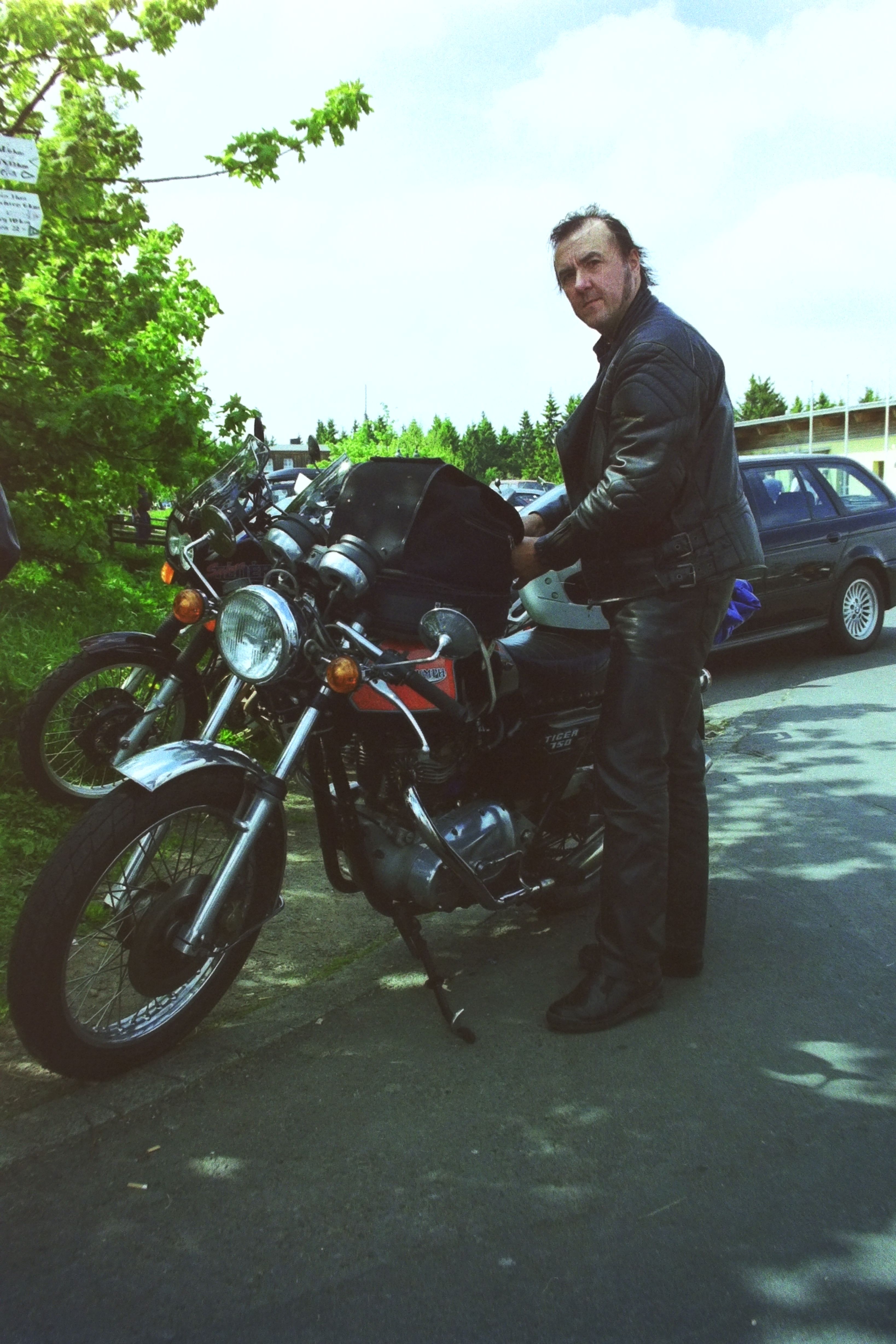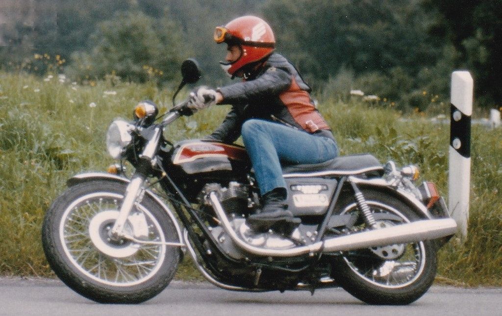 Eine weitere Erkenntnis vermittelte er mir, als er 1980 eine der letzten Triumph Tiger 750 neu erwarb, woran sein oben genanntes Frankreicherlebnis wohl nicht ganz unbeteiligt war. Mir war zunächst schleierhaft, warum er eine so altmodische, archaische Technik mit Stoßstangenmotor, nur 45 PS und dem Ruf einer nicht standfesten Ölsardine erwarb. Das erste Aha-Erlebnis hatte ich, als ich erstmals hintendrauf mitfuhr: Der Anzug und das Drehmoment der Tiger waren phänomenal. Das zweite Aha-Erlebnis kam postwendend, als er auf eine Kurve mit einem Tempo zufuhr, dass ich mir sicher war, wir würden einen Abflug in die Landschaft machen. Aber: weit gefehlt. Die Tiger ging ohne das geringste Wackeln um’s Eck, dass ich sprachlos war. Und das dritte Aha-Erlebnis stellte sich nach Jahren endloser, gemeinsam abgespulter Kilometer ein: Die Tiger war robust, einfach zu warten und absolut zuverlässig, sofern man angemessen mit ihr umging. Ich denke nicht, dass Albert mehr an ihr schrauben musste als ich an der Honda, und er hatte offensichtlich ein Händchen für dieses Motorrad.