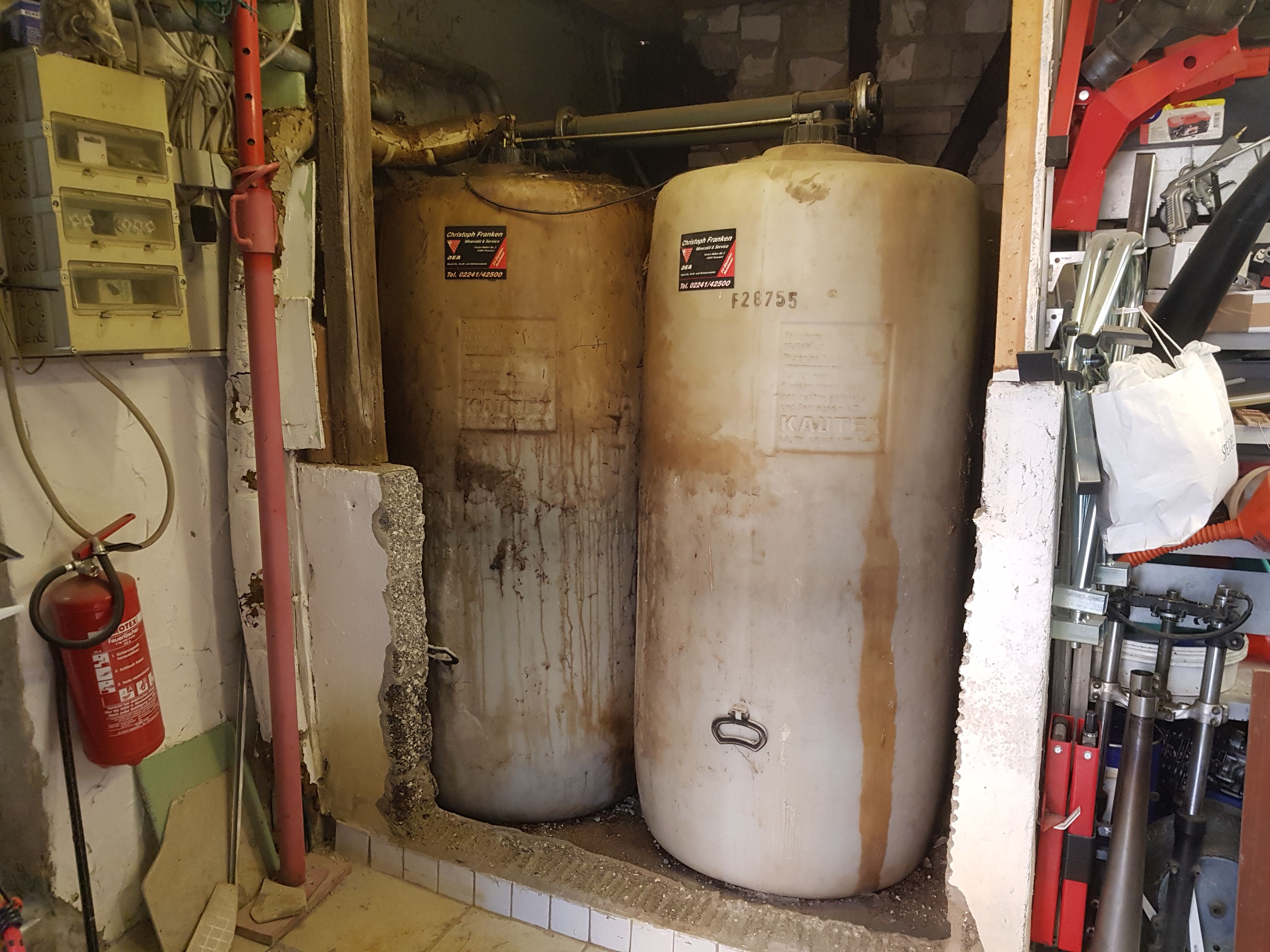 Im vergangenen Winter habe ich schon nach Möglichkeiten gesucht, sie zu sanieren und auszutauschen, da sie im selben Raum wie meine Werkstatt ist, und dort erhebliche Platzreserven beansprucht. Als Folge der Ahrtal-Flut haben sich auch die behördlichen Auflagen deutlich verändert, und mir war schnell klar: Jetzt hilft nur ein kompletter Austausch. Beim Kostenvoranschlag wurde mir schwindelig, das hätte ein schönes Motorrad bezahlt. Ärgerlich auch, weil ich perspektivisch ganz von fossilen Brennstoffen weg will. Aber auch das hat seinen Preis, jedenfalls wenn man eine optimale Variante umsetzen möchte.