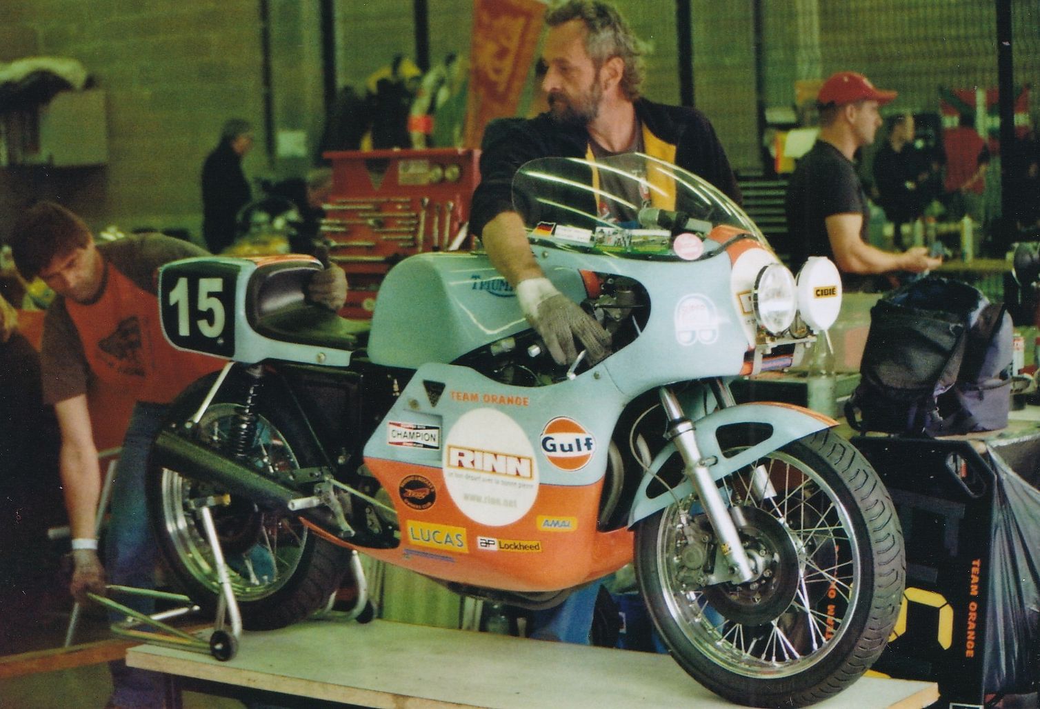 Durch die Triple-Restaurierung habe ich in den Neunzigern ‚Ago‘ kennengelernt. Seine Renn-Trident mit der Startnummer X30 war früher im Einsatz als meine Honda, also begleitete ich ihn öfter mit der Kamera. Als ich vor einiger Zeit mal meine Kamerautensilien aufgeräumt habe, ist in einer der Analog-Kameras tatsächlich noch ein nicht entwickelter Film aus dieser Zeit aufgetaucht. Ich musste erst mal schauen, wer mir den noch entwickelt, entsprechende Fotoläden gibt es nicht mehr an jeder Ecke.