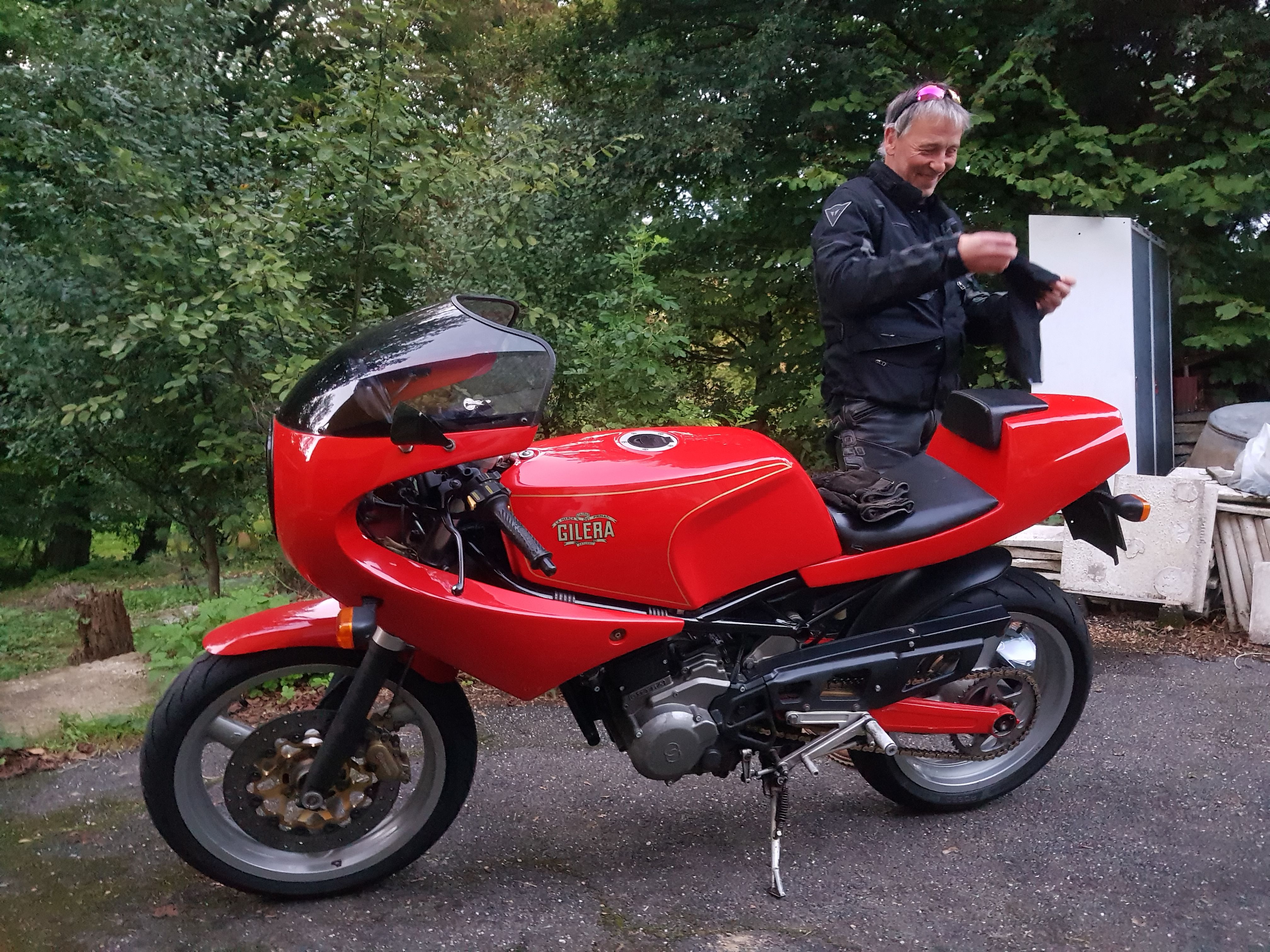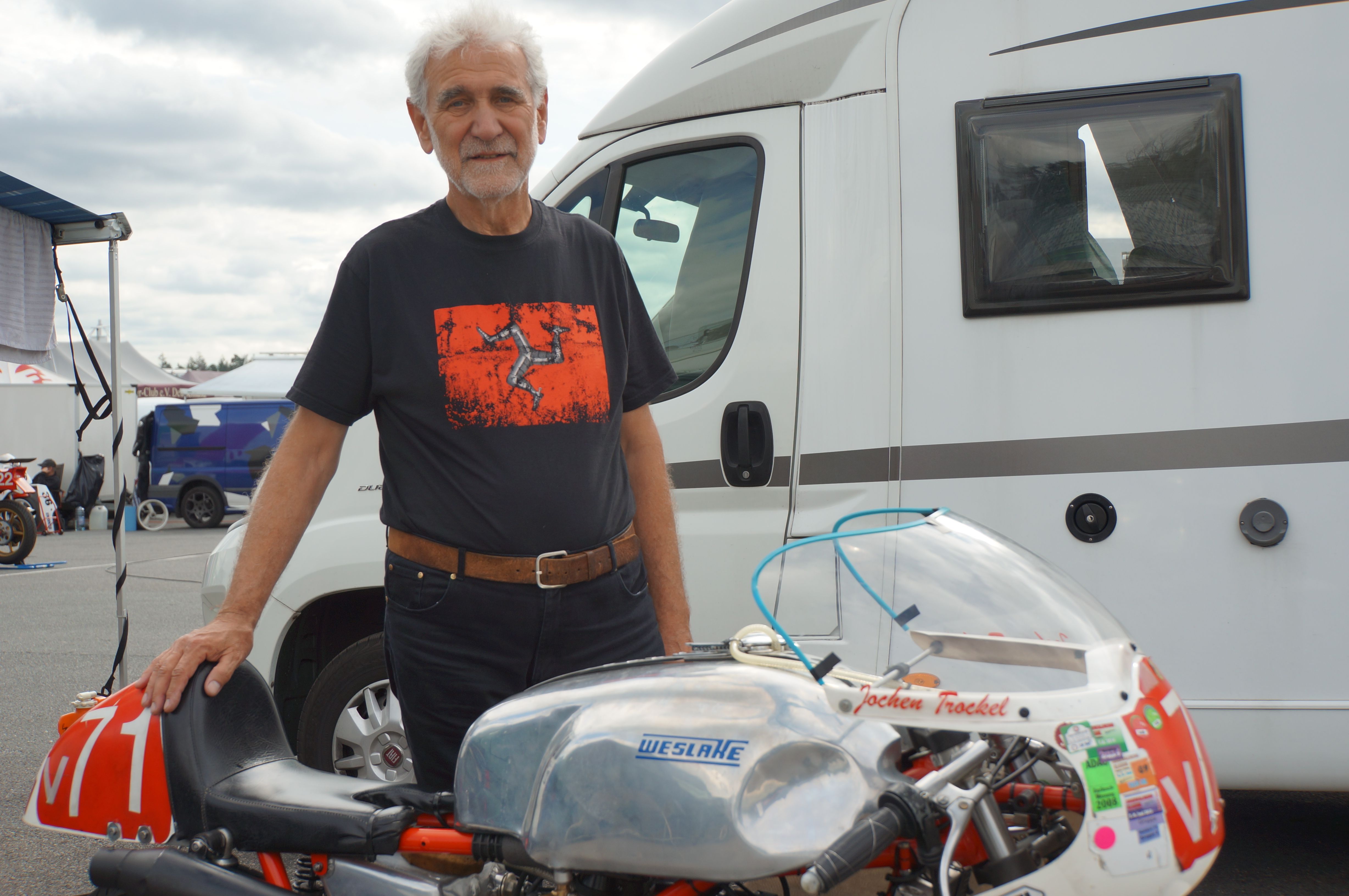 Irgendwann kam jemand an meinem Tisch vorbei, wir sahen uns kurz an und meinten beide, uns irgendwoher zu kennen. Das Rätseln dauerte nicht lange, als ich ihn fragte, ob er in der DHM mitfährt. Wir kannten uns aus dem Fahrerlager, und es stellte sich heraus, dass er der Fahrer der 500er Weslake ist. Stoff für ein längeres angeregtes Gespräch.