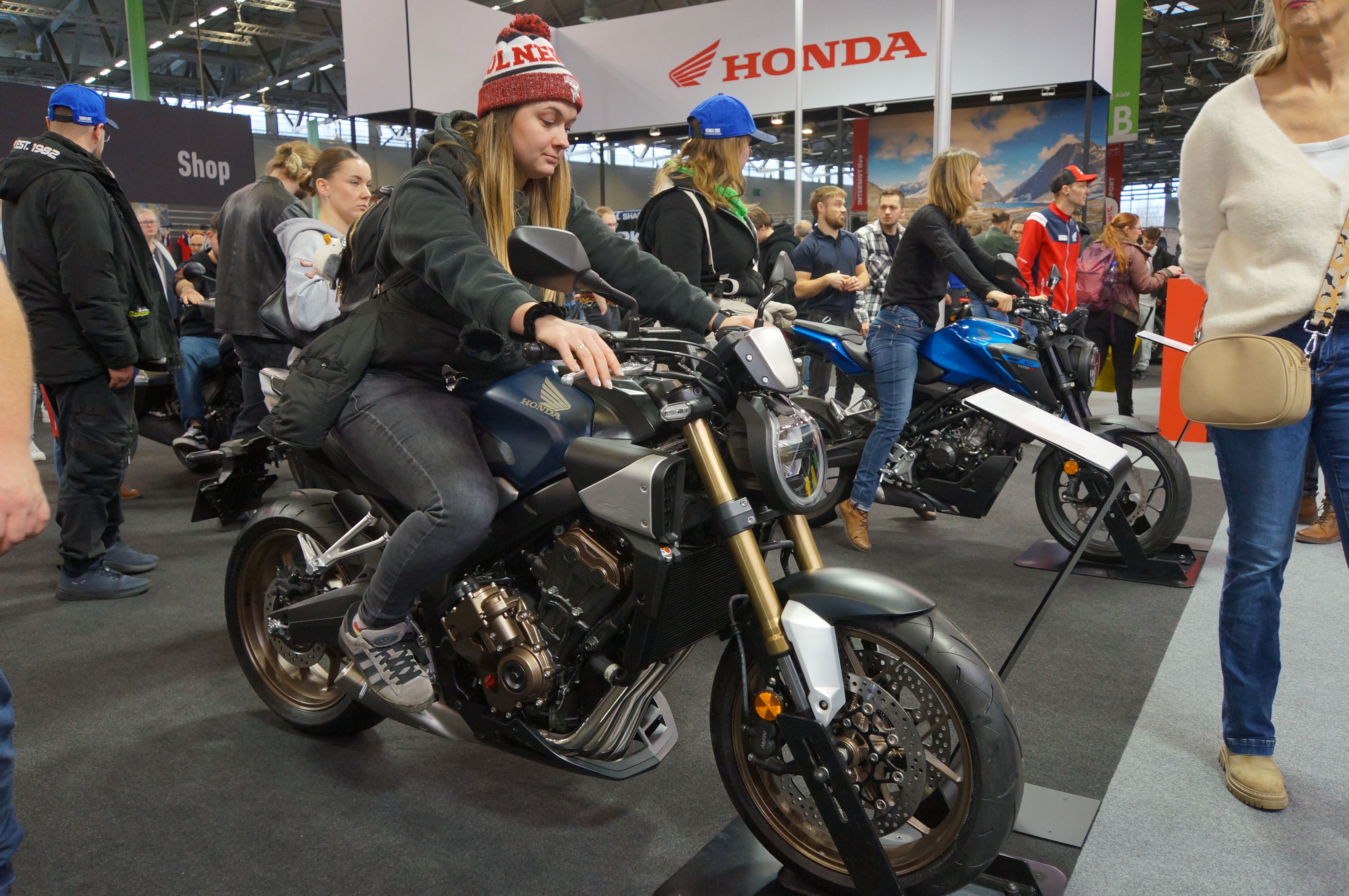 Stattdessen wurden die gängigen Modelle einfach konsequent weiter entwickelt, ohne radikale Brüche zu machen. Natürlich fanden sich am Honda-Stand auch E-Antriebe und Modelle im neuen Design-Trend. Aber Sportler wie die CBR 600 oder die Fireblade präsentieren sich wie eben beschrieben. Und besonders das aktuelle Topmodell von Honda, die CBR 1000 RR-R war von einer Menschentraube umlagert.