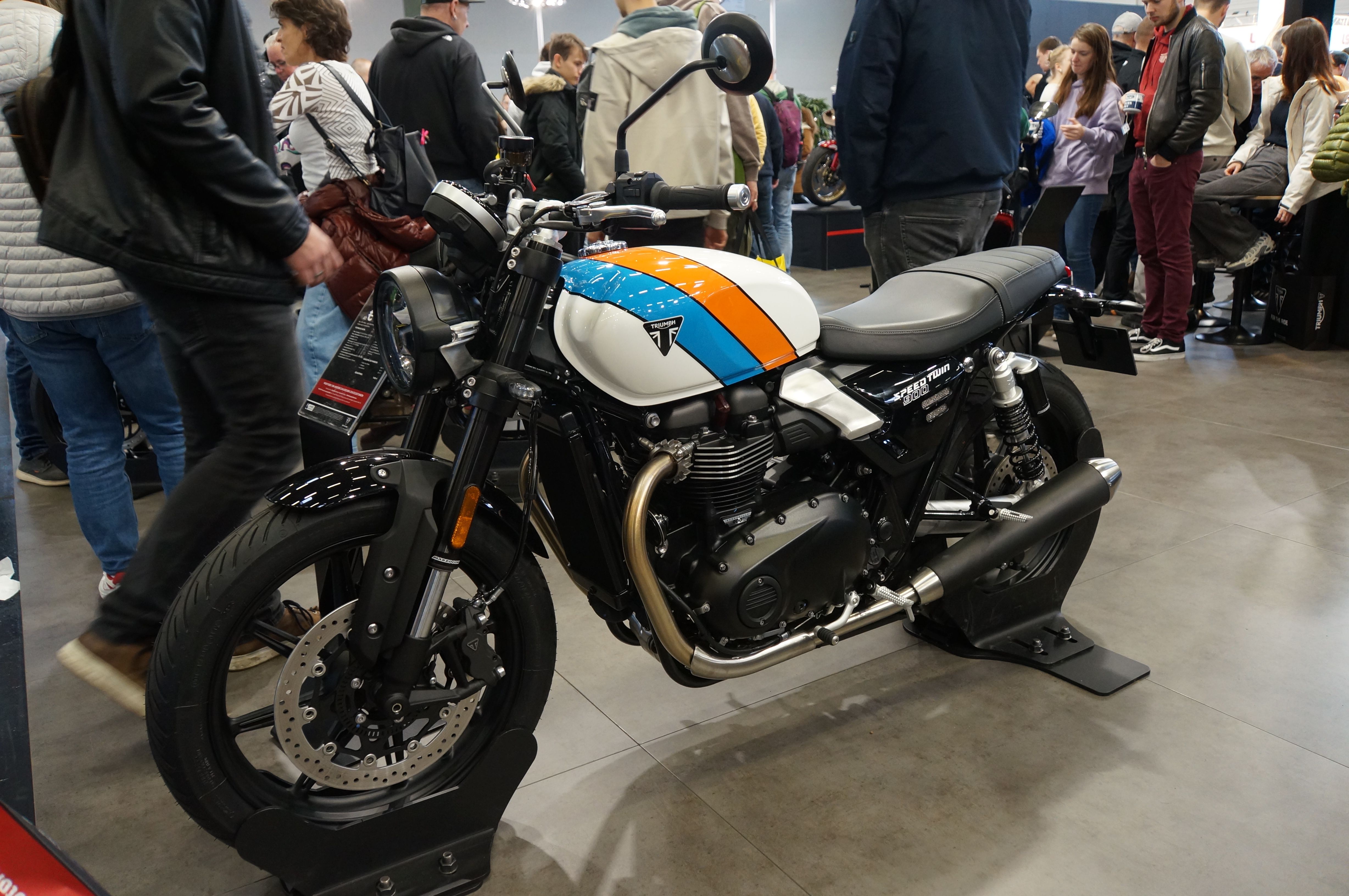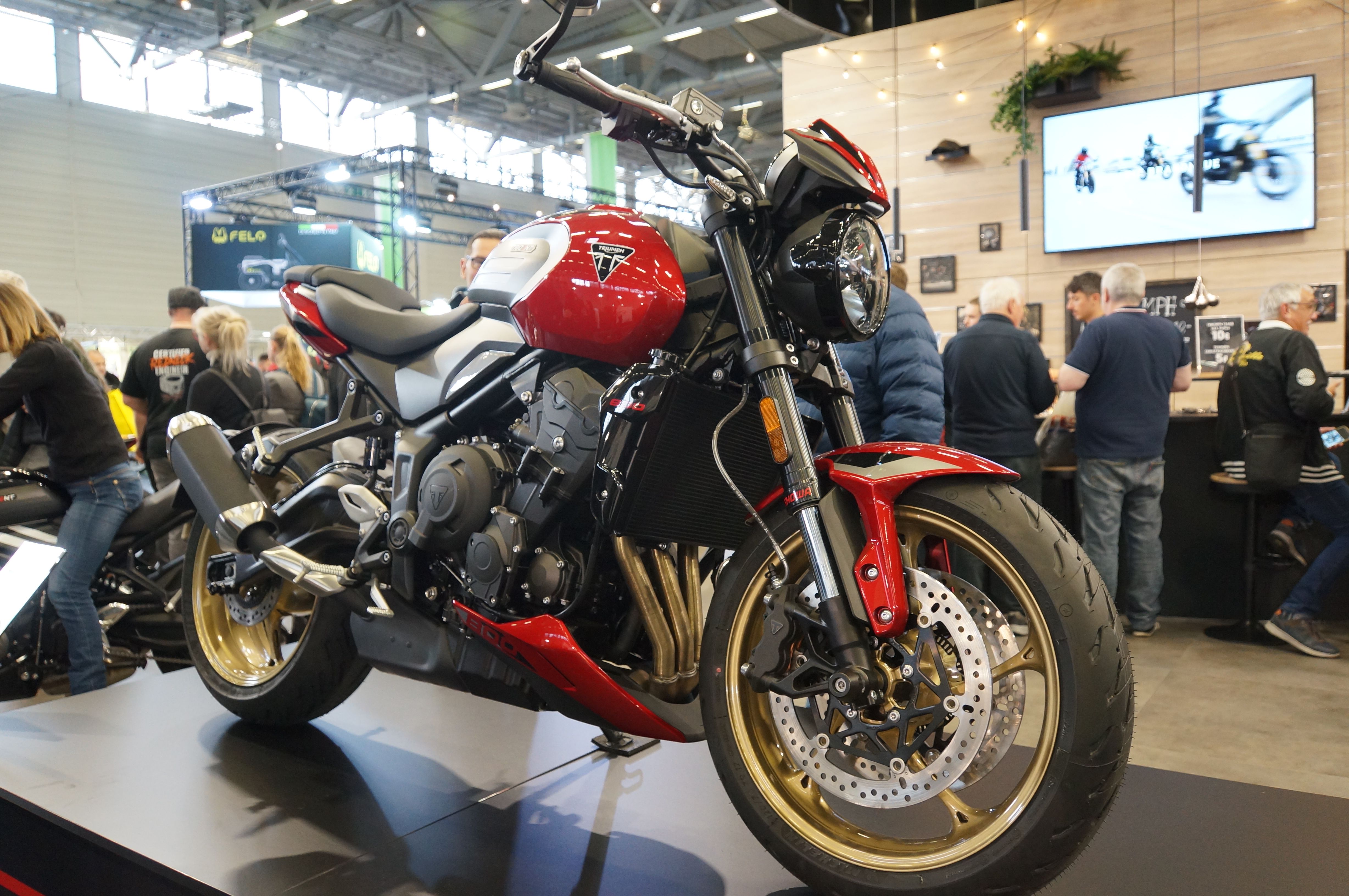 Allerdings wirken die aktuellen Twins ziemlich wuchtig, wenn man vor ihnen steht. Und ein Twin mit 1200 ccm lockt mich nicht wirklich. Zwar haben mir die neuen Trident-Modelle bislang nicht gefallen, manche fand ich geradezu hässlich und die meisten einfach zu voluminös. Das aktuelle Modell hat mich aber letztendlich mehr angesprochen als die retro-Twins.