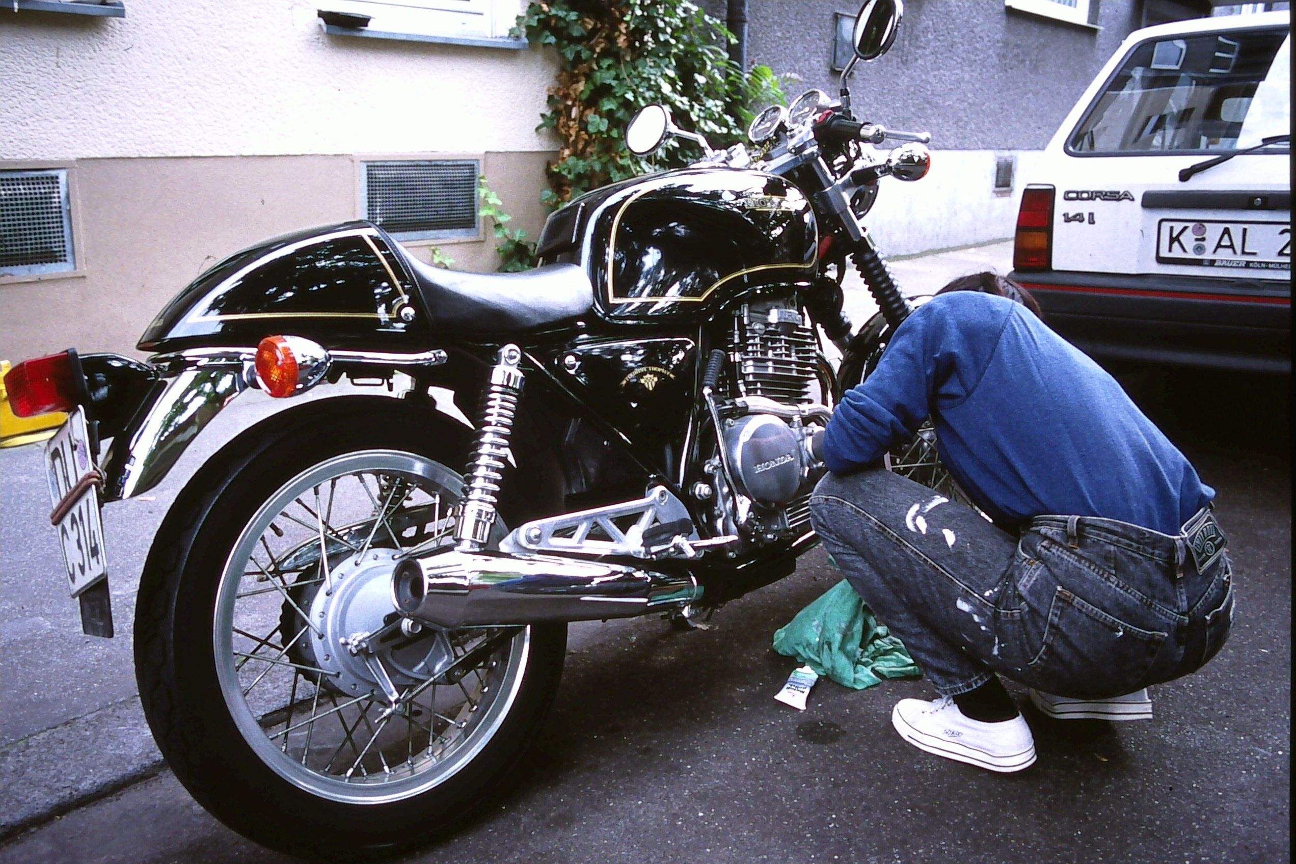 Im Jahr 1997 dann, inzwischen verheiratet, beschließt meine Frau nach einiger Zeit als Sozia den Motorrad-Führerschein zu machen. Ab da halten wir ständig die Augen nach einer für sie geeigneten Maschine offen. Irgendwann entdeckt sie dann im Verkaufsraum eines Teilehändlers, bei dem ich für die 400 Four etwas abholen will, eine Clubman. Und schon bald werden in den damals üblichen Anzeigenblättchen die entsprechenden Inserate gesichtet.