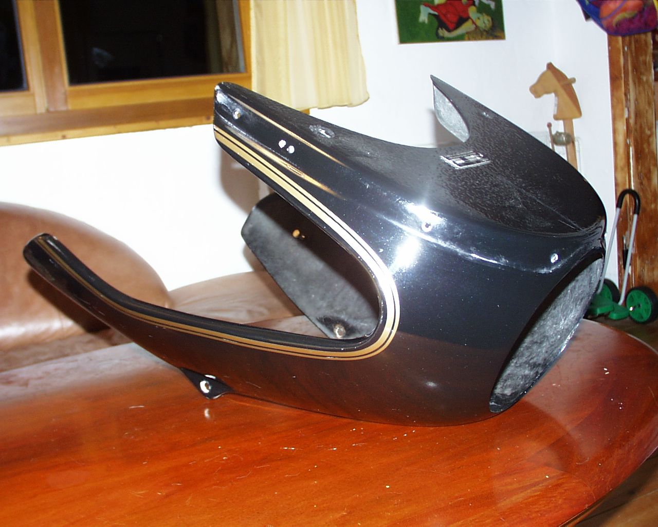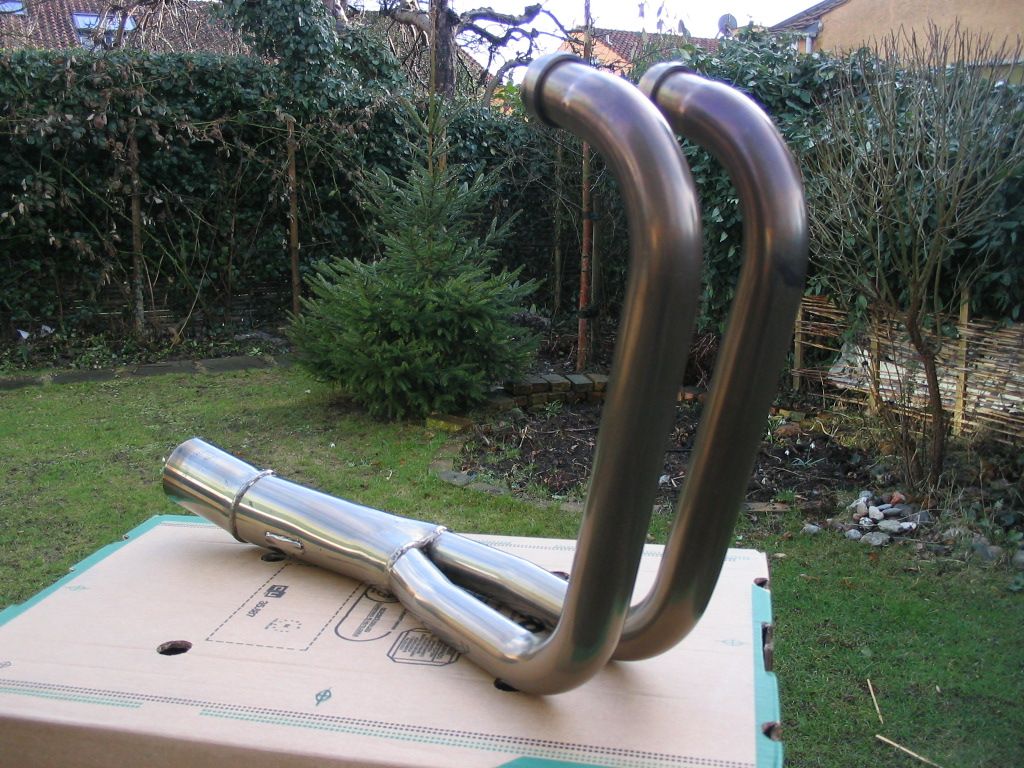 Ich habe inzwischen Gefallen an dem Eintopf gefunden und übernehme ihn zu dem Preis, den wir beim Kauf bezahlt hatten. Irgendwann taucht bei ebay eine schöne VA-Krümmer-Anlage auf, die die Original-Krümmer ersetzt, für eine bessere Optik sorgt und den Motor freier atmen lässt, ohne wahrnehmbar lauter zu sein. Auch eine passende Halbschalen-Verkleidung aus dem Hause MBV in Original-Lackierung taucht auf, die zugehörige Plexiglas-Scheibe kann der Hersteller noch liefern. Wenn man sich dahinter schön klein macht, rennt der Single locker zehn Stundenkilometer schneller. Dafür müssen die Lenkerstummel allerdings unter die Gabelbrücke wandern. Ein Gabelstabi macht sie vorne etwas steifer und spurstabiler. Und auch auf diesem Motorrad fahre ich lieber den Avon Roadrider als den viel gelobten Bridgestone BT45. Der Avon ist zwar zunächst etwas gewöhnungsbedürftig, lässt sich aber für meinen Geschmack spielerischer und sportlicher fahren und bietet bei regennasser Straße mehr Grip.