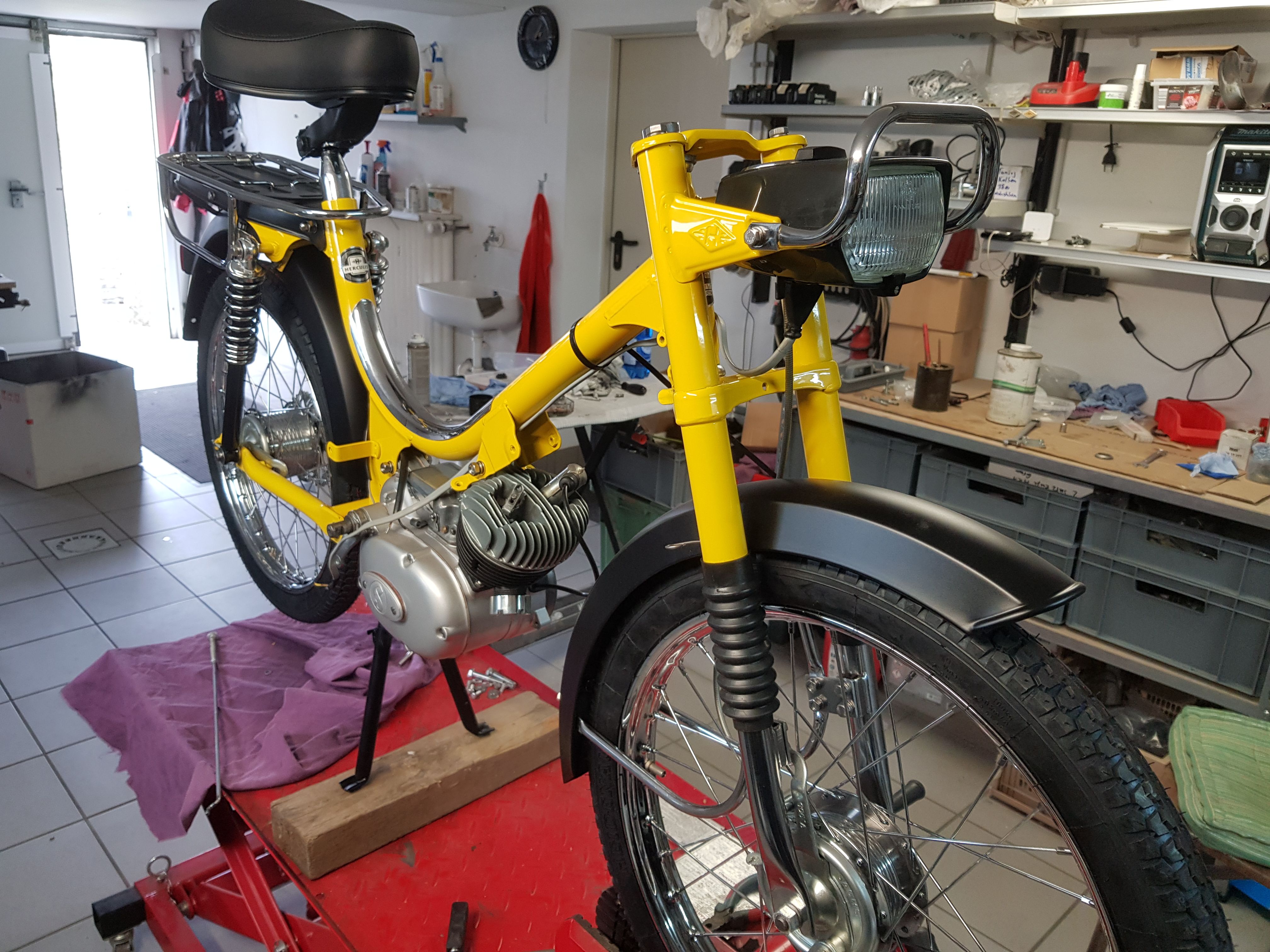 Alle anderen sind schon viel weiter. Bei Stefan steht schon wieder ein Mofa komplett auf den Rädern, und diverse Motoren sind auch gemacht.