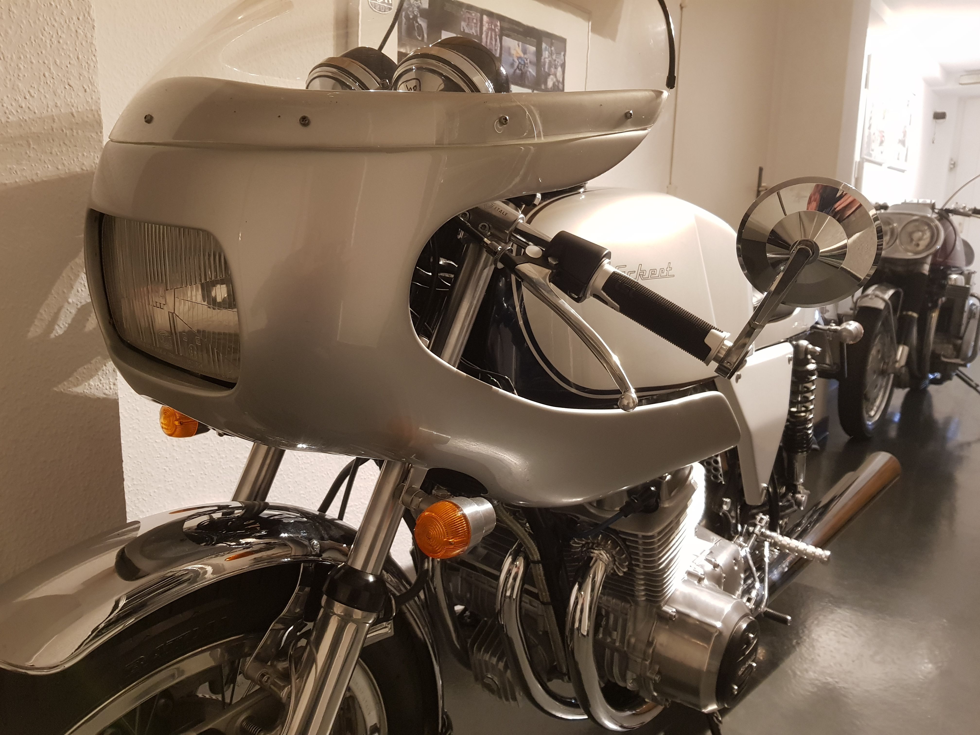 Und Alois treibt mich dann endlich an die Drehbank, eine Commando-Lima benötigt etwas Anpassung. Diesmal lasse ich die nötige Sorgfalt walten, um nicht wieder zu viel Material zu zerspanen, und schließlich passt alles perfekt. Es dauert dann auch nicht lange, und eine Commando parkt in meiner Einfahrt, Zeit auch mich und die 400er aus dem Winterschlaf zu holen.