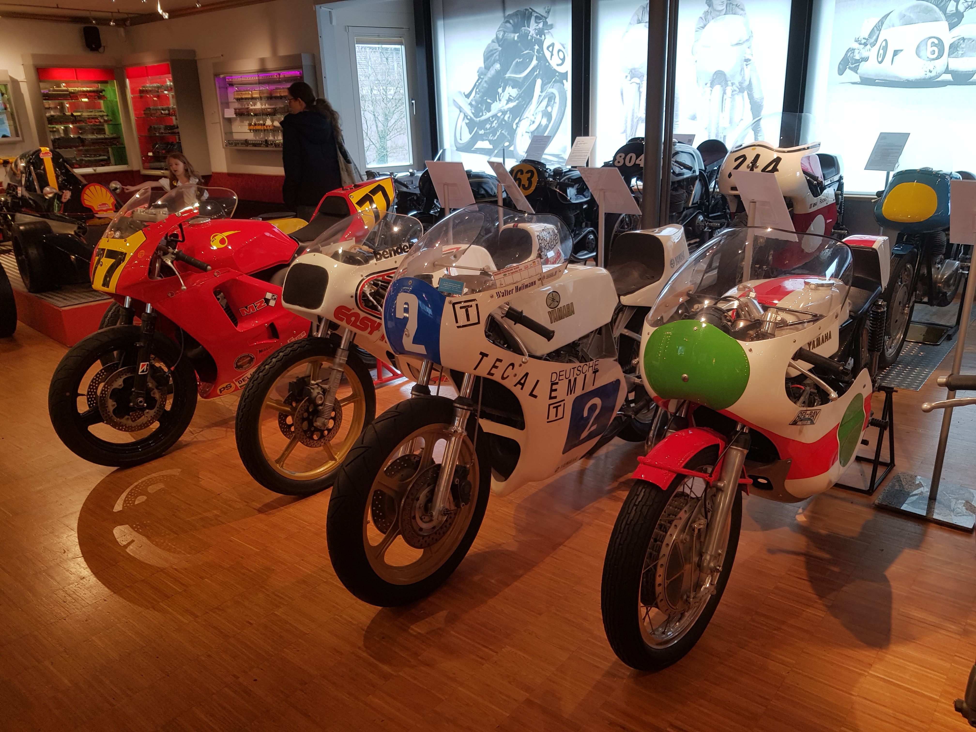 Obwohl das Museum relativ klein ist, und Motorräder nicht die Hauptrolle spielen, wird doch ein sehr interessanter Querschnitt gezeigt. Leider findet sich die von Mike für den Museumsbetreiber Rainer Klink restaurierte Honda CB 400 FOUR nirgendwo, der Schwerpunkt liegt hier eindeutig auf Rennmaschinen.