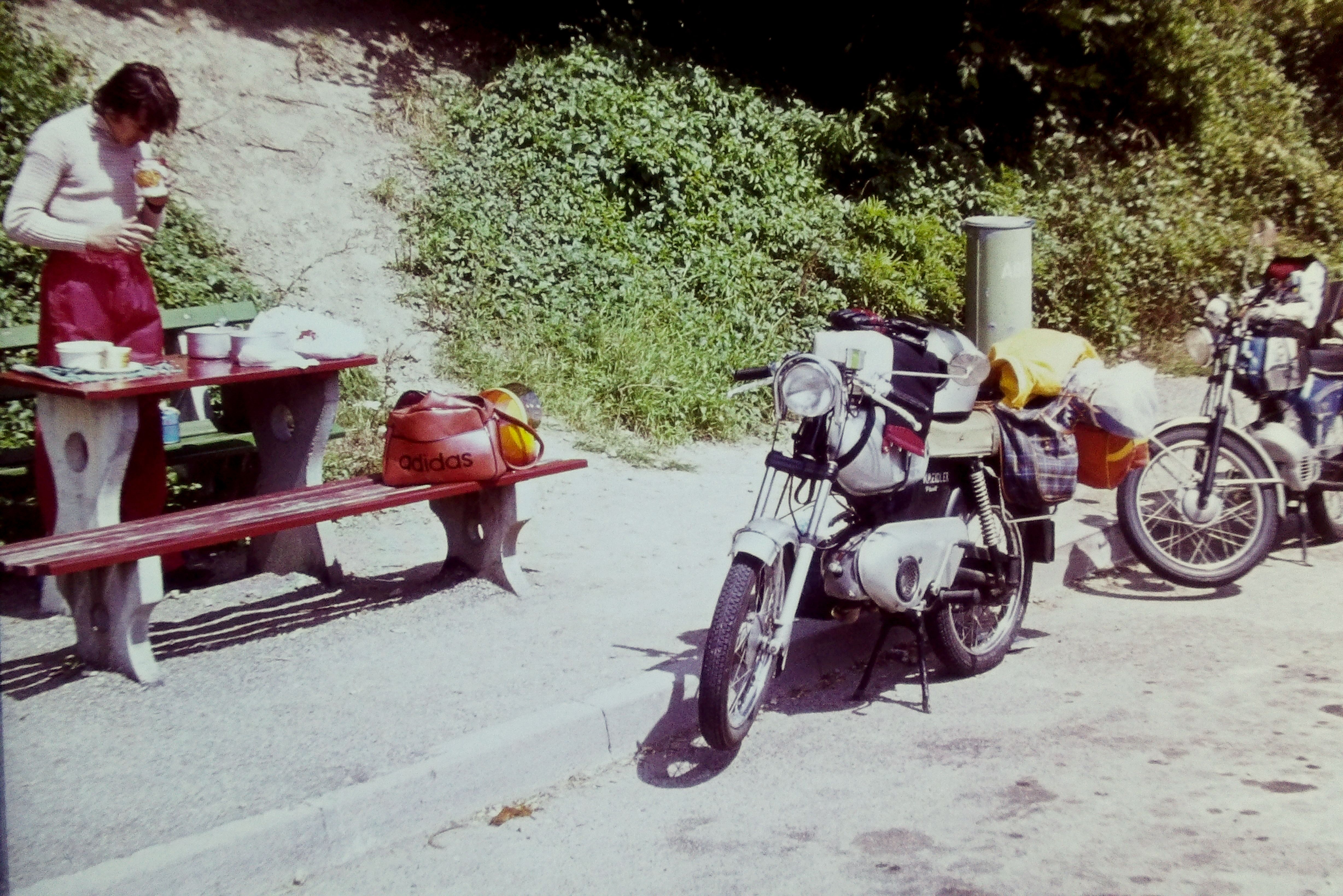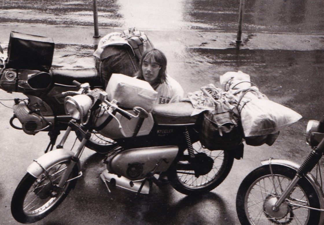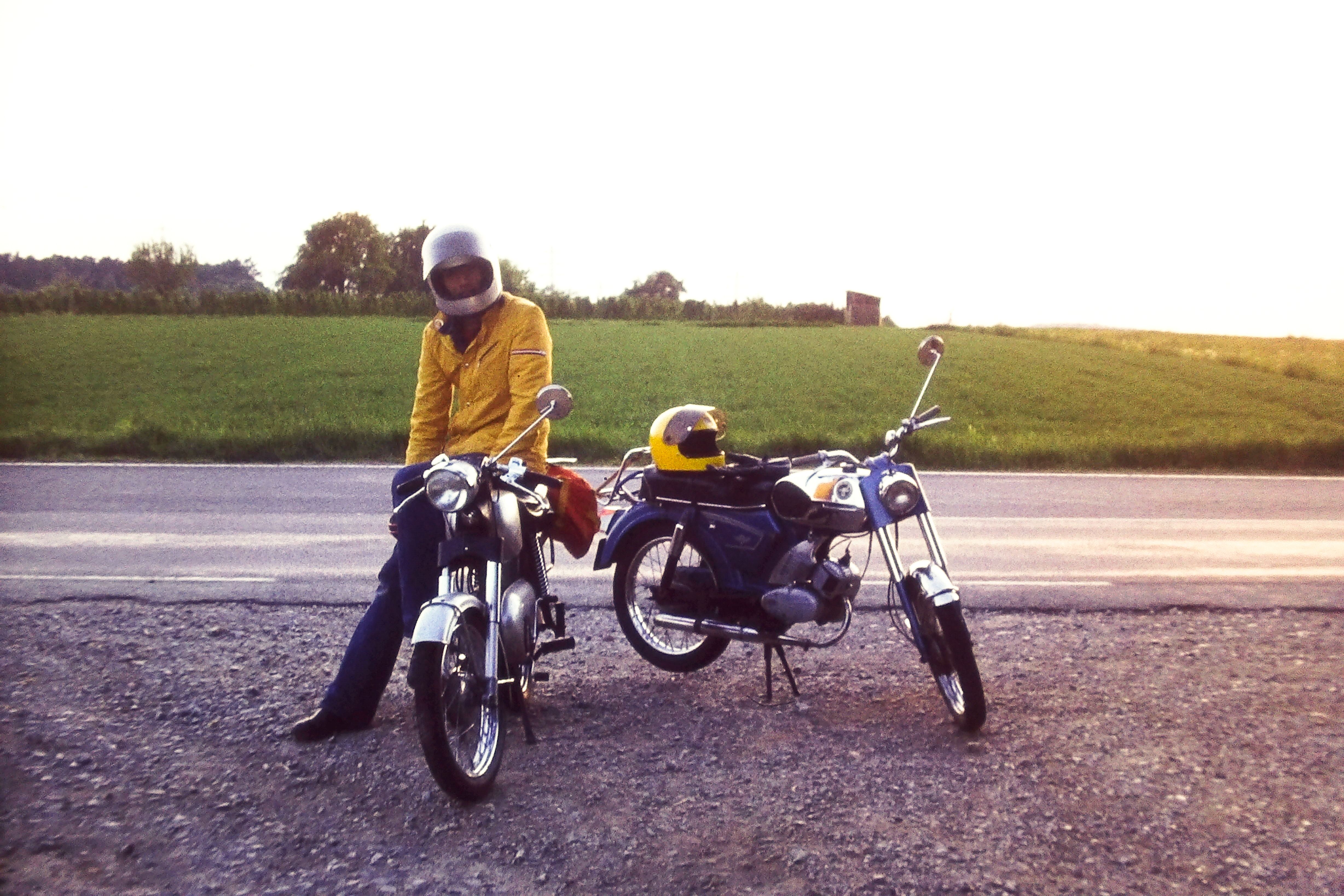 Eigentlich hat es 1976 begonnen. Noch waren die meisten von uns mit dem Fahrrad unterwegs, einige hatten schon ein Mofa, in unserer Region war das in der Regel ein Kreidler MF2. Ich war damals noch per Rennrad mit Vier-Gang-Zahnradschaltung unterwegs und war noch nicht besonders interessiert an der motorisierten Fortbewegung. Dass sich das innerhalb einiger Monate ändern würde, war mir aber klar. Also hab ich die Kumpels bequatscht, ein letztes Mal eine gemeinsame Radtour zu unternehmen. Diese Tour machte ausgesprochen viel Spaß, doch wie erwartet waren alle Beteiligten schon bald motorisiert unterwegs.