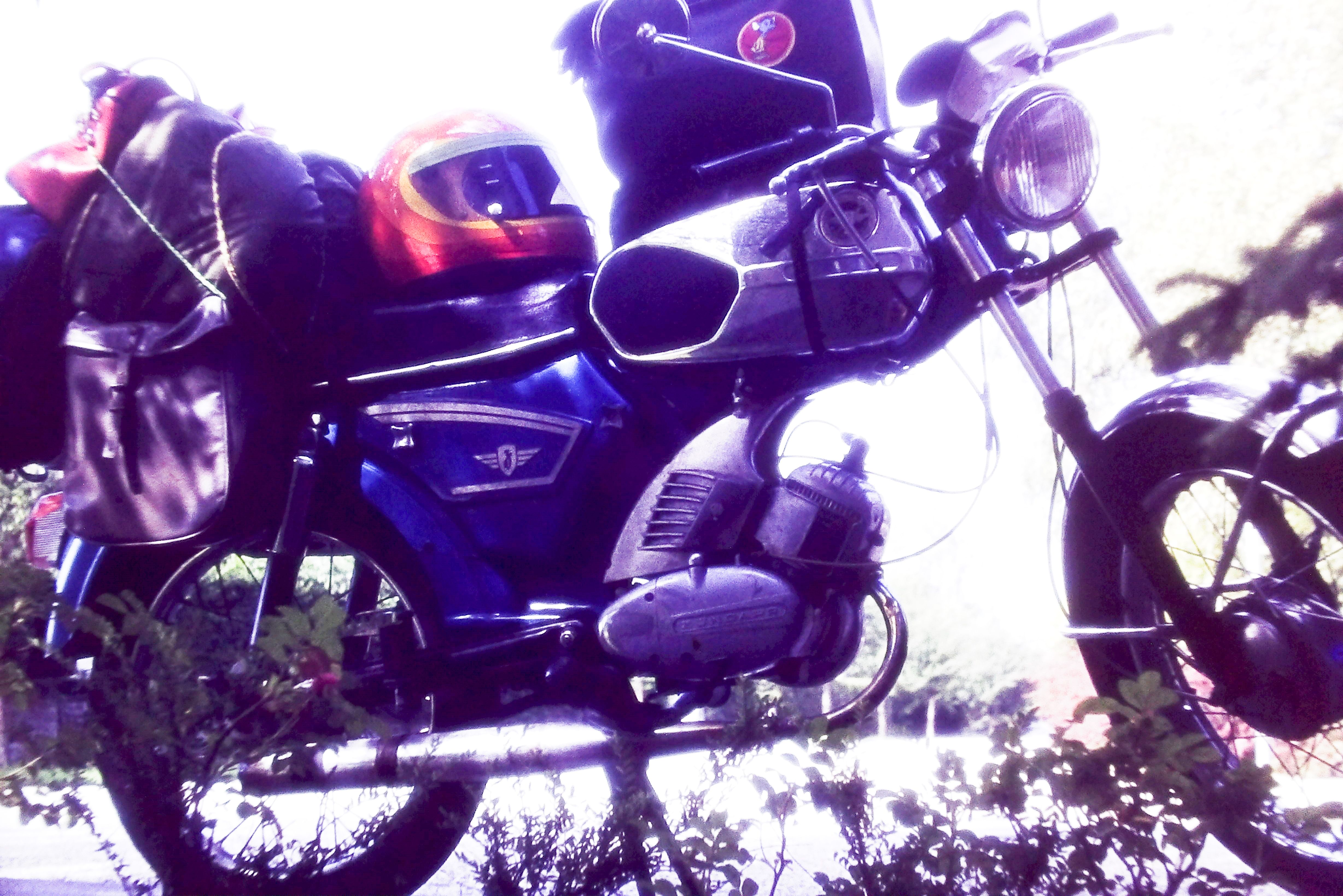 Noch schlug ich die meisten Mofas mit dem Rennrad locker, aber irgendwann setzte sich auch bei mir der Wunsch nach einem Mokick durch. Und schon nach den ersten paar Monaten dann auch das Verlangen, mal eine kleine Reise zu unternehmen. Was aus heutiger Sicht ziemlich abenteuerlich war, angesichts doch eher minimaler Schrauberkenntnisse und eines Kreidler-Mokicks, das in zehn Jahren vier Vorbesitzer und schon den ersten Motorschaden hinter sich hatte. Immerhin lagen rund 500 Kilometer vor uns.