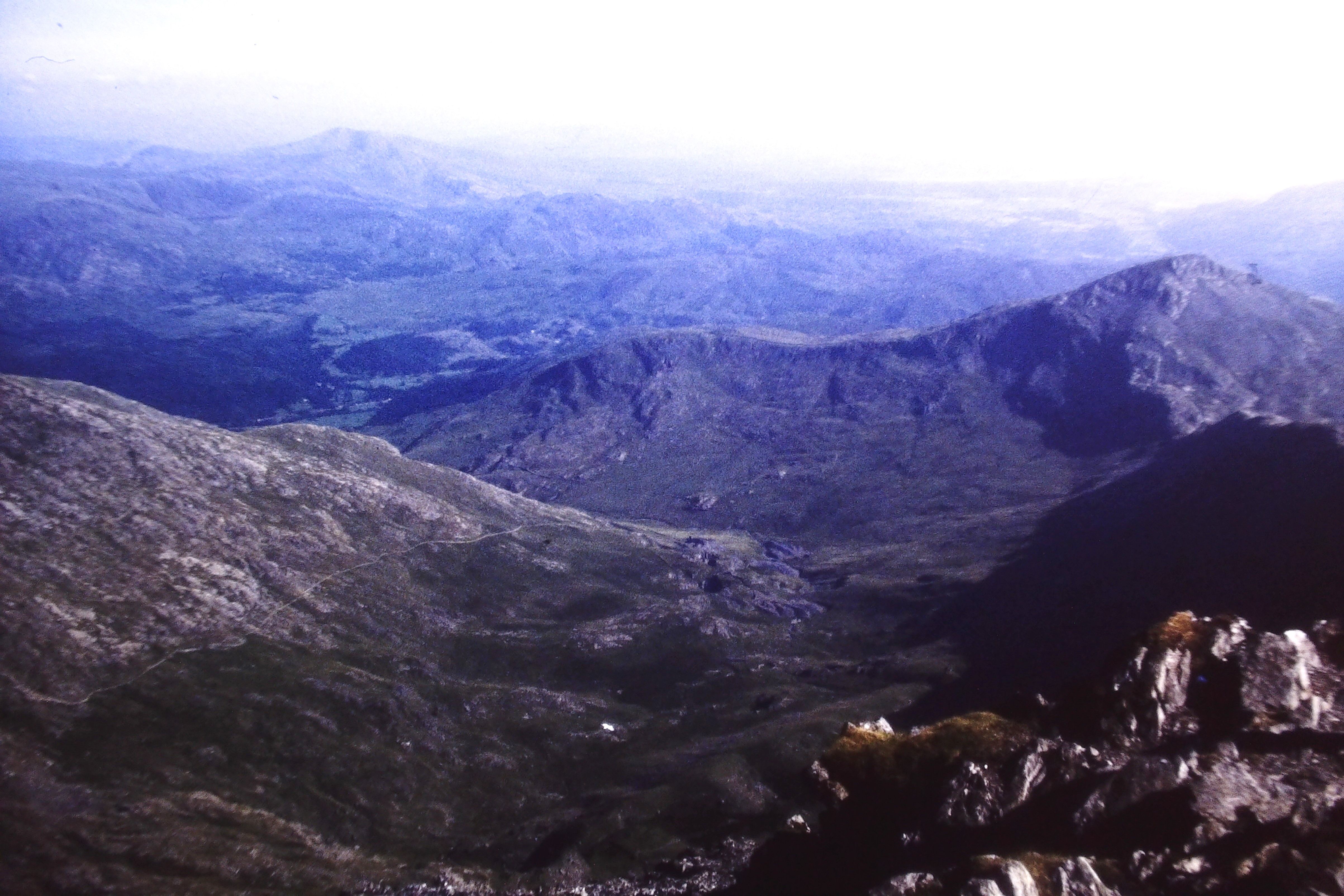 Der Blick vom Gipfel war phantastisch, so ganz anders als von einem Alpengipfel. Der Snowdon ist mit über 1000 Metern der höchste Berg in Wales, sein walisischer Name Yr Widdfa bedeutet Grab oder Gruft. Und das kann er schnell werden, wenn das Wetter vom nahen Atlantik her umschlägt und die Winterstürme hereinbrechen. Nicht umsonst hat Edmund Hillary hier für die Besteigung des Mount Everest trainiert.