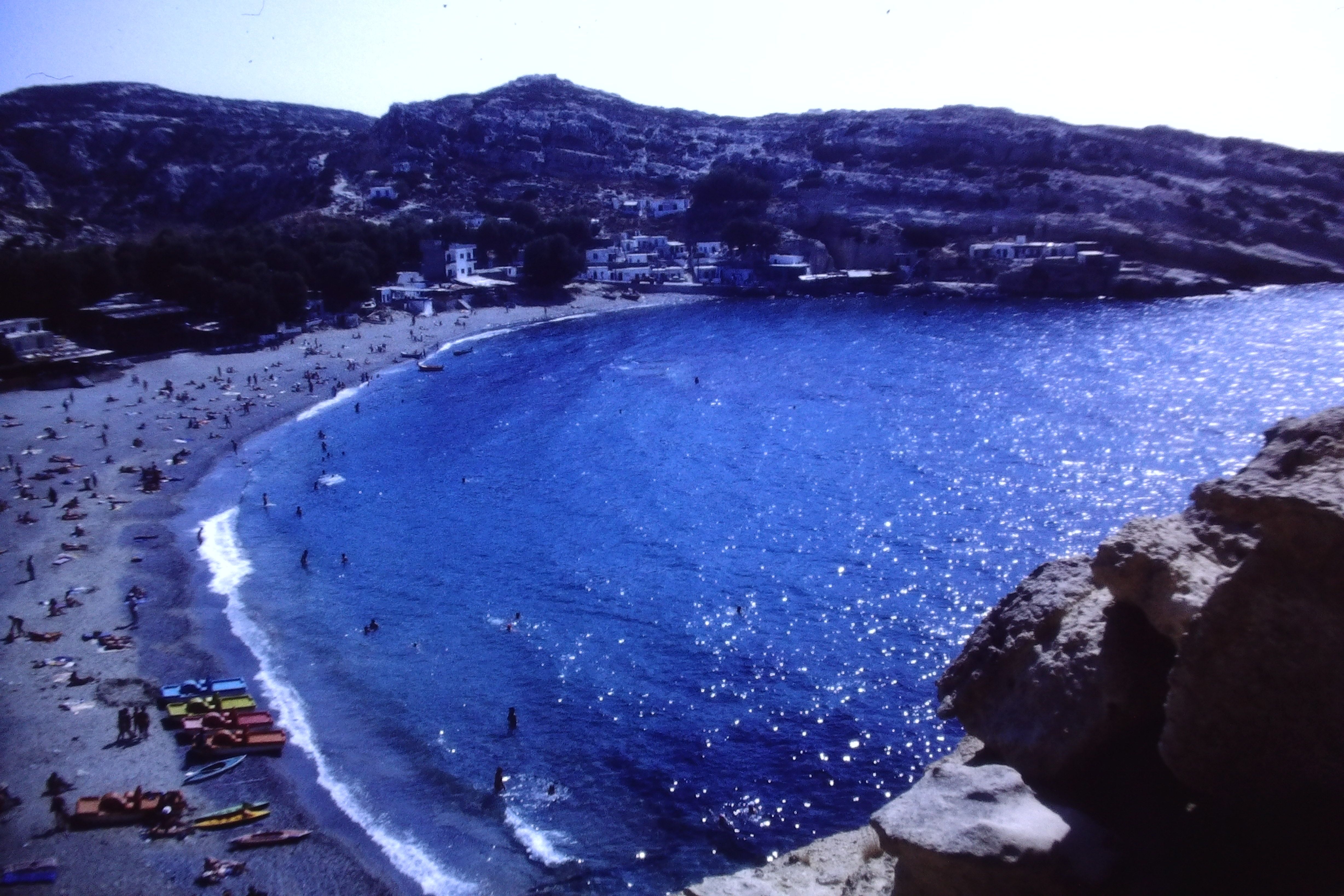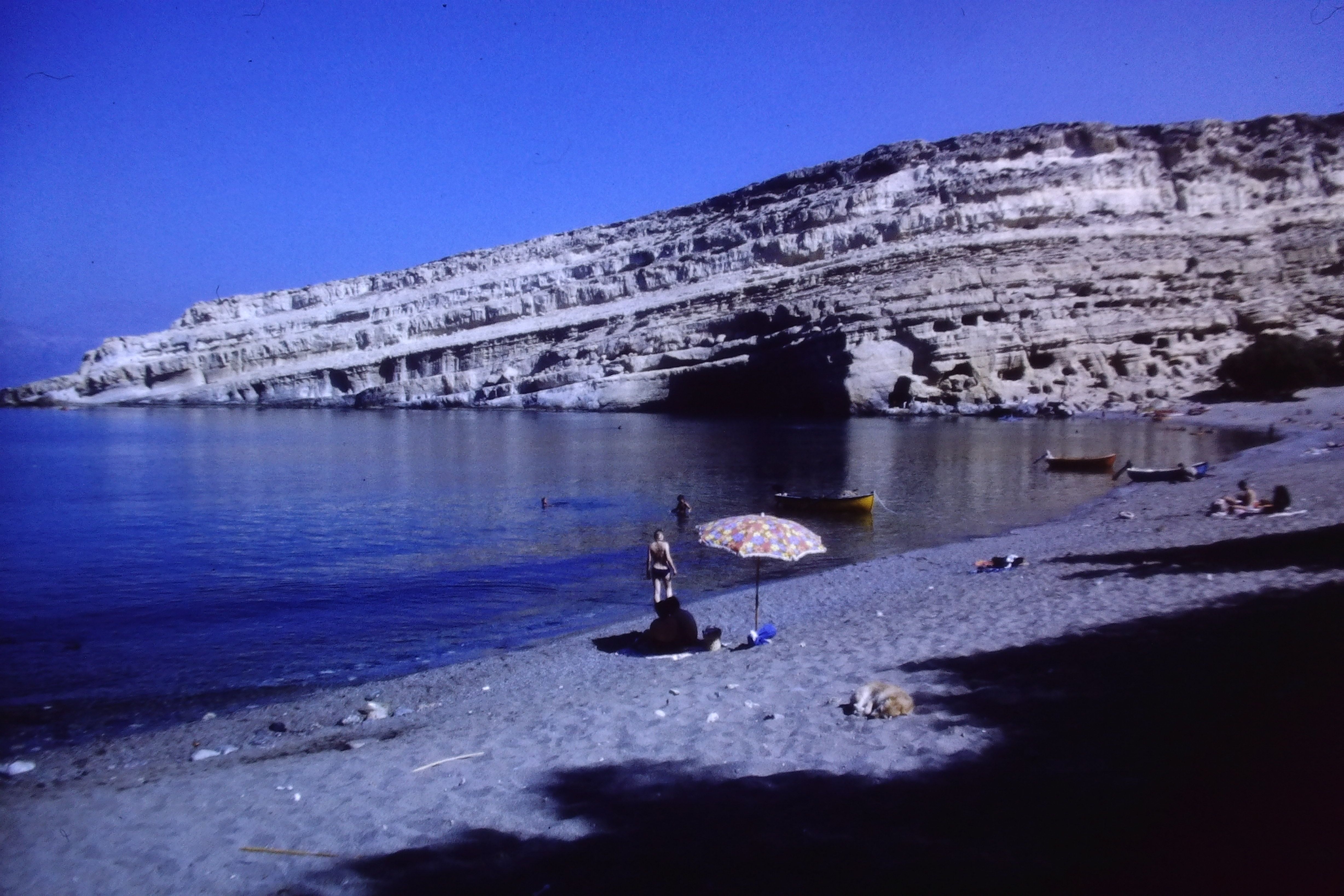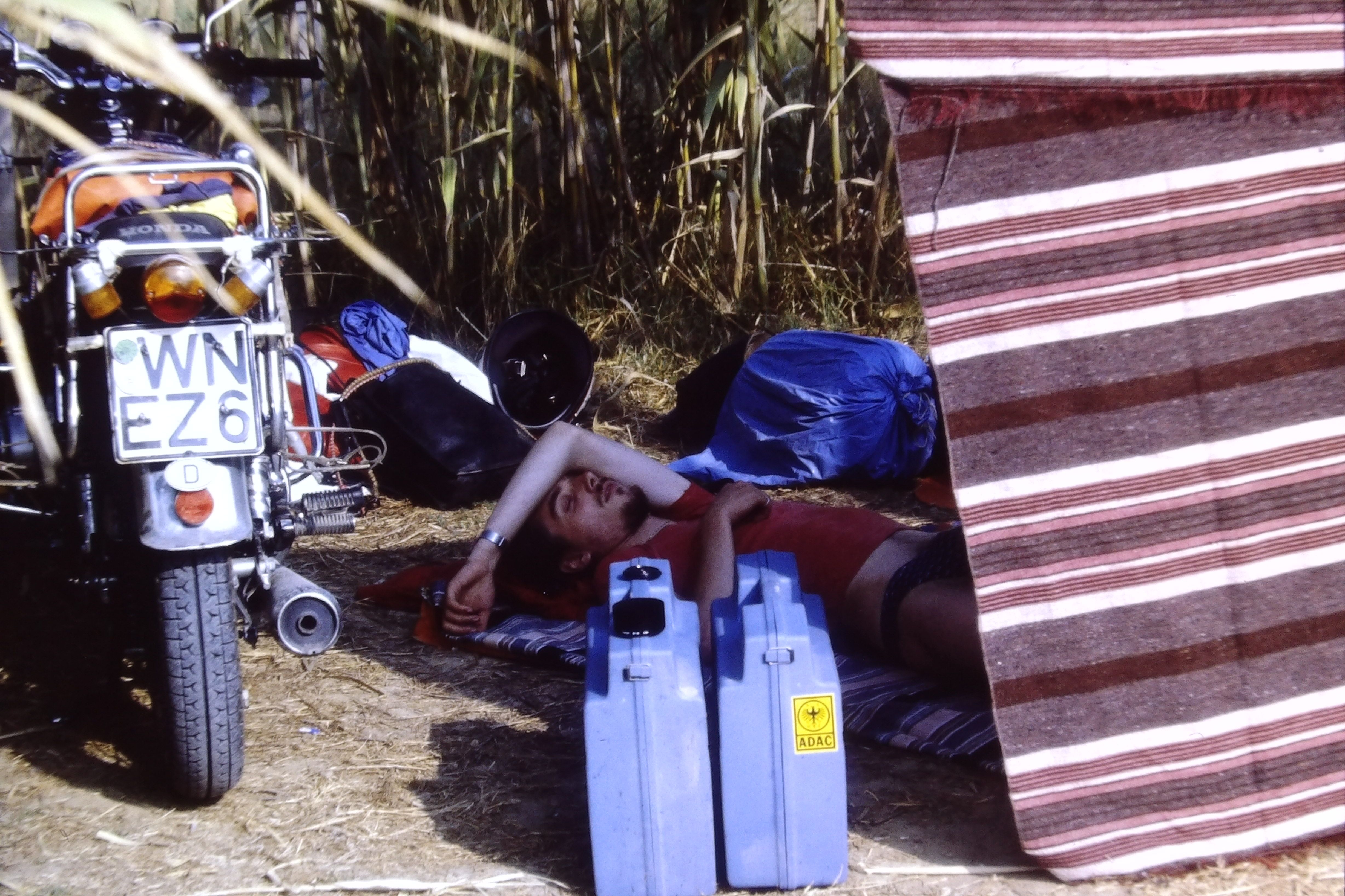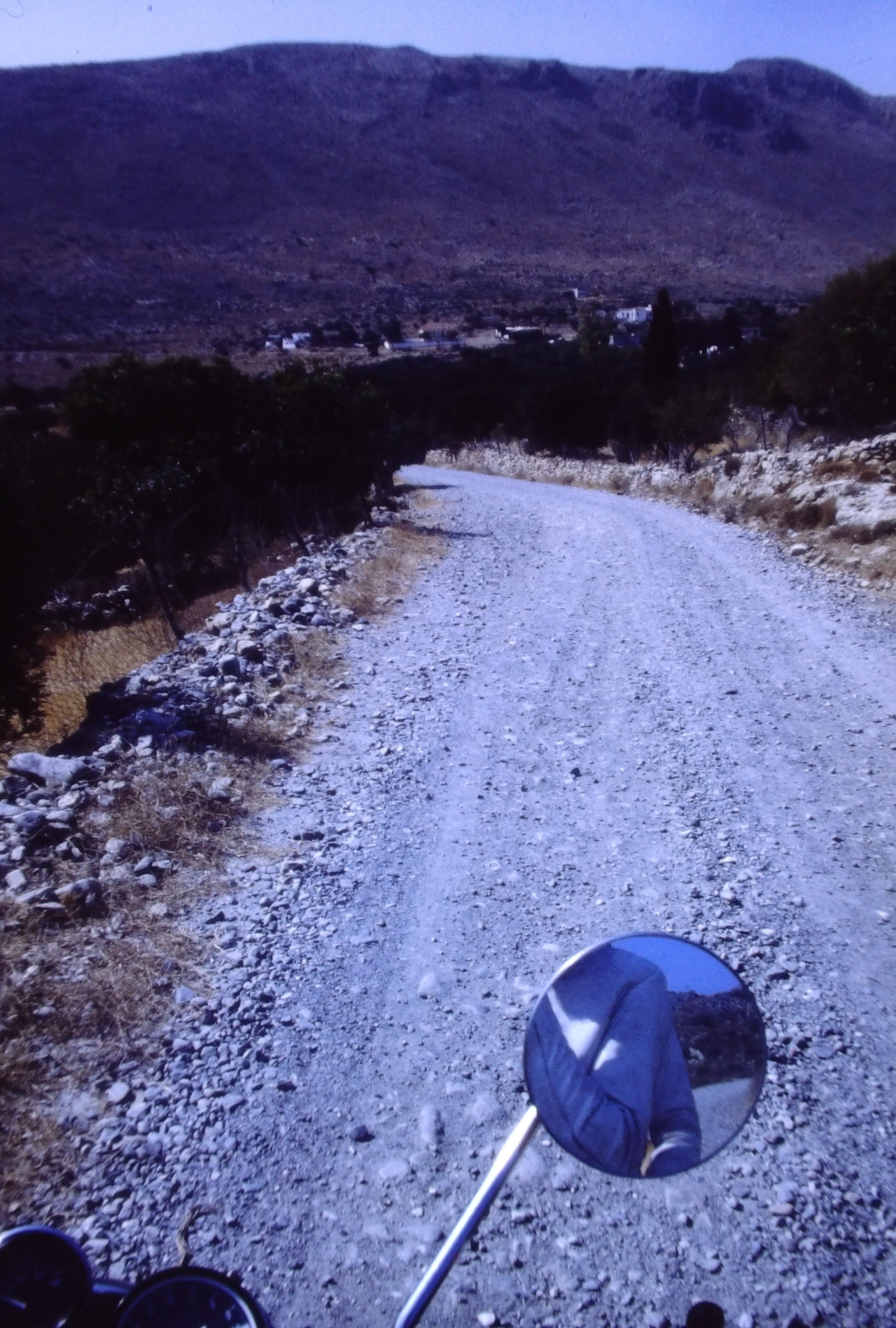 An den Küsten ist schon der Wechsel vom Rucksacktourismus zum Touristenboom am Anlaufen, aber in den Bergen ist Kreta noch sehr ursprünglich. Die Menschen sind ausgesprochen gastfreundlich. Als wir in unseren Lederkombis in der größten Mittagshitze in den Schatten einiger Olivenbäume flüchten, bemerken wir zu spät, dass es sich um einen Militärstützpunkt handelt. Aber der höchstens 18-jährige Wachsoldat scheucht uns nicht weg und gibt uns Weintrauben, eine willkommene Wegzehrung.