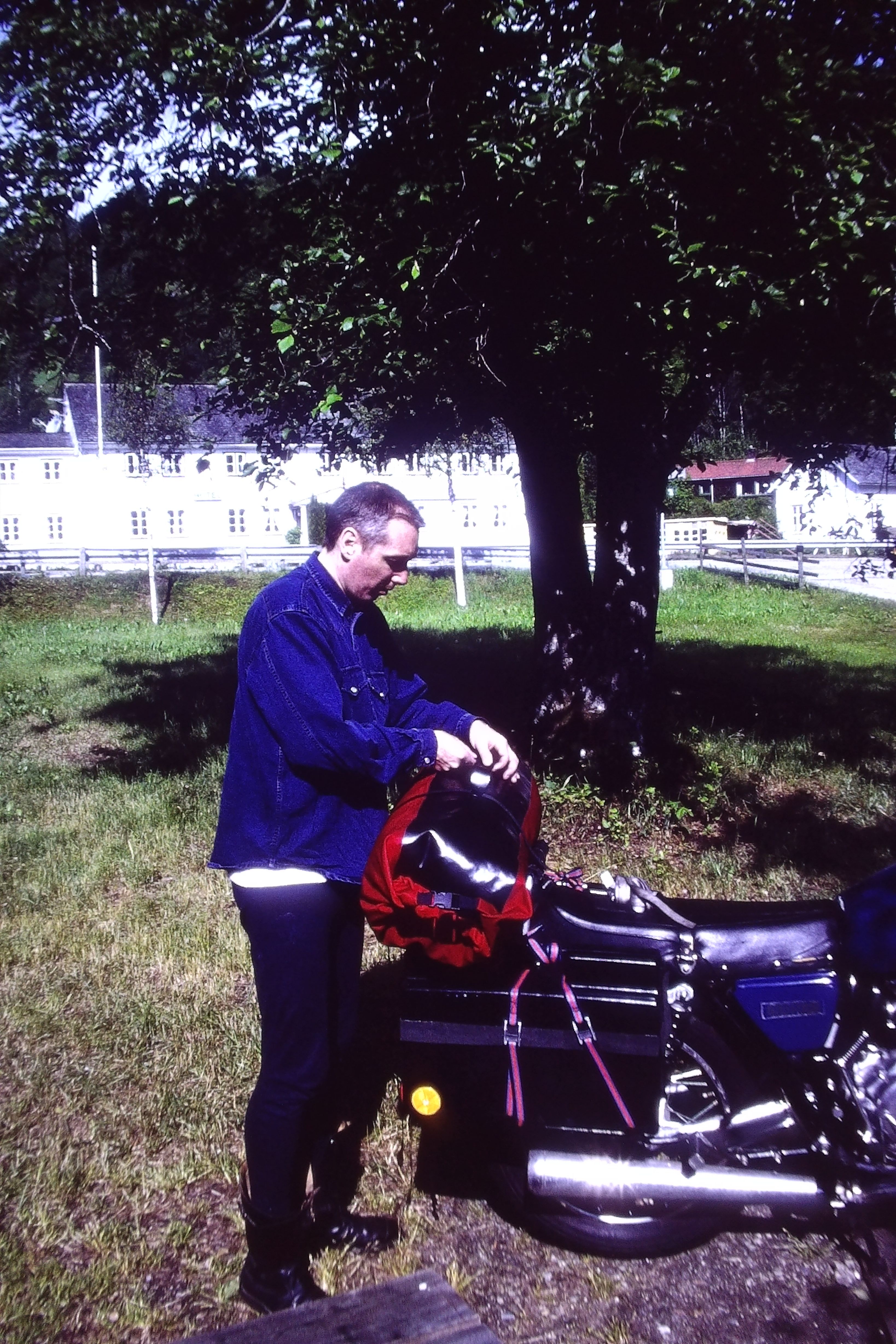 Auf einer unserer Touren sahen wir ein norwegisches Fahrschulmotorrad. Der Fahrlehrer nimmt hinten Platz und hat, wie bei uns im Auto, ein „Duplikat“ der Bedienelemente, um gegebenenfalls eingreifen zu können. Ob unsere Fahrlehrer auch so mutig wären?