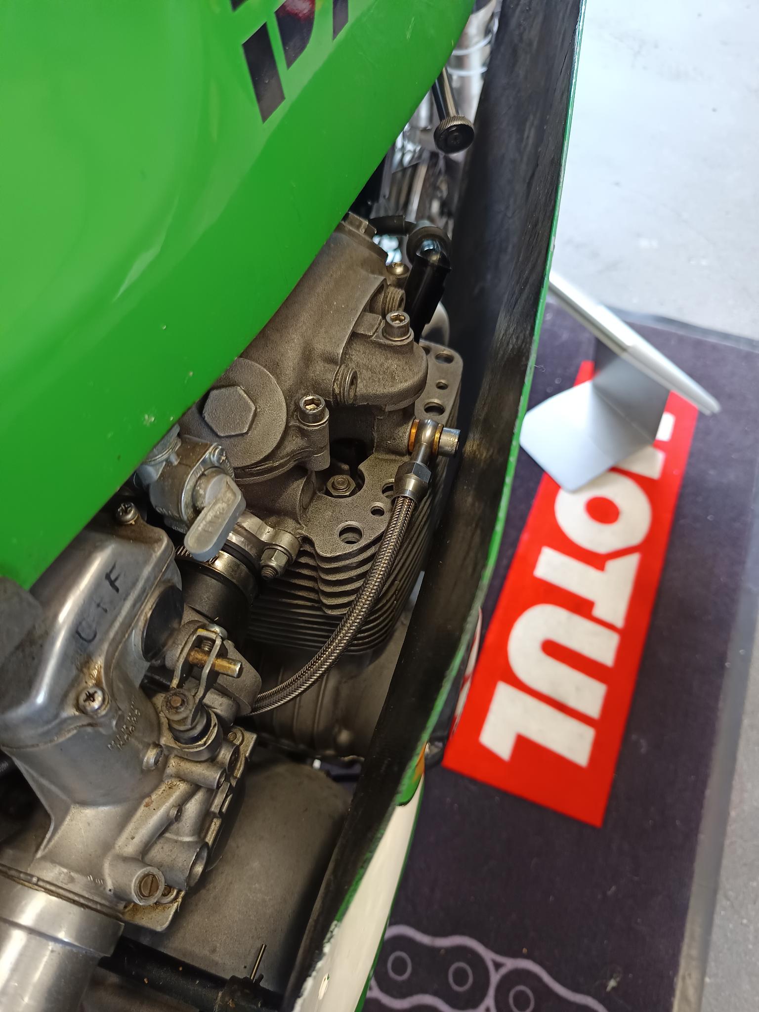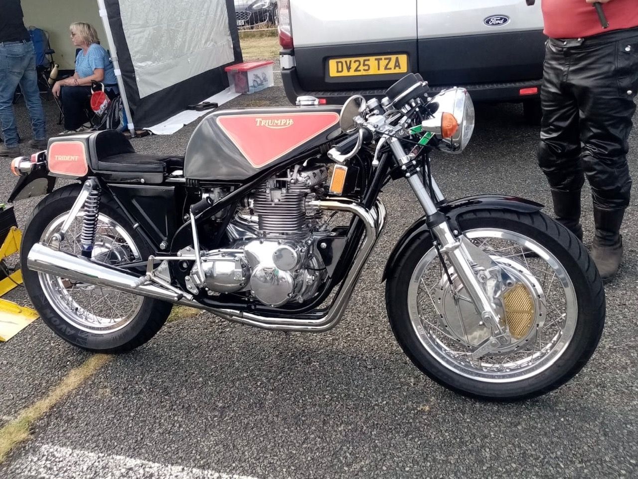 Er lässt mir mit Blick auf mein z. Zt. stockendes Rob-North-Projekt ein Foto zukommen, das den Kommentar „die Latte hängt hoch“ trägt. Zugegeben, die Rob-North-Trident mit Straßenzulassung ist wunderschön aufgebaut. Aber hätte ich so etwas haben wollen, hätte ich es im vergangenen Jahr für relativ kleines Geld von einem DHM-Kollegen kaufen können. Mir geht es aber um ein rennfähiges Exemplar, da werden dann andere Parameter als Scheinwerfer, Blinker, eine ausgefallene Lackierung und eine traumhaft schöne Doppel-Duplex relevant.