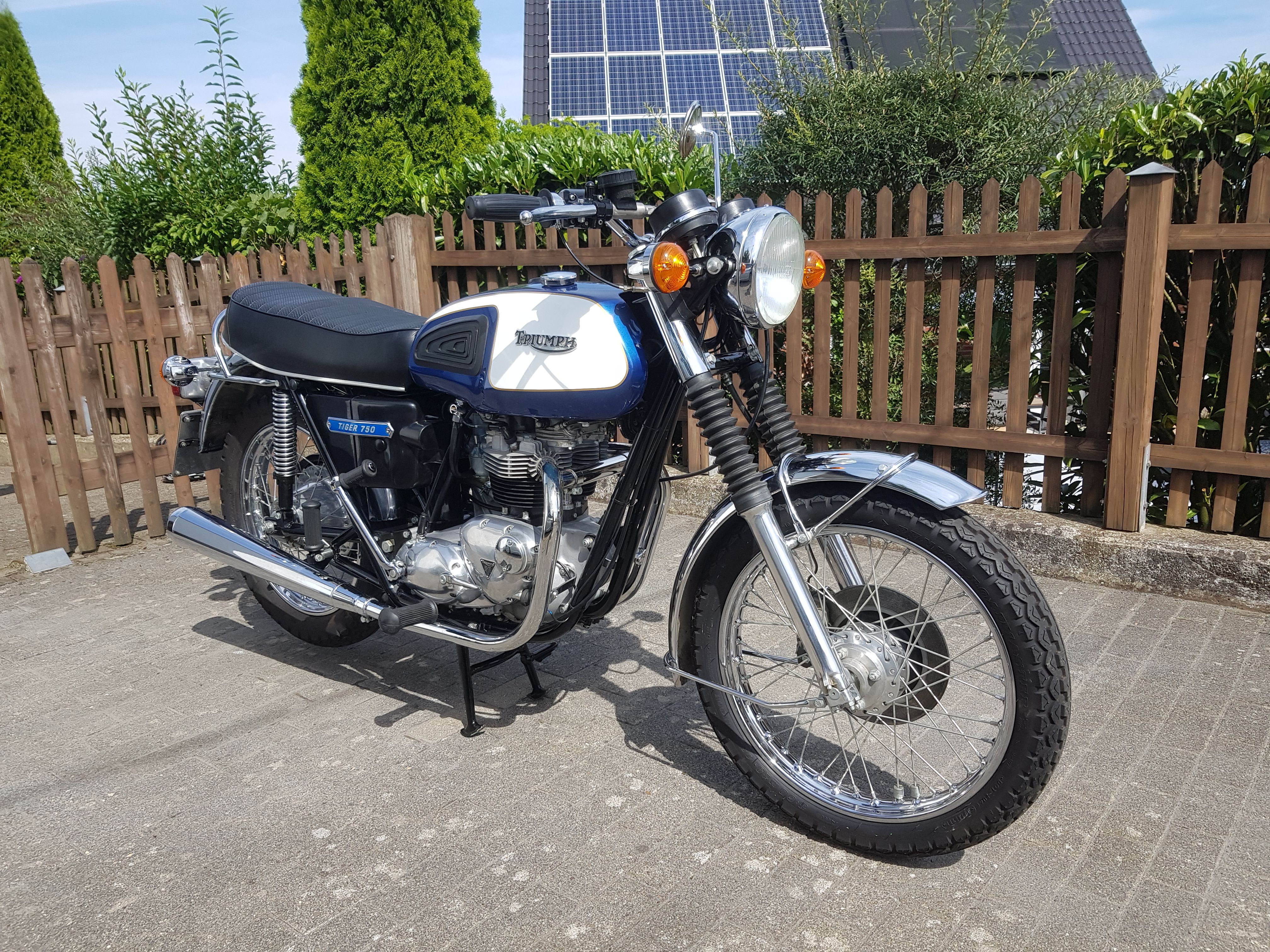 Peter reduziert seine Sammlung inzwischen etwas. Ein ganzer Stall voll Klassiker will gepflegt und unterhalten sein. Instandhaltung, regelmäßige Bewegung zur Vermeidung von Standschäden, TÜV usw. können in Arbeit ausarten. Also muss seine wirklich schöne Triumph Tiger T140 gehen. Ob sie bei dem Käufer, einem Sammler aus der Schweiz, artgerechte Haltung erfährt?