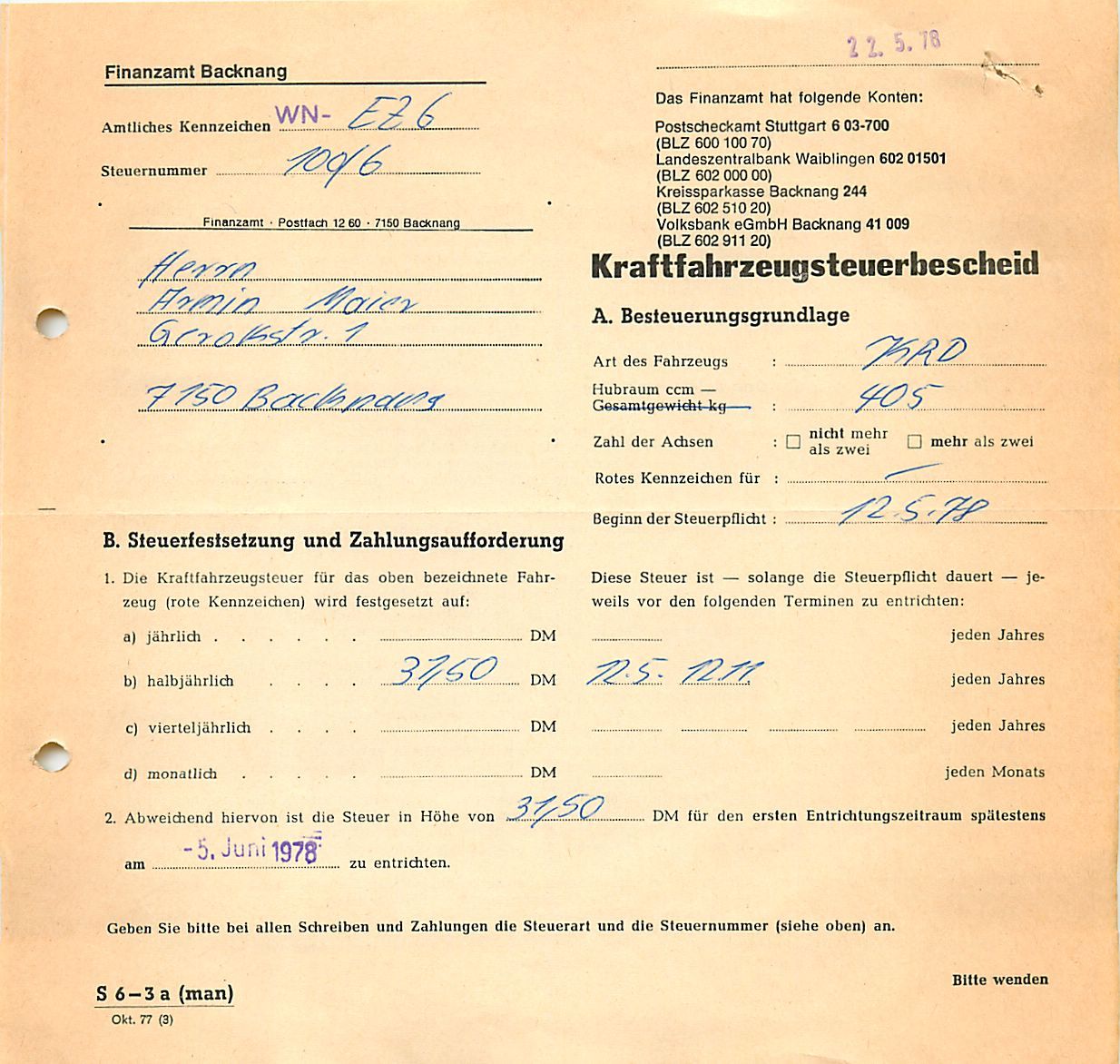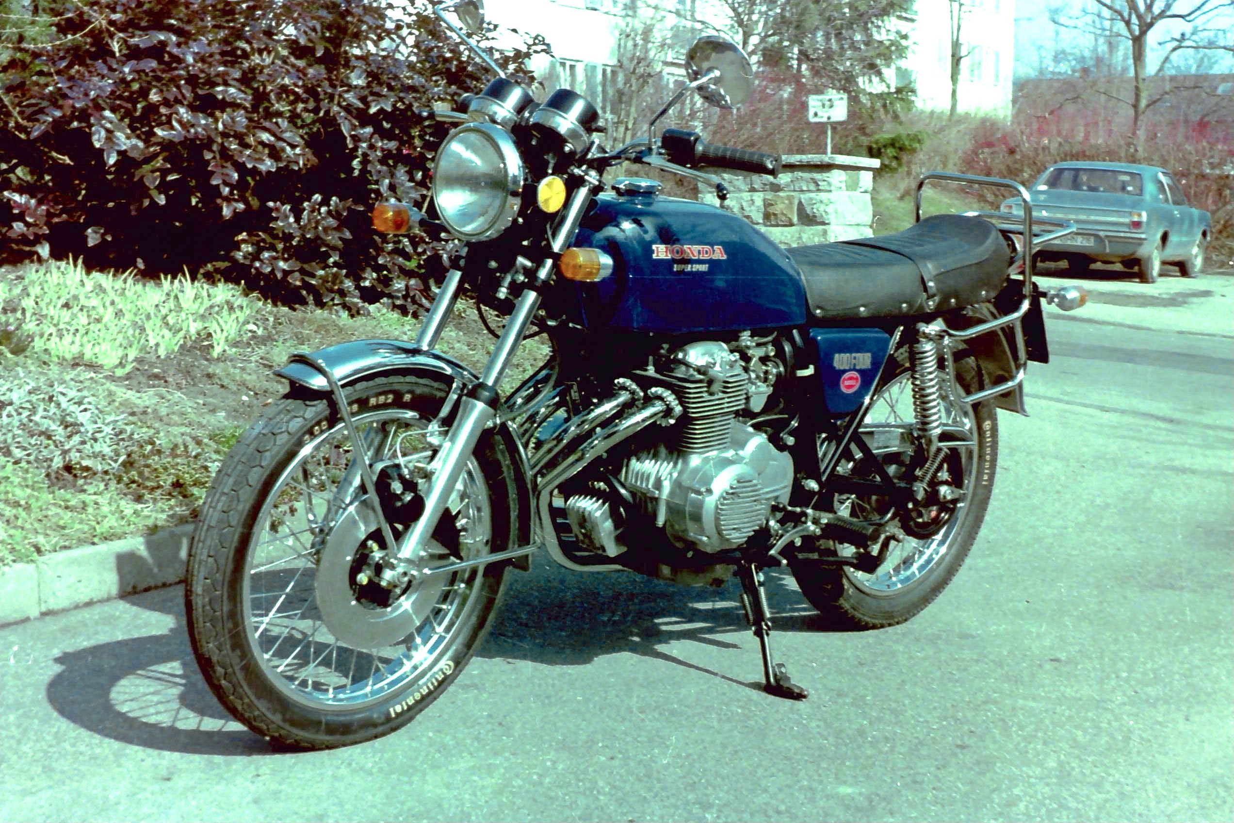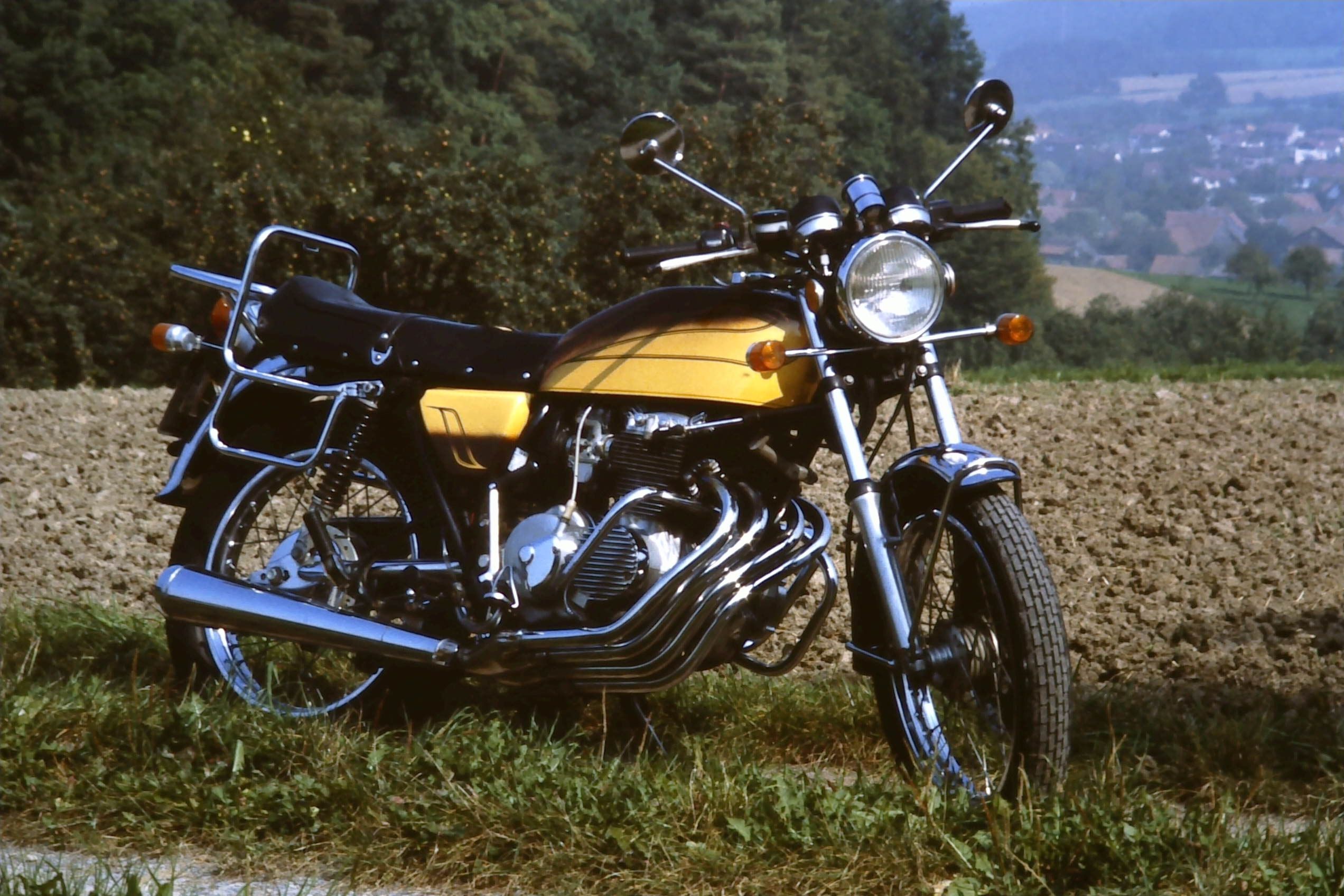 Andreas und ich stehen in dem kleinen Büro und Ausstellungsraum mit den Abmessungen einer Garage bei Helmut Raichle. An der Wand viele Fotos, die unter anderem ihn mit einer Norton Manx bei irgendwelchen Rennen zeigen. Als wir ihm gerade erklären, dass wir auf keinen Fall den Listenpreis für eine 400 Four bezahlen können, hält ein dicker Mercedes vor der Tür. Der Fahrer kommt herein und platzt mit der Feststellung in unser Gespräch, dass sein Sohn in zwei Wochen achtzehn werde und er ihm ein Motorrad schenken wolle. Er wolle also jetzt mal sehen, was es da so gebe. Der alte, brummelige Raichle ist von der großspurigen Art des Herrn sichtlich wenig angetan, aber der Kunde ist halt König. Und dieser Kunde verfügt offensichtlich über ausreichend Finanzen und Kaufwillen, da müssen die zwei Schulbuben erst mal warten. Nachdem der potenzielle Käufer sich zunächst mal über die 550er Honda hat informieren lassen, erklärt er, dass das Ding zu mickrig sei, es müsse schon die 750 Four sein. Die war auch mein Traum, aber damals schlicht unerreichbar. Schließlich fragt er nach dem Preis, und das auf eine Art, aus der deutlich wird, dass er einen erheblichen Preisnachlass erwartet. Raichle dreht sich um, zieht eine Honda-Preisliste aus dem Regal und zeigt mit dem Kommentar „Hier steht der Preis.“ darauf. Kurz danach verlässt ein ziemlich erboster Fast-Kunde den Ausstellungsraum. Raichle wendet sich wieder uns beiden zu und fragt: „So, jetzt erzählt mal, was macht ihr denn? Schule? Lehre?“ Das Gespräch endet damit, dass wir zwei blaue CB 400 Four zum Preis von je 4.000 Deutschen Mark statt des Listenpreises von 4.800 Deutschen Mark bestellen.