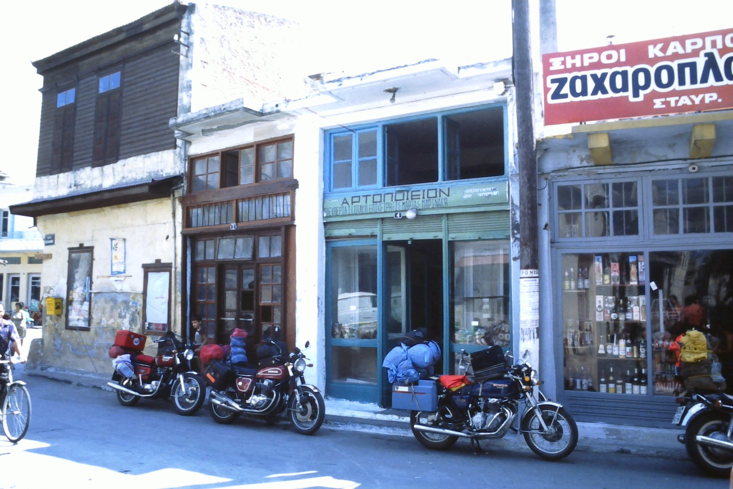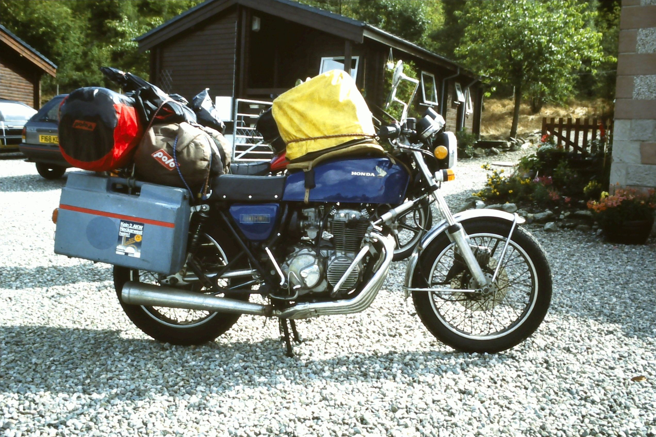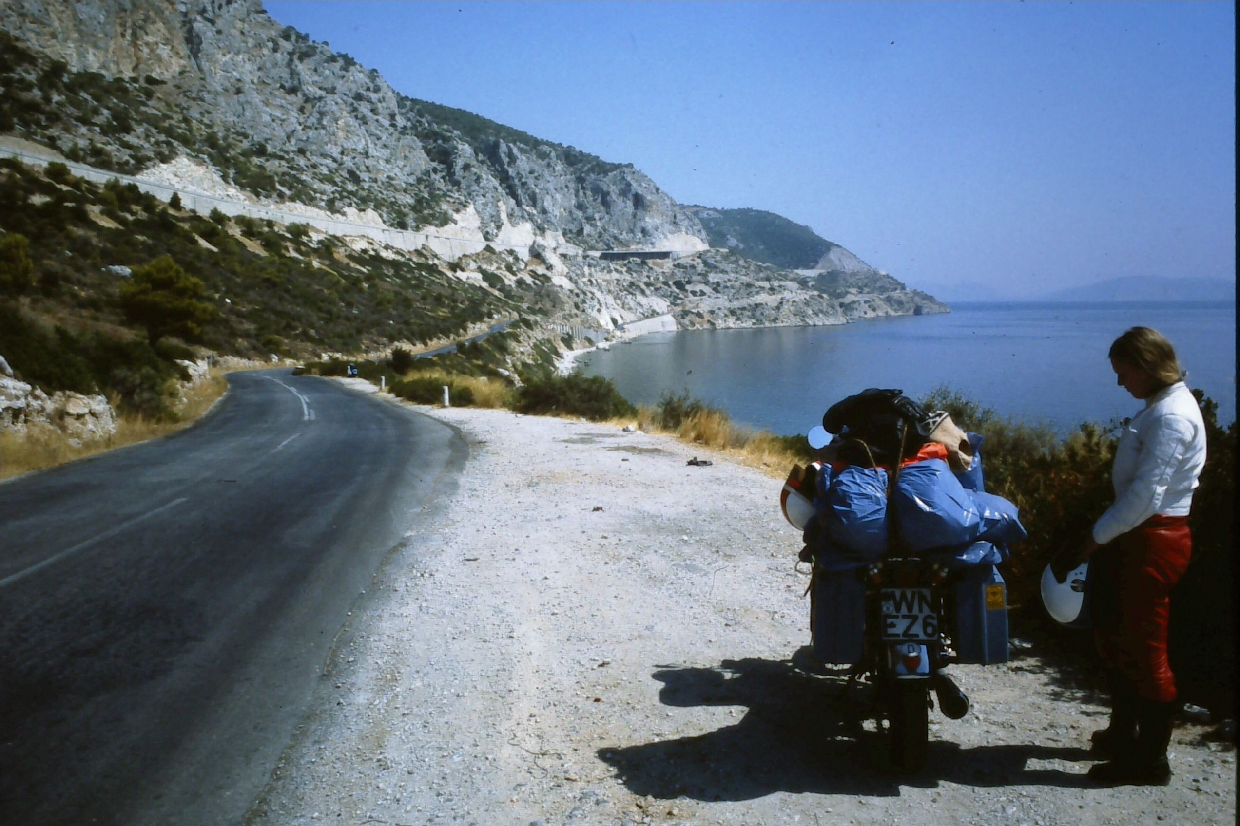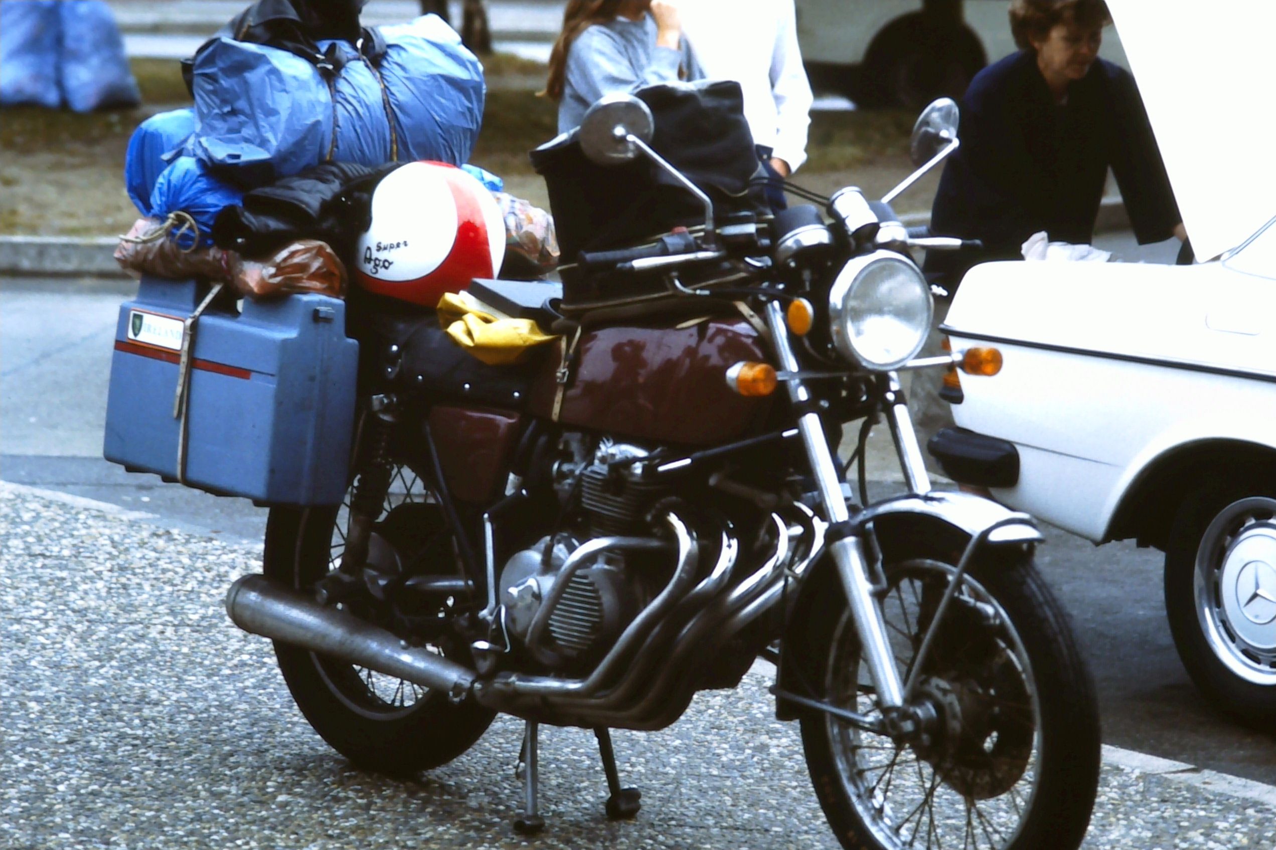 Die Strecke von Backnang nach Cherbourg hatten wir recht entspannt in zwei Tagen bewältigt, per Deckpassage ging es direkt nach Rosslare. Mit Zelt und Schlafsack konnte man zu der Zeit noch ohne jegliche Buchung von Campingplätzen und Fähren für kleines Geld durch Europa reisen. Und da meine Freundin und ich frischgebackene Abiturienten mit schmalem Geldbeutel waren, musste es schon kostengünstig sein. Drei Wochen waren wir durch Irland auf teilweise sehr schlechten Straßen mit hoher Zuladung unterwegs, aber die Honda zeigte sich absolut zuverlässig. Ein Gepäckträger und ein paar Sturzbügel von Schuh, ein Harro Elefantenboy, ein paar umgebaute Plastik-Bohrmaschinenkoffer von Bosch – als Ferienjobber dort für fünf Deutsche Mark das Stück erstanden – und ein Lenkungsdämpfer machten die kleine Four langstreckentauglich. Zwei nach Harro-Schnitt auf einer ausgedienten Schuhmacher-Nähmaschine selbstgenähte Lederkombis sowie zwei knallorange Rukka-Regenkombis der ersten Generation sorgten auch bei der Four-Besatzung für Tourentauglichkeit. Unerreicht bleibt ein in diesem Urlaub aufgestellter Verbrauchsrekord: 3,7 Liter auf 100 Kilometer bei voller Beladung mit zwei Personen plus Campingausrüstung auf einer französischen „Route Nationale“. Im Mai 1980 lockt mich erneut Irland. Erstmals mache ich mich ganz alleine auf den Weg. An jenem Morgen tatsächlich das beladene Motorrad aus der Garage zu schieben und loszufahren kostet wirklich Überwindung, und die ersten ein, zwei Stunden will keine rechte Urlaubsstimmung aufkommen. Aber als die Honda die „Route Nationale“ in Richtung Westen unter die Contis nimmt, siegt der Drang, weiter zu fahren, über den Wunsch umzukehren. Diesmal spult die kleine Four vier Wochen lang anstandslos unzählige Kilometer auf französischen und irischen Straßen ab. Als ich auf der Rückreise in Cherbourg am frühen Abend die Fähre verlasse, würde ich am liebsten direkt nach Backnang durchfahren. Aber eine Nachtfahrt verkneife ich mir dann doch lieber. Stattdessen spule ich am anderen Tag 1.000 Kilometer abzüglich Tank- und Pinkel-Stops und ein paar schnell verschlungene Pommes Frites überwiegend auf „Routes Nationales“ in zehn Stunden ab! Die kleine Four steckt auch das weg, quittiert es mit leichtem Ölnebel an der Kopfdichtung. Und schon im September geht es wieder auf Reisen: Meine Freundin will in den Süden. Diesmal geht’s über den Brenner nach Ancona. Von dort bringt uns die Fähre per Deckpassage nach Patras. Die lange Überfahrt verbringen wir mit einem jungen Winzerpärchen von der Mosel, das mit einer Yamaha XS 650 unterwegs ist, am Pool auf dem Oberdeck.