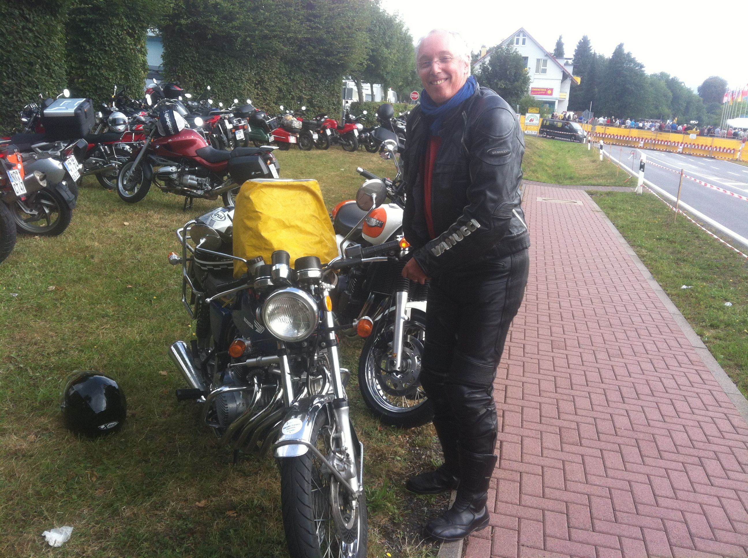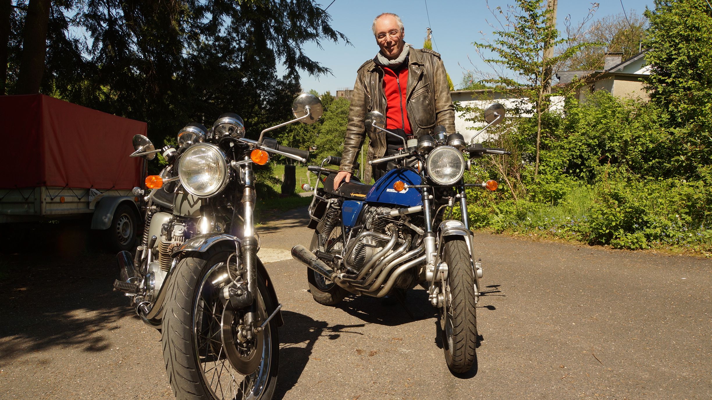 Als ich unten im Wahnbachtal auf die Landstraße einbiege, sehe ich gegenüber überschwemmte Auwiesen. Wenn der Wasserpegel noch etwa zwanzig Zentimeter steigt, wird die kleine Brücke nach Leverath überschwemmt und unpassierbar. Es muss die Nacht über heftig geregnet haben. Wegen der starken Windböen brauche ich meine Straßenseite in voller Breite. Sturmtief Niklas hat ganze Arbeit geleistet, überall liegen abgerissene Äste auf der Straße. Noch vor zehn Minuten habe ich gedacht, dass das bei dem Wetter kein Mensch braucht, aber die kleine Four hat immer wieder dieselbe Wirkung auf mich. Mit den richtigen Klamotten und diesem Motorrad unter dem Hintern wird das Wetter unwichtig, die Lebensgeister erwachen, die Reflexe kommen wieder und ich fühle mich um Jahre jünger. 37 Jahre, fünfzehn davon Sommer wie Winter, und 165.000 Kilometer mit der Four haben eben eine prägende Wirkung. Klar weiß ich, dass mir da meine Psyche einen Streich spielt. Aber klasse ist es trotzdem! Und noch eine Erinnerung kommt hoch. Als ich mich 2012 mit meinem damals zehnjährigen Sohn Piet auf dem Sozius auf den Weg zu den Bikers’ Classics nach Spa gemacht habe, war ähnlich miserables Wetter. Für sechs Jahre waren die Bikers’ Classics ein fester Termin in meinem Kalender. Ein Bekannter ist dort auf einer Rob North Triumph Trident regelmäßig im Vier-Stunden-Rennen gestartet. Schon 2010 hatte mich Piet nach Spa begleitet, damals allerdings im PKW. Als er 2011 unbedingt wieder mit wollte, musste er dafür vier Stunden über Landstraßen durch die Eifel als Sozius auf der 400er akzeptieren. Bei der Anreise war es in der Eifel bitterkalt, heimwärts haben uns heftige Wolkenbrüche begleitet. Ich hatte schon die Befürchtung, dass der Junge nach dem Trip die Nase vom Motorradfahren für immer voll hat, als über die Sprechanlage von hinten ein „… und nächstes Jahr will ich wieder mit!“ kam.