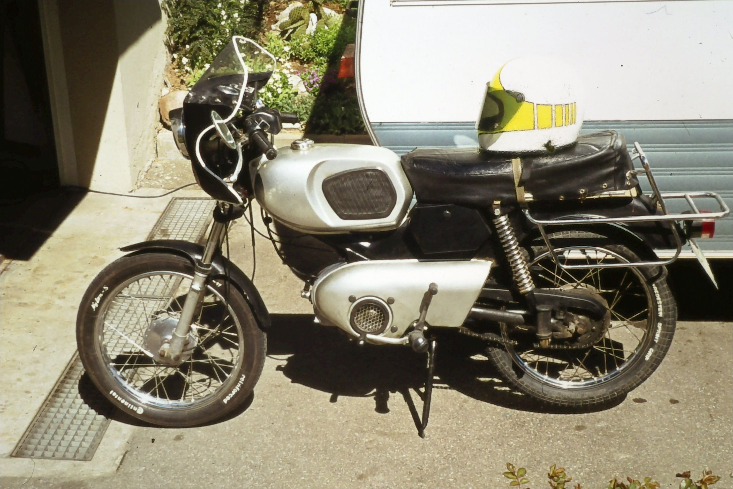 Also wurde es ein zehn Jahre altes Kreidler-Mokick in mäßigem Zustand. Dieser veränderte sich aber dann zusehends: neue Lackierung, selbst gebastelte Lenkerverkleidung, Sitzbank neu bezogen, Umbau von Hand- auf Fußschaltung und natürlich diverse illegale Tuning-Maßnahmen. Und alles auf mäßigem Bastler-Niveau, man erinnert sich. Jedenfalls war die Kreidler-Zeit mit viel unfreiwilliger Schrauberei verbunden.