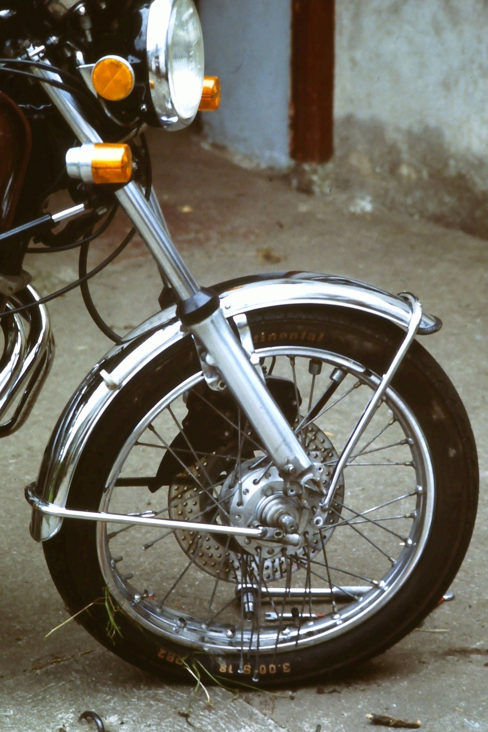 Der Regen und das beschlagene Visier nehmen mir die Sicht, als ich vorsichtig die Serpentinen von Marialinden nach Overath hinunter fahre und dabei den herumliegenden Ästen ausweiche. Jahrzehntelange Allwetterfahrten, lange Urlaubsreisen, durchgefahrene Winter, alles das liegt einige Zeit zurück. Aber die gemachten Erfahrungen und die dabei im Wortsinn „erfahrene“ Routine relativieren diese Wetter- und Straßenbedingungen erheblich. Und der Avon Roadrider ist im Vergleich zur Bridgestone-Erstbereifung von 1978 klebrig wie ein Kaugummi. Ich erinnere mich, im Sommer 1978 reichte das knappe Schülerbudget nicht für einen Urlaub, zumal in den Ferien die Versicherungsbeiträge und Inspektionskosten für die Honda „hereingejobbt“ werden mussten. Nur ein verlängertes Wochenende im Schwarzwald zusammen mit der Moped-Clique war drin. Und da wurden zwei Dinge ganz schnell klar: Die serienmäßige Bridgestone-Bereifung war insbesondere bei Nässe schlicht lebensgefährlich, und die Stoßdämpfer waren absolut Sozius-untauglich, die Kombination aus beidem machte die Honda mitunter doch recht schaukelig. Der Tausch der erst halb abgefahrenen Bridgestones gegen Conti-Zwilling-Bereifung und ein paar Konis schafften damals Abhilfe, auch wenn es sehr schmerzlich für’s Taschengeld-Budget war.