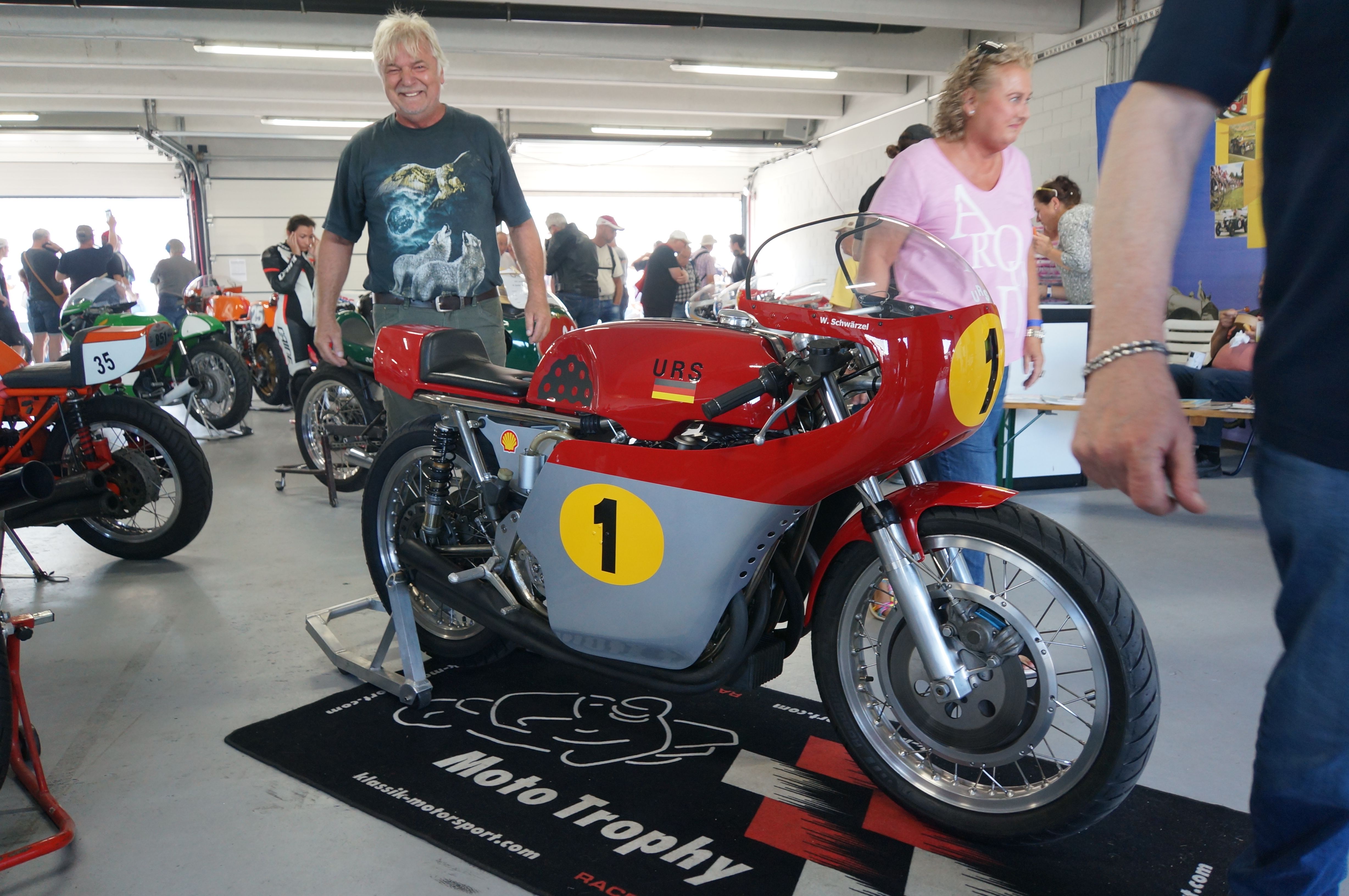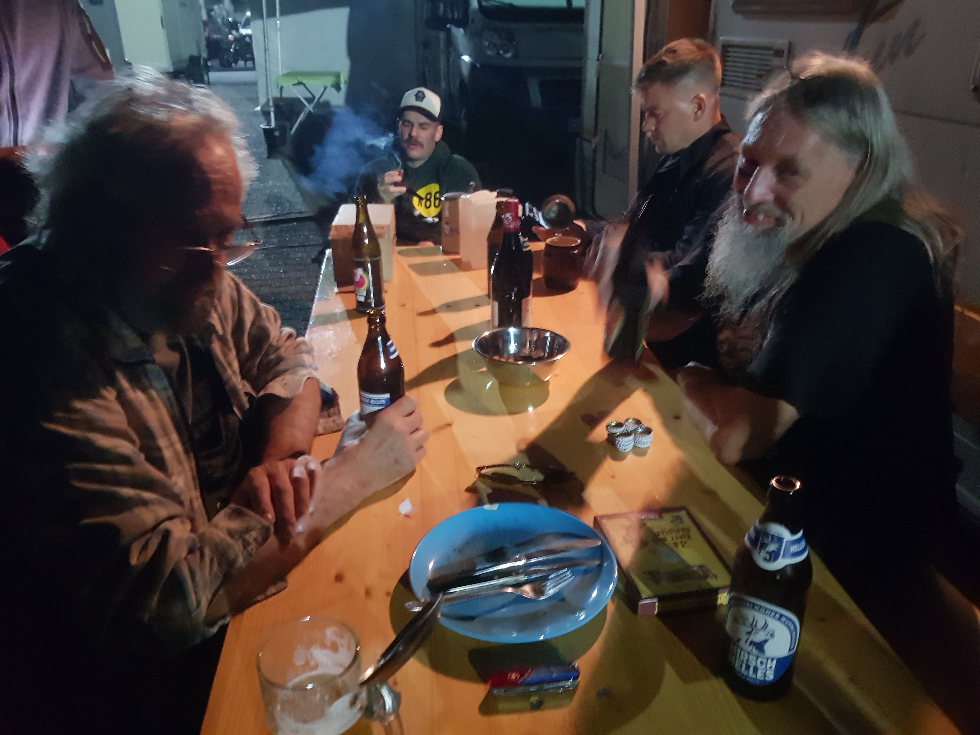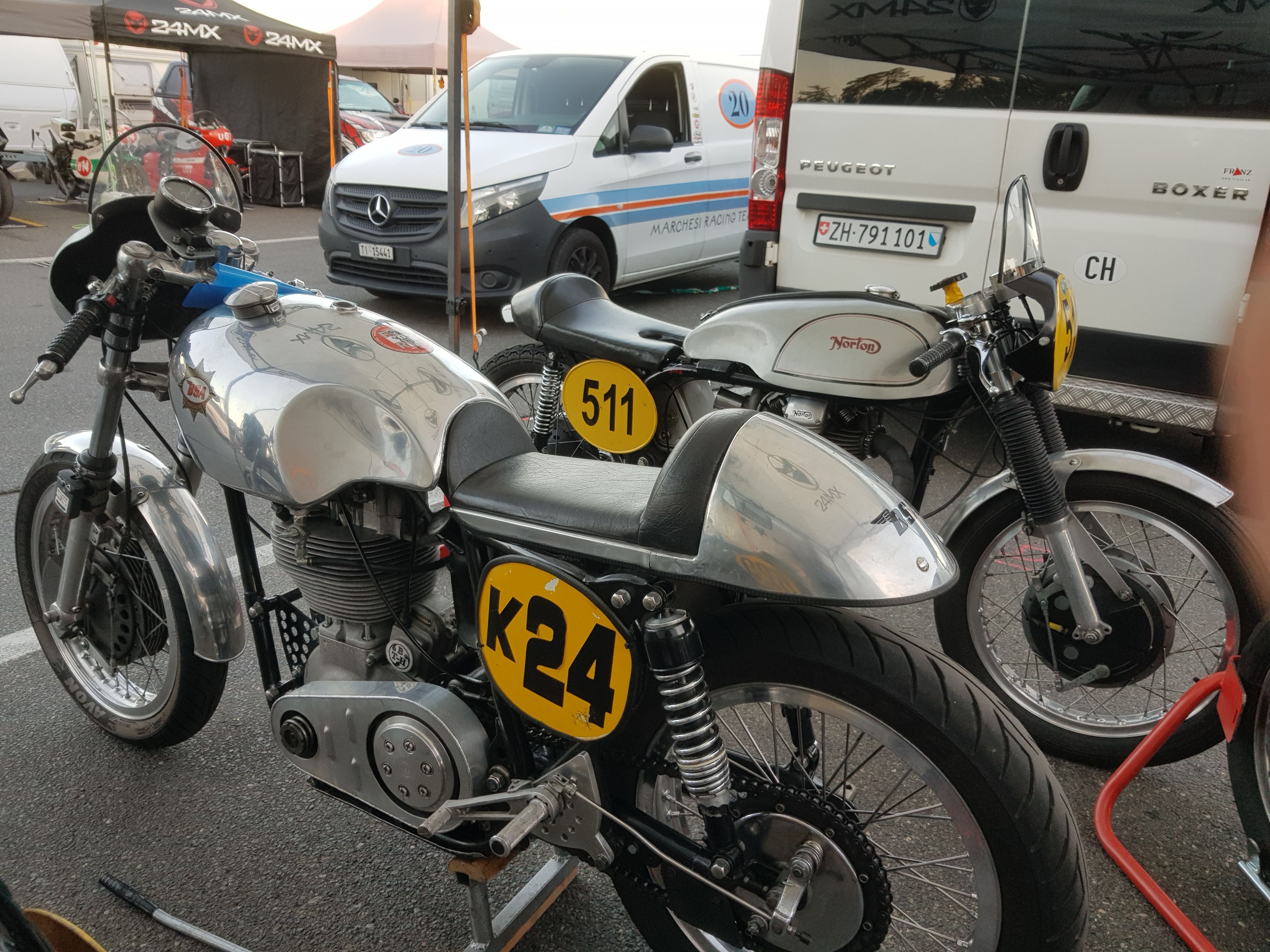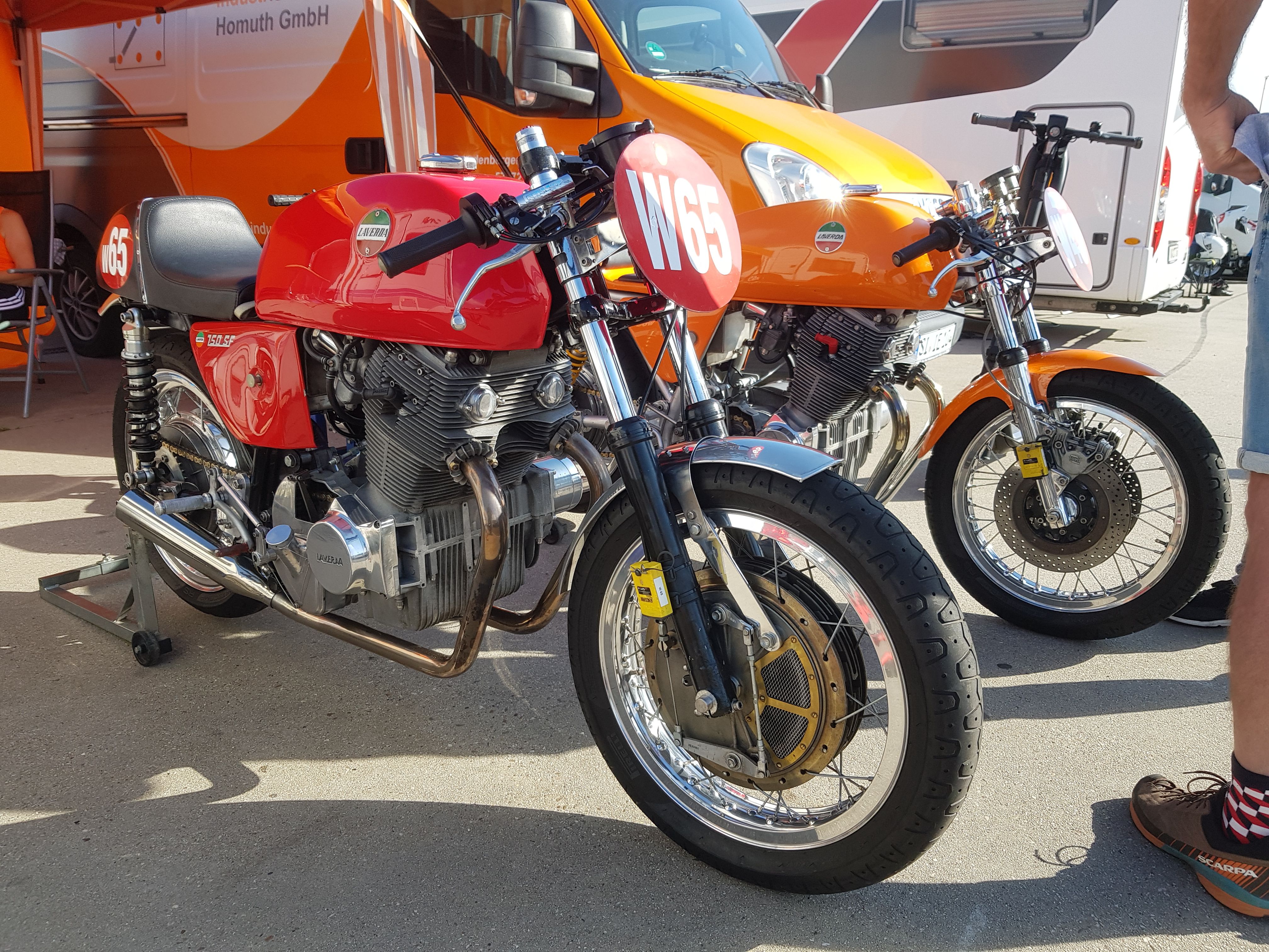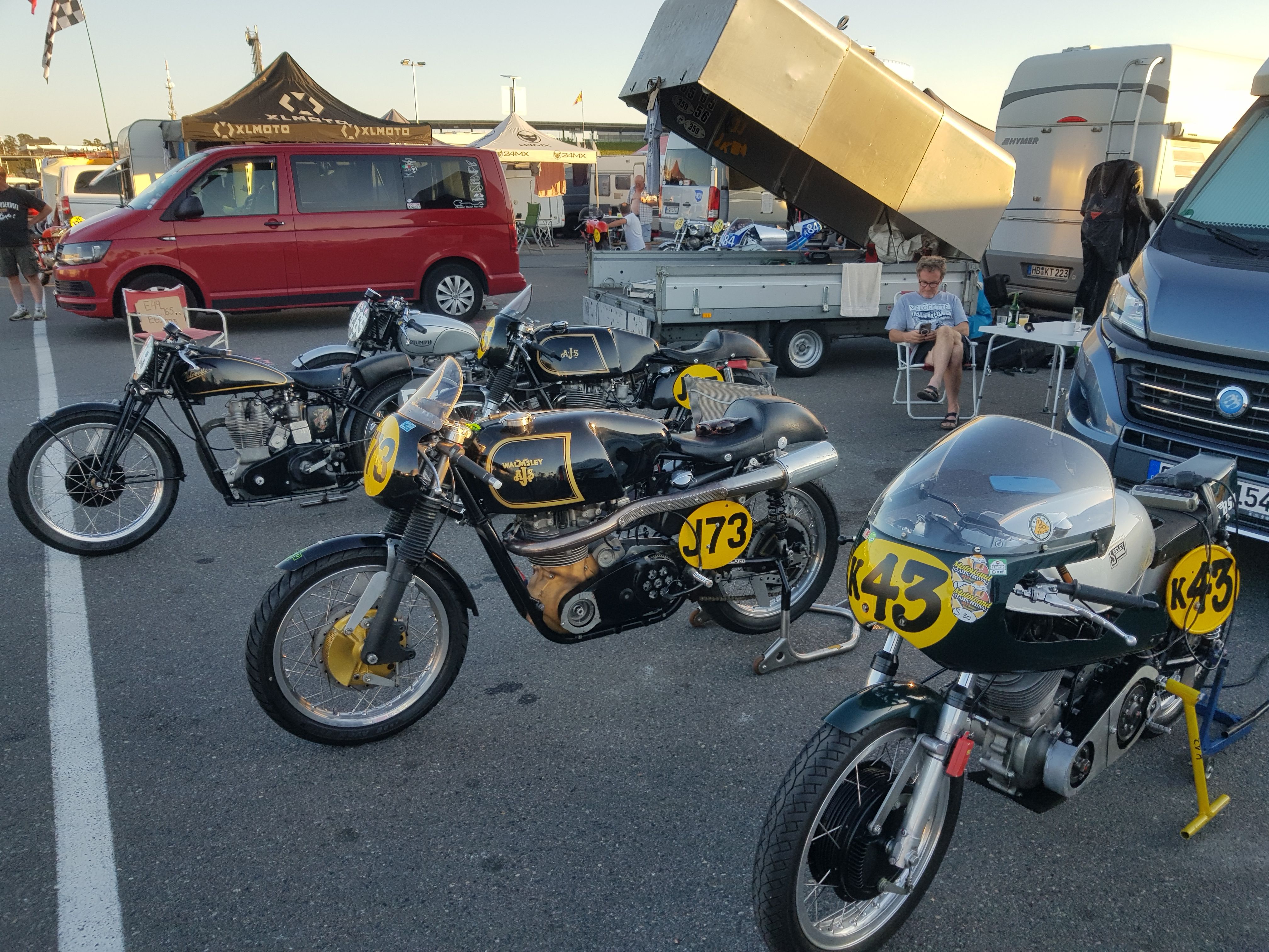 Den ersten Abend haben wir wieder mit Michael und seiner schwäbischen Truppe bei schwäbischem Gerstensaft verbracht. Michael war sich sicher, dass seine Norton jetzt besser läuft, als meine FOUR. Leider musste ich ihm am Freitag im freien Training zeigen, dass dem nicht so ist. Ich erntete dafür dann einen ziemlich grimmigen Blick...