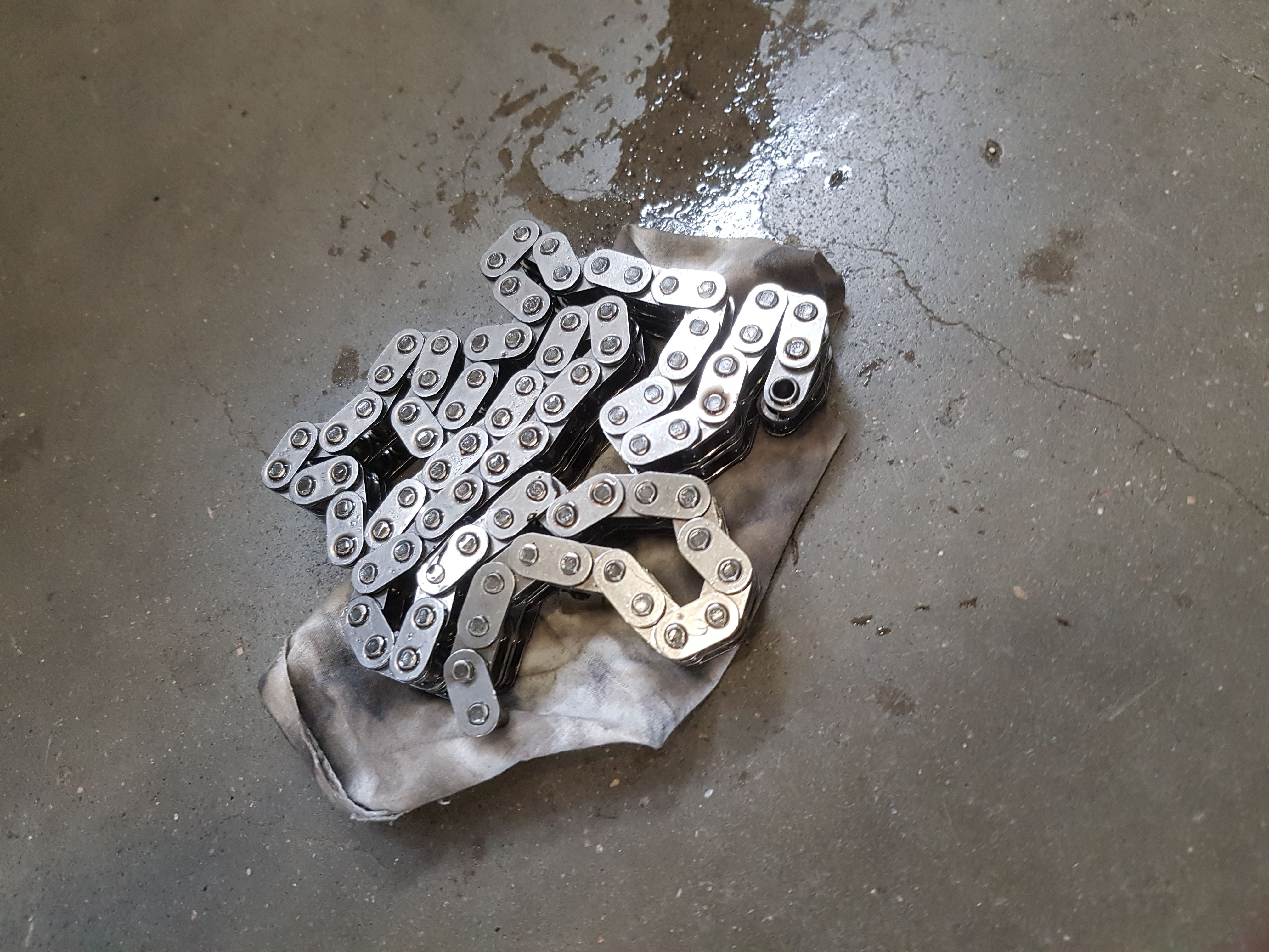 Weniger Glück hatten die Jungs von Lowland-Triples. Rob musste feststellen, dass auch Steuerketten von Mercedes nicht wirklich haltbarer sind. Er hatte eine solche als Primärkette verbaut. Leider ist sie gerissen und hat für ordentlich Ölverlust und einen durchschlagenen Gehäusedeckel gesorgt. Jetzt baut er wohl doch noch auf den wesentlich besseren Zahnriemen-Kit mit Mehrscheiben-Renn-Trocken-Kupplung um. Manche lernen nur unter Schmerzen dazu…