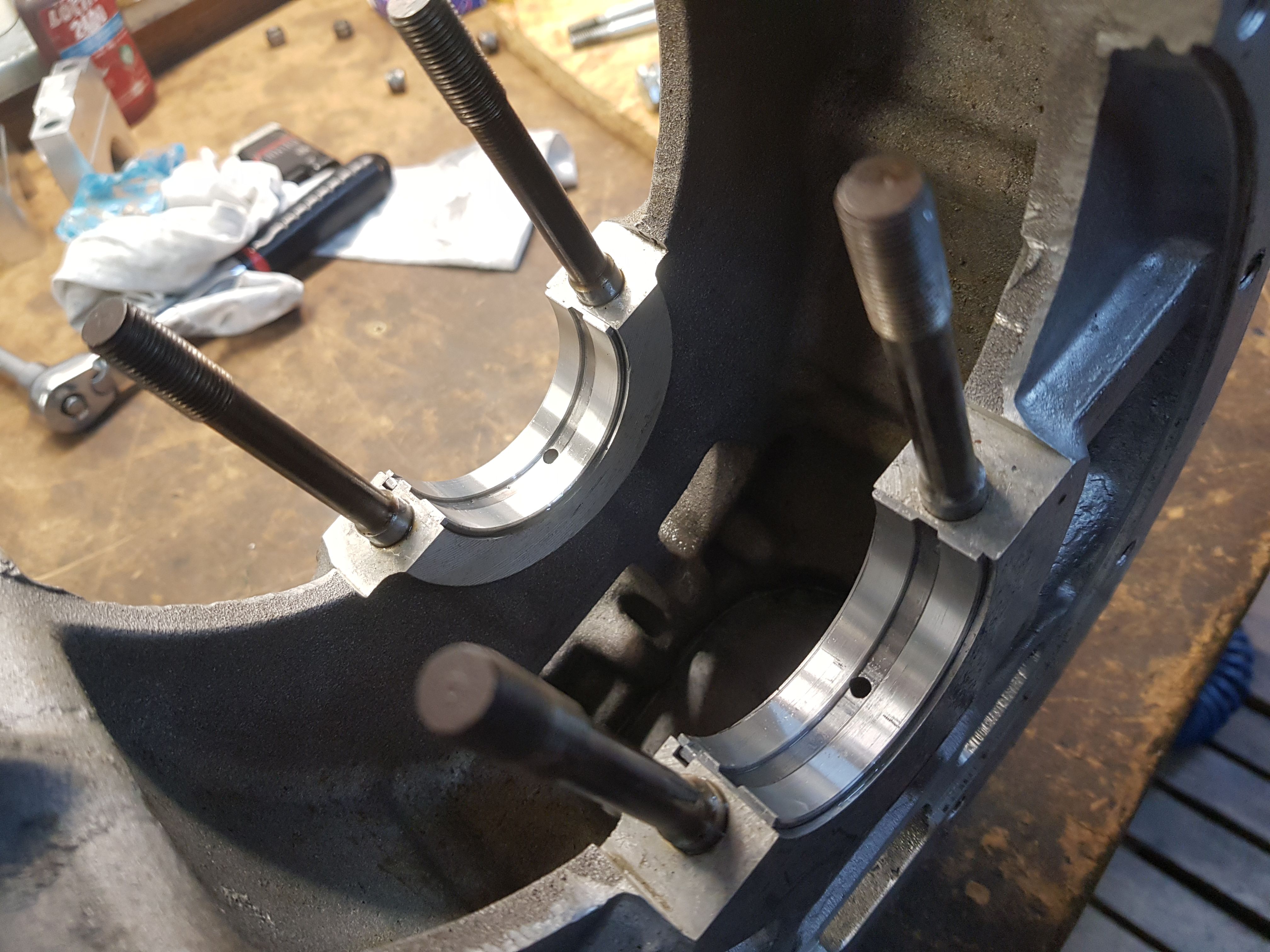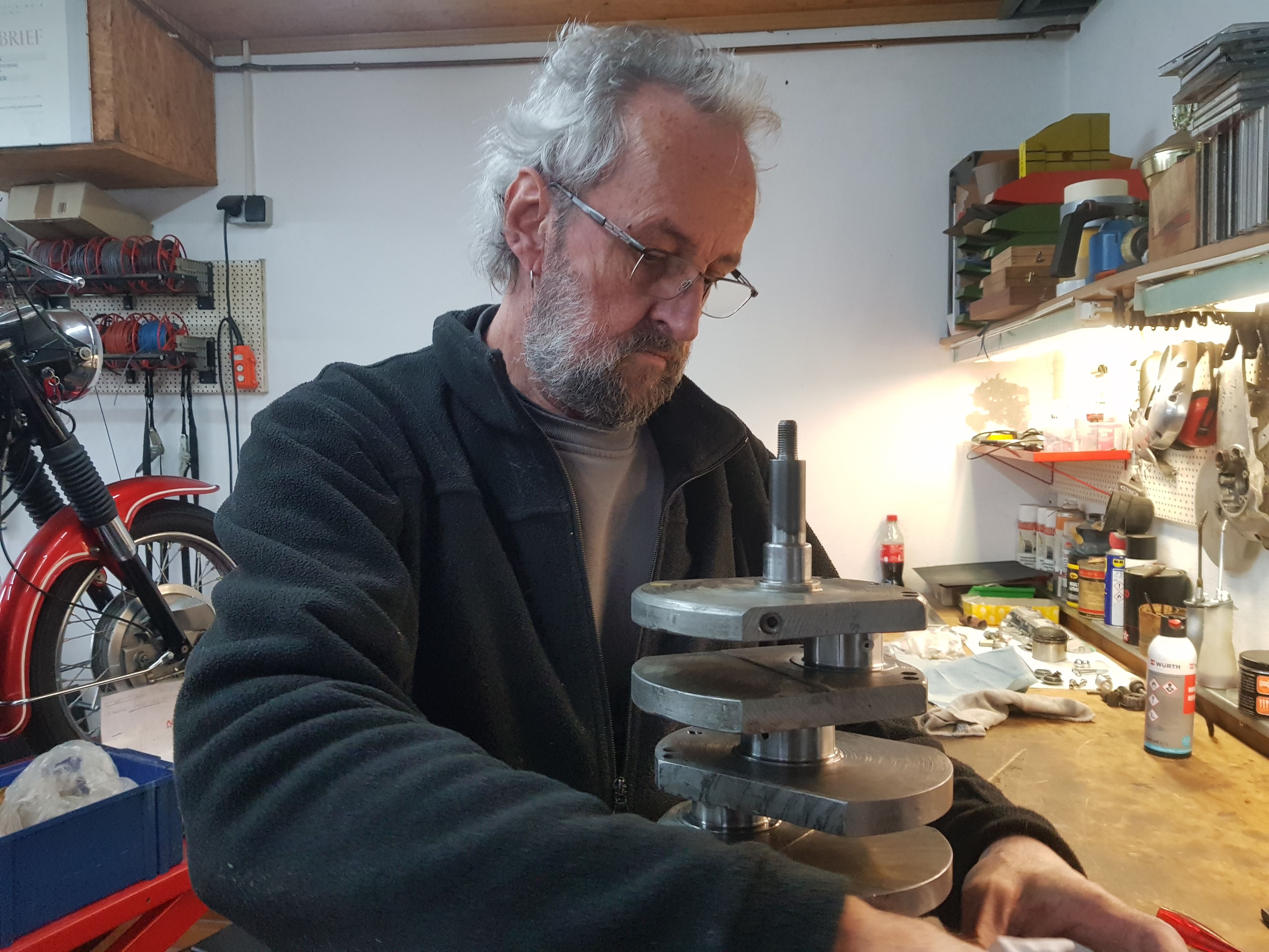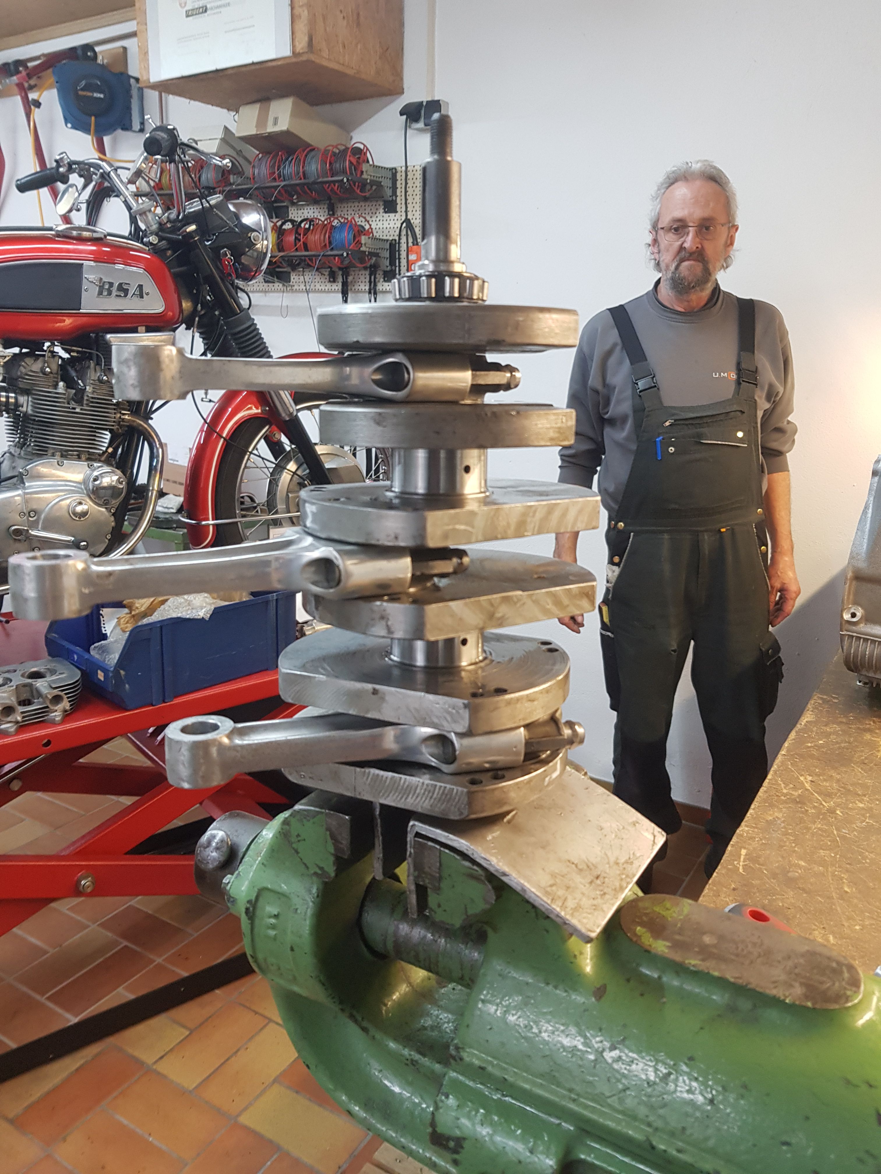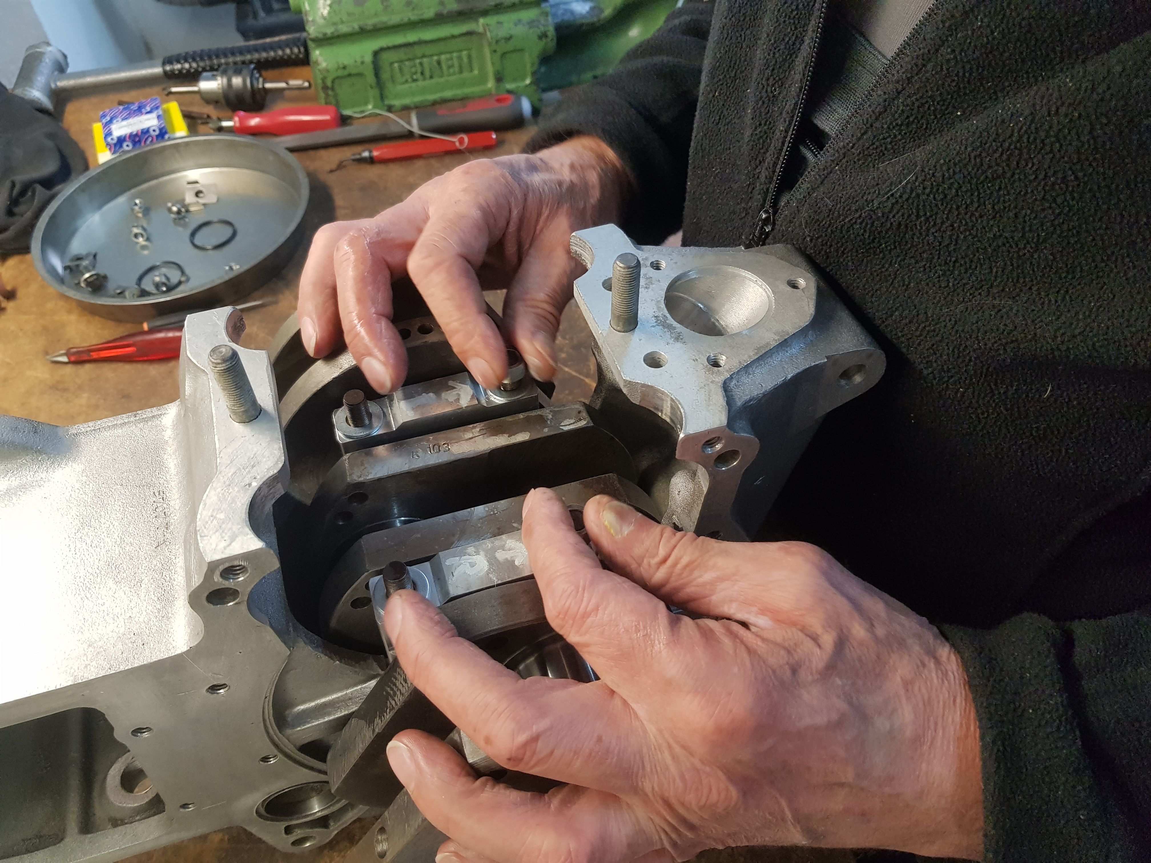 Logisch ist, dass bei der Verschraubung von drei Gehäuseteilen mit zwei eingebauten Nockenwellen, die sich im Alu in entsprechenden Bohrungen drehen, und einer Kurbelwelle, die mittig in zwei Lagerböcken mit Gleitlagerschalen und außen in den beiden angeschraubten Gehäuseteilen in einem Kugellager und einem Kegelrollenlager läuft, schon minimaler Versatz bei der Montage schnell zu Problemen führt. Alle drei Wellen müssen sich leicht drehen lassen, und die Kurbelwelle muss das notwendige Axialspiel haben, damit die temperaturbedingte Ausdehnung im Fahrbetrieb und insbesondere im Rennbetrieb problemlos gewährleistet ist.