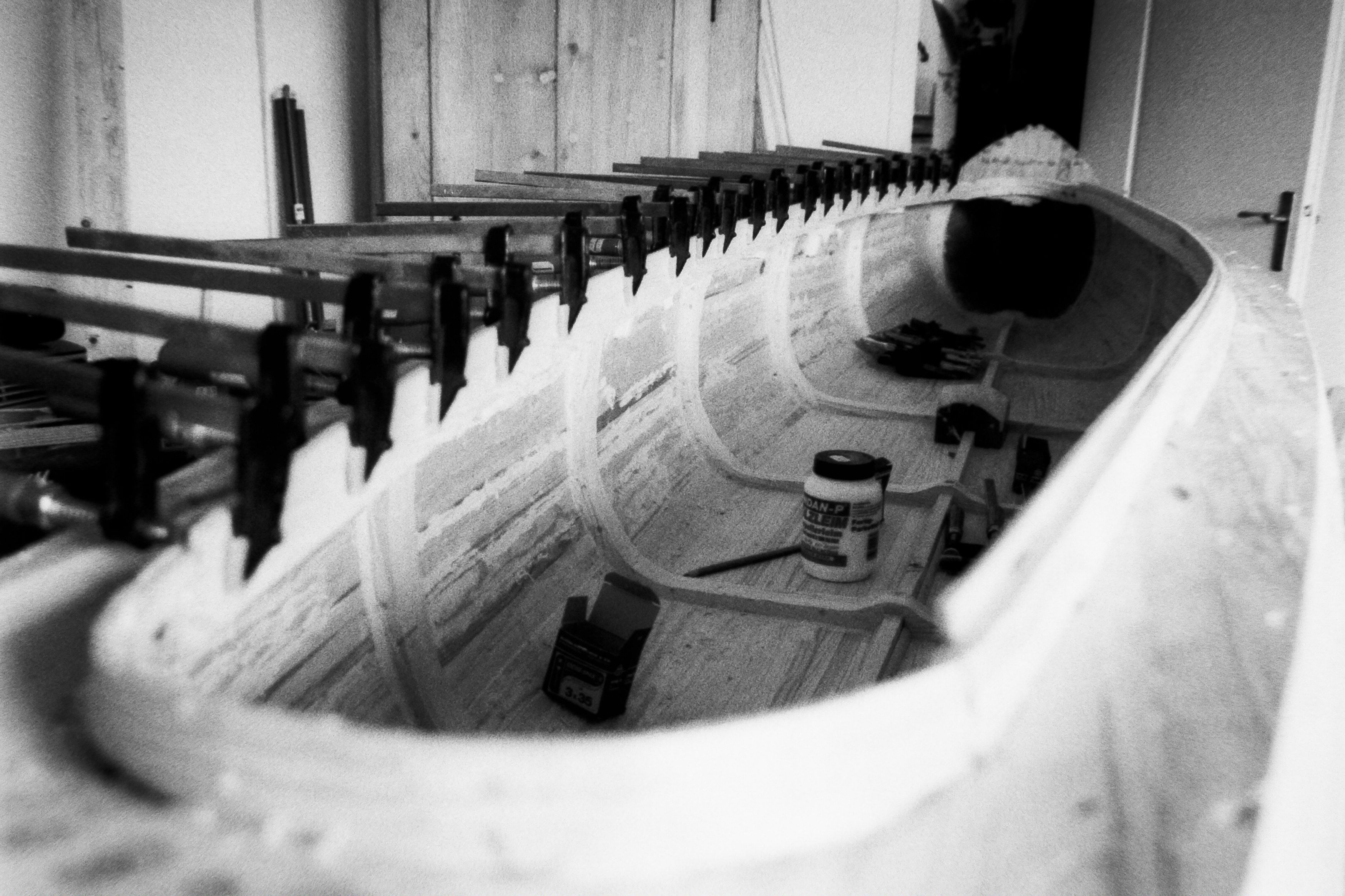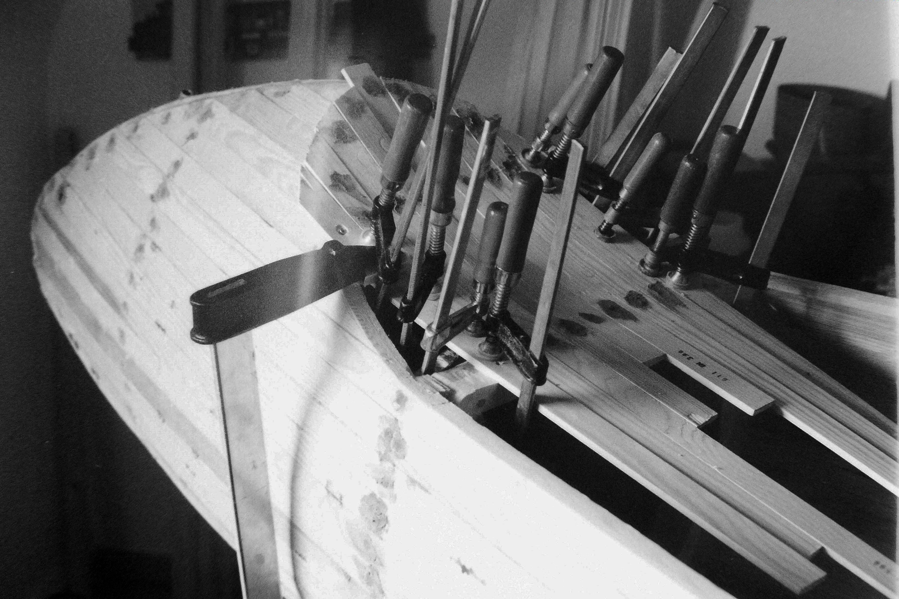 Mein Großvater war gestorben und in seinem Nachlass fand sich eine Hobelbank und einiges an Holzwerkzeug, denn er hatte vor dem Krieg eine Schreinerausbildung absolviert. Für eine Kanu-Tour im dienstlichen Kontext hatte ich im Jahr zuvor ein Yoho der Firma Gatz gemietet und war sehr angetan. Allerdings fehlte das nötige Kleingeld, und ein Holzkanu fand ich reizvoller als eines aus PE.
